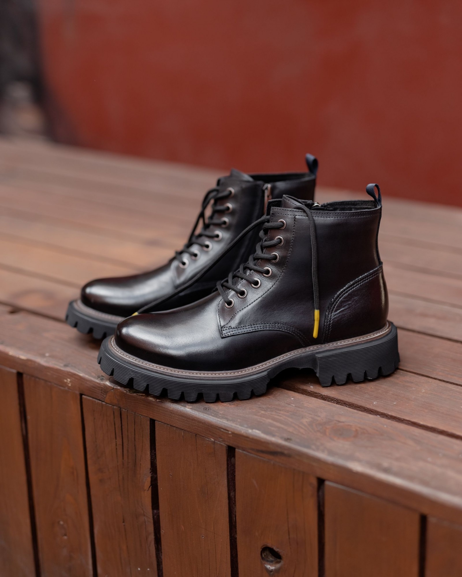 - **Шнуровка и замок:** Классическая шнуровка для надёжной фиксации, дополнена удобной молнией с внутренней стороны, чтобы легко надевать и снимать ботинки.
