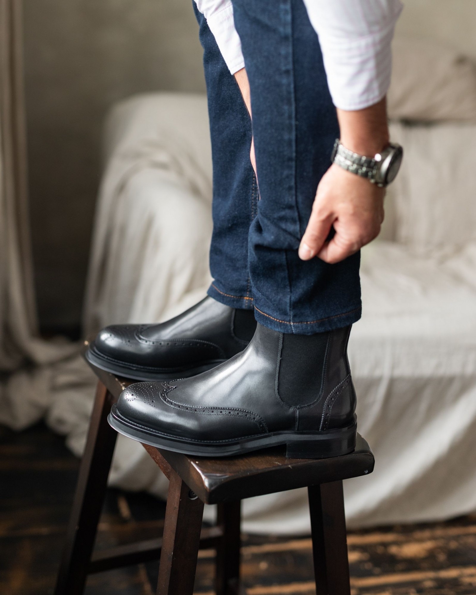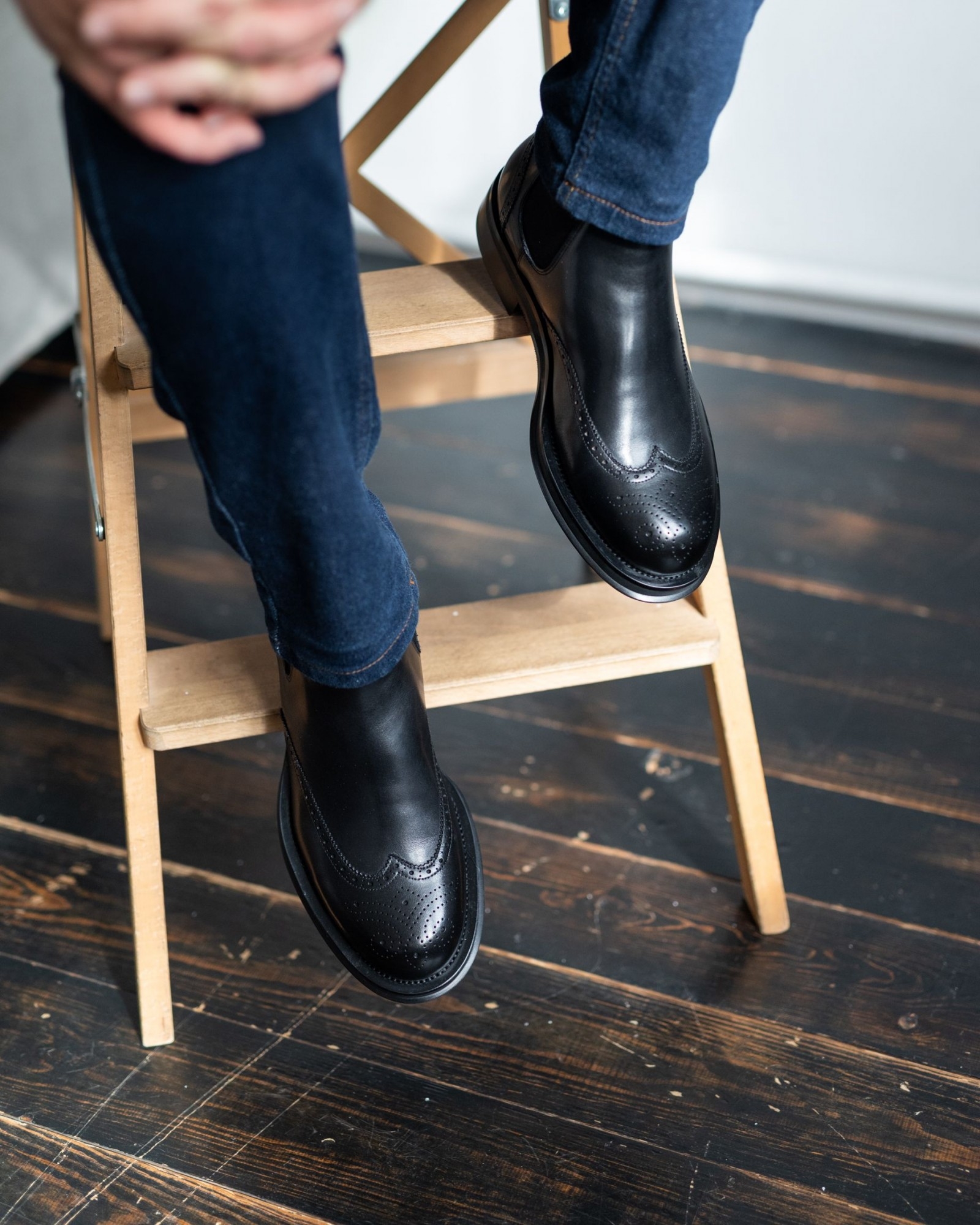 **Чёрные челси с отделкой броги — стиль и комфорт с утолщённой подошвой**