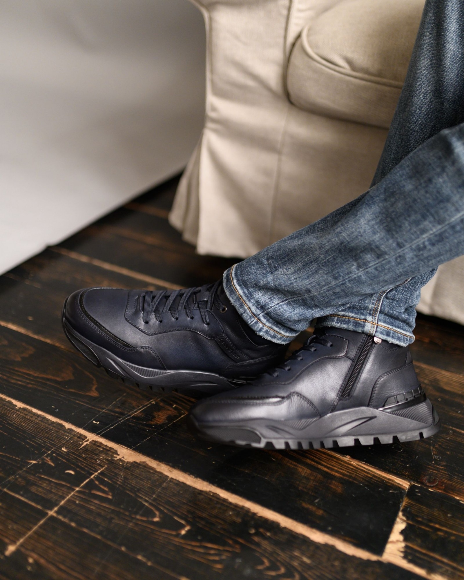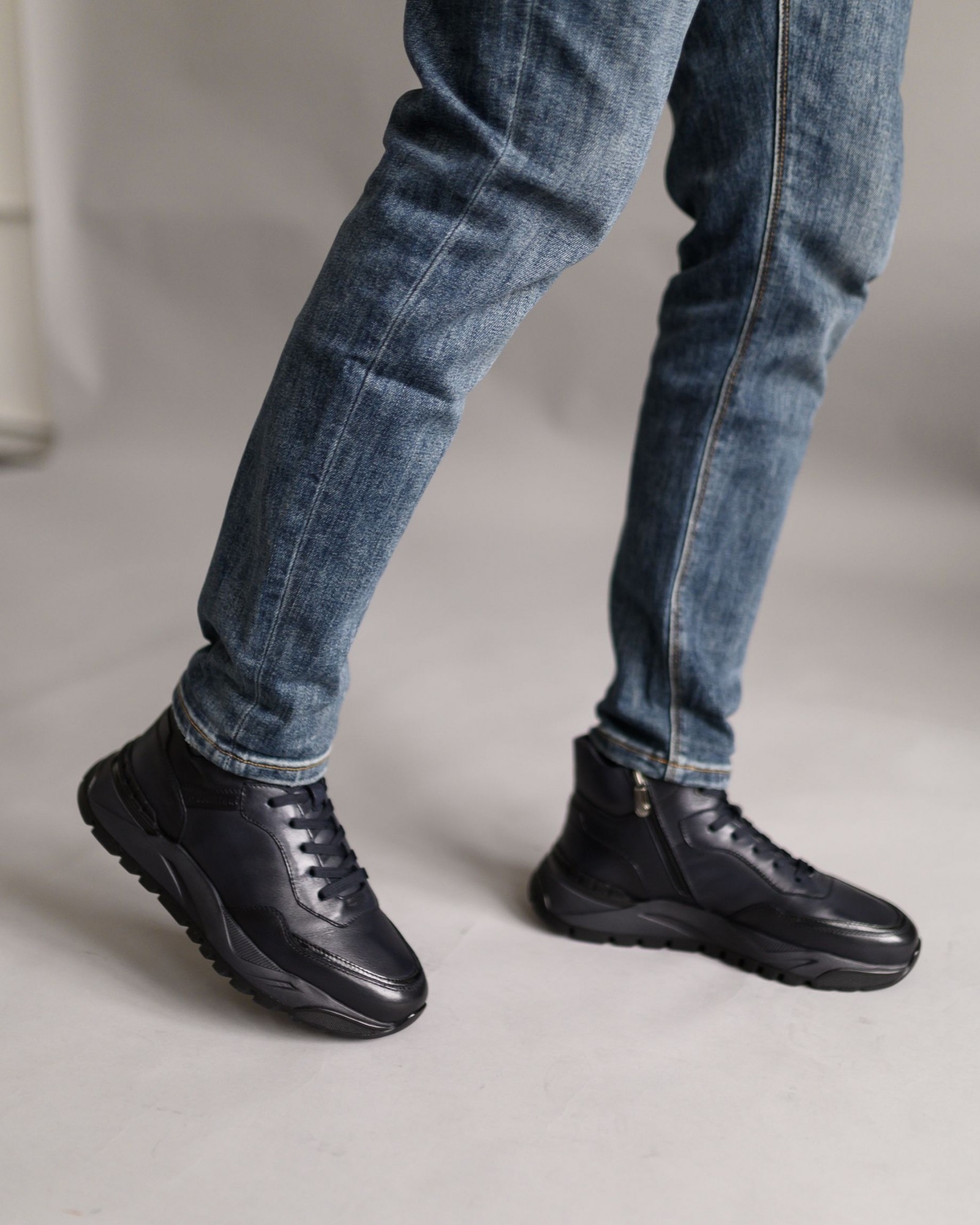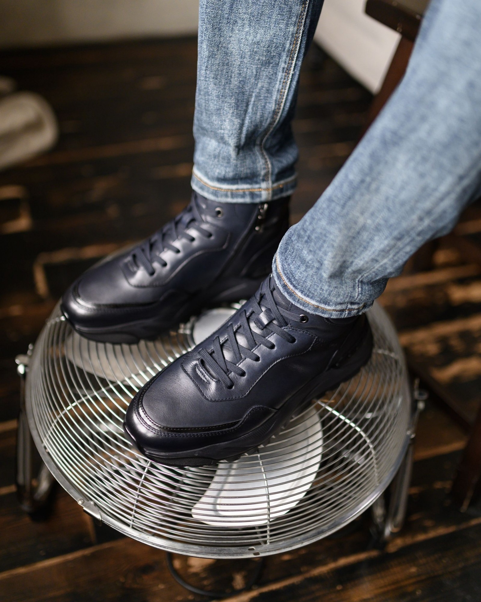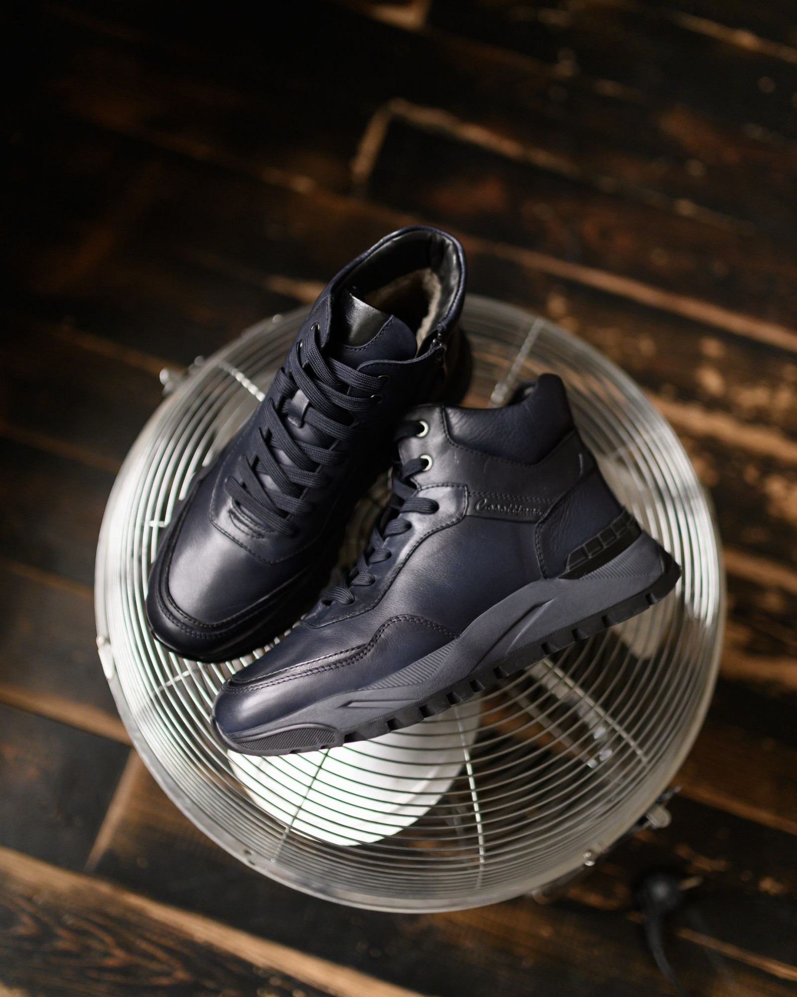 Демисезонные кроссовки в насыщенном тёмно-синем цвете, выполненные на утолщённой амортизирующей подошве для уверенной походки. Внутренний замок обеспечивает лёгкость при надевании и снимает необходимость постоянной шнуровки, что добавляет удобства в повседневном использовании. Элегантная динамичность этой модели делает её отличным выбором для тех, кто ценит стиль и функциональность в одном.