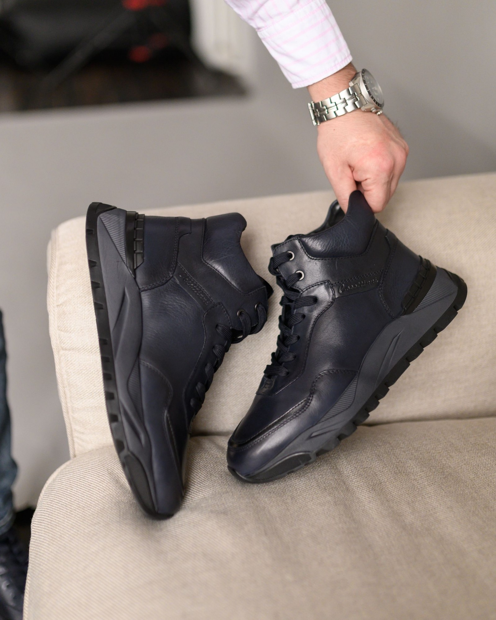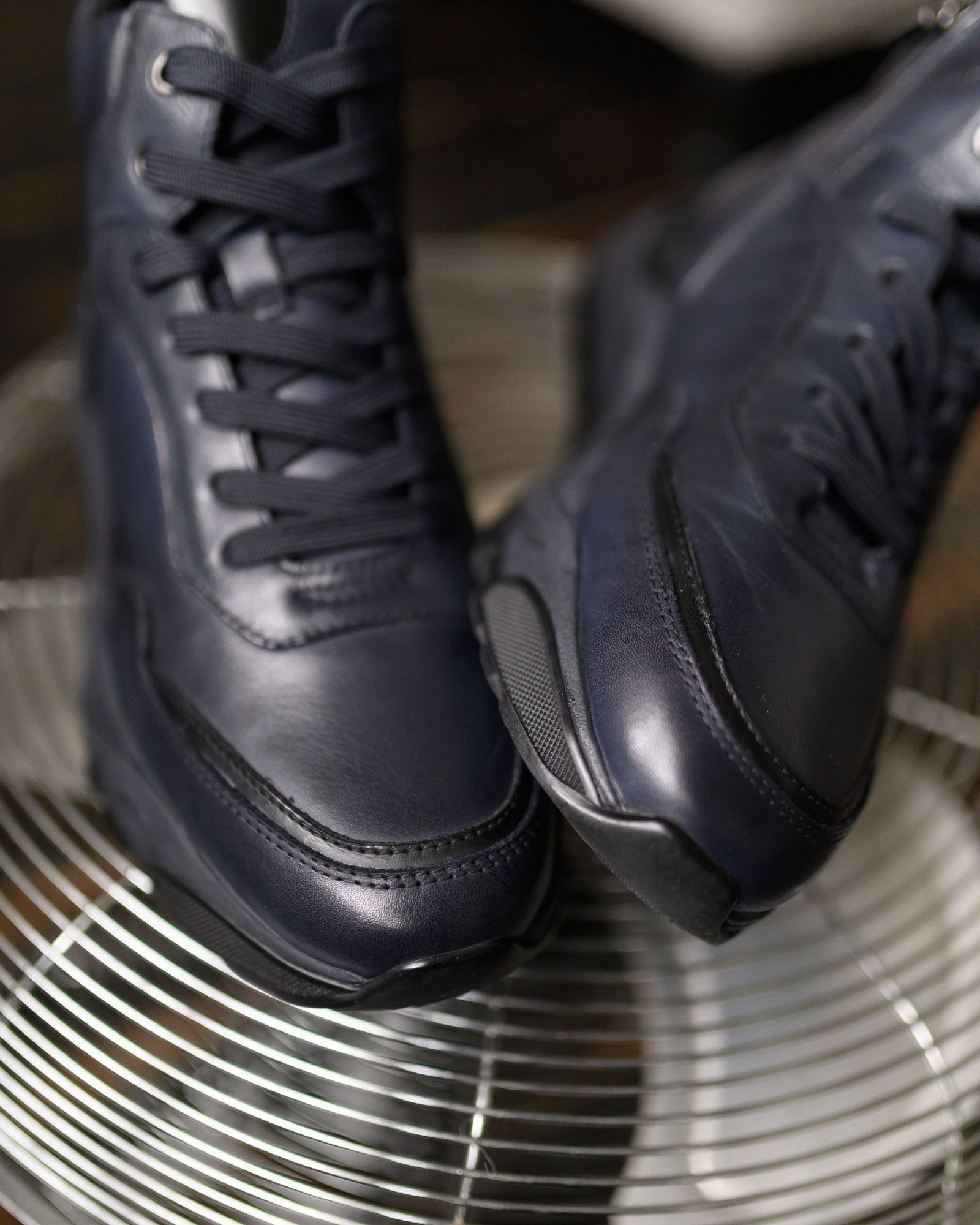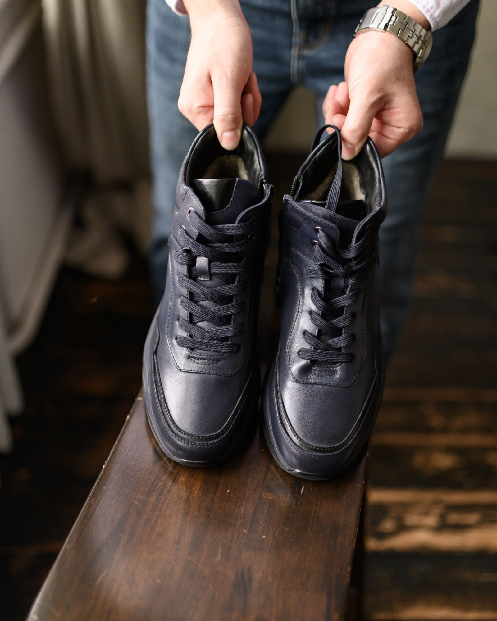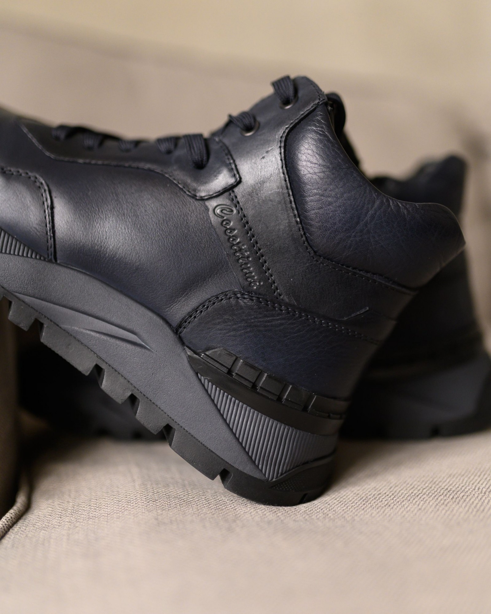 Демисезонные кроссовки в насыщенном тёмно-синем цвете, выполненные на утолщённой амортизирующей подошве для уверенной походки. Внутренний замок обеспечивает лёгкость при надевании и снимает необходимость постоянной шнуровки, что добавляет удобства в повседневном использовании. Элегантная динамичность этой модели делает её отличным выбором для тех, кто ценит стиль и функциональность в одном.