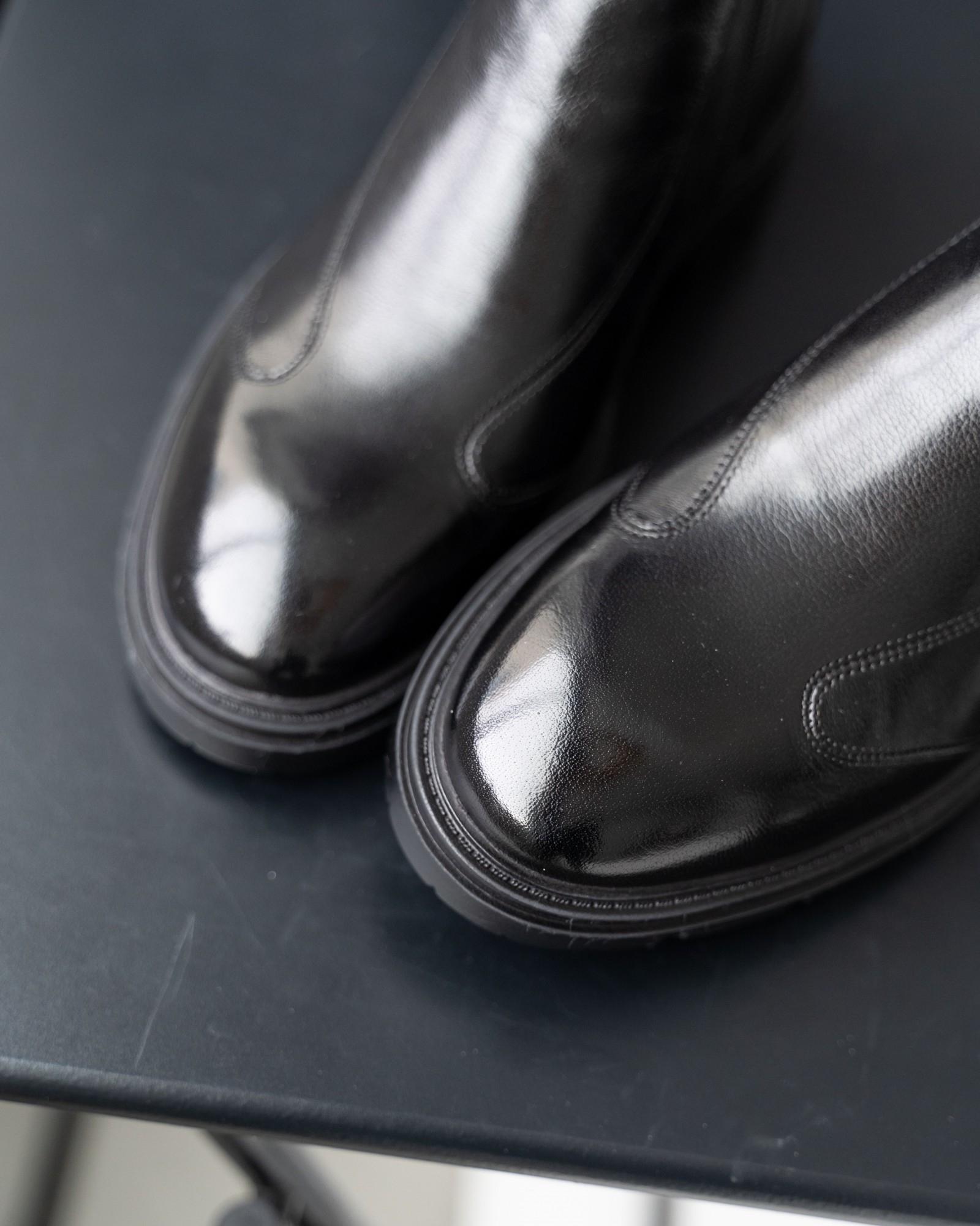 Эта пара сочетает минимализм и элегантность: низкий силуэт, отсутствие шнурков и внутренний замок делают обувь удобной для надевания, сохраняя чистую линию верха. Аккуратная декоративная отстрочка добавляет изысканный акцент и подчёркивает качество пошива.