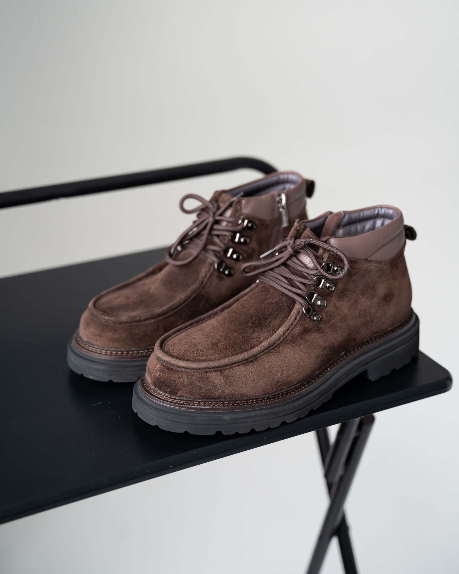 **Коричневые замшевые полуботинки с динамичным силуэтом**