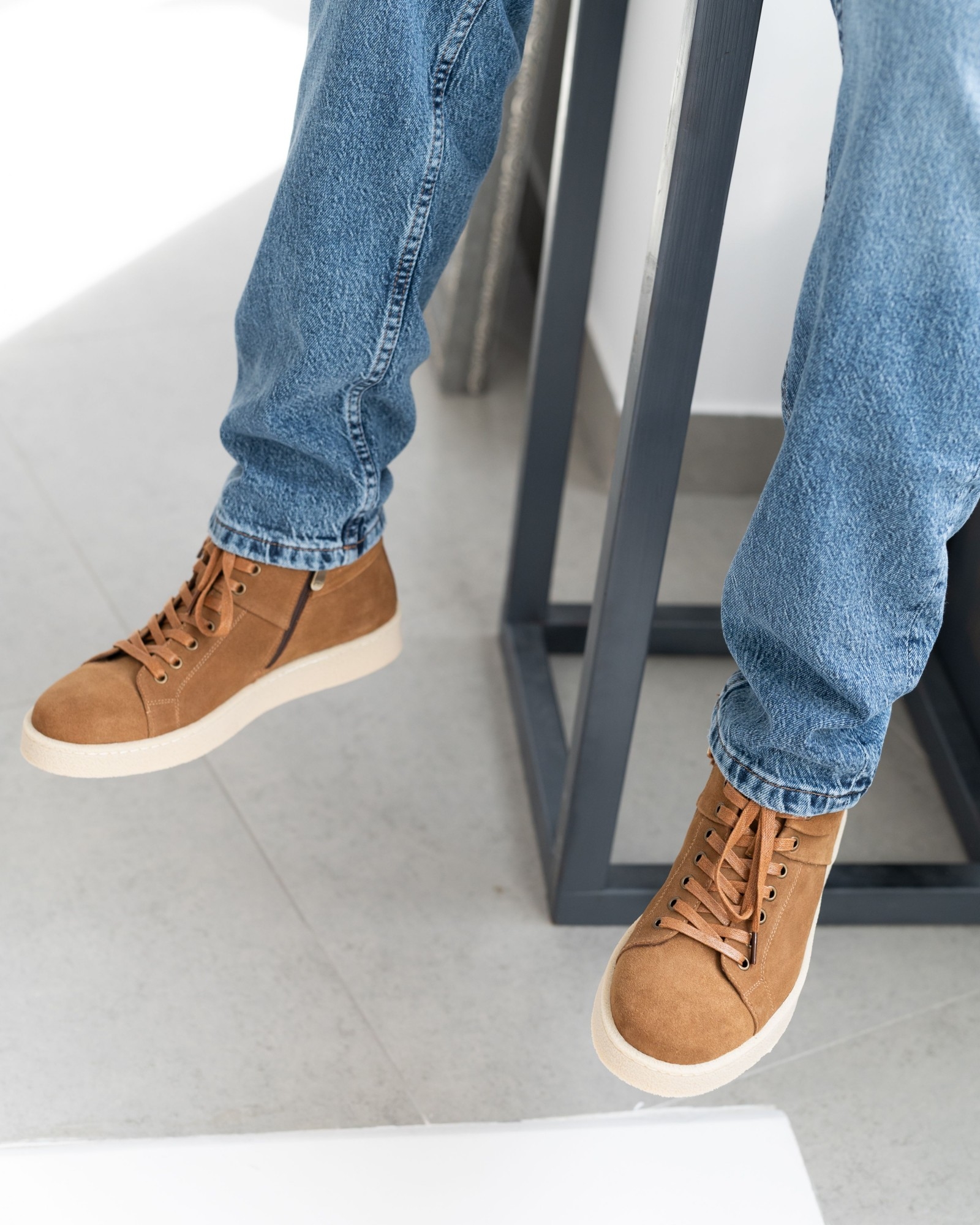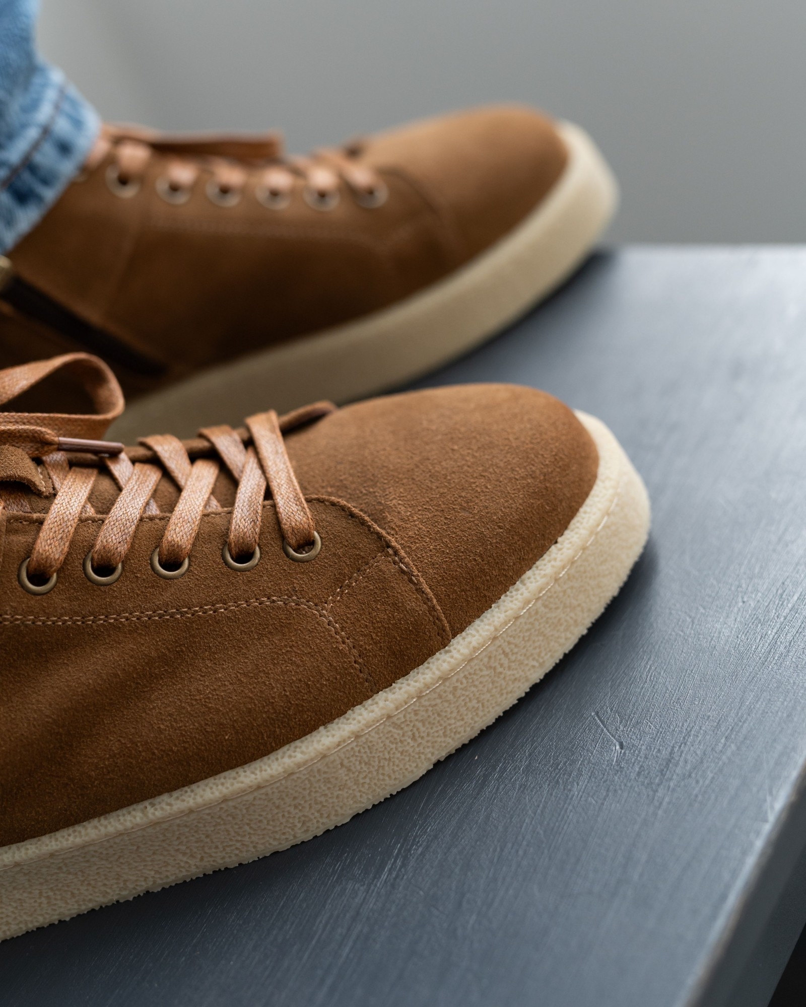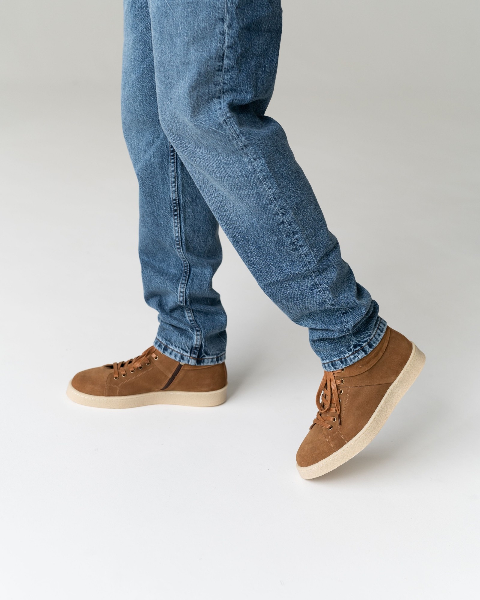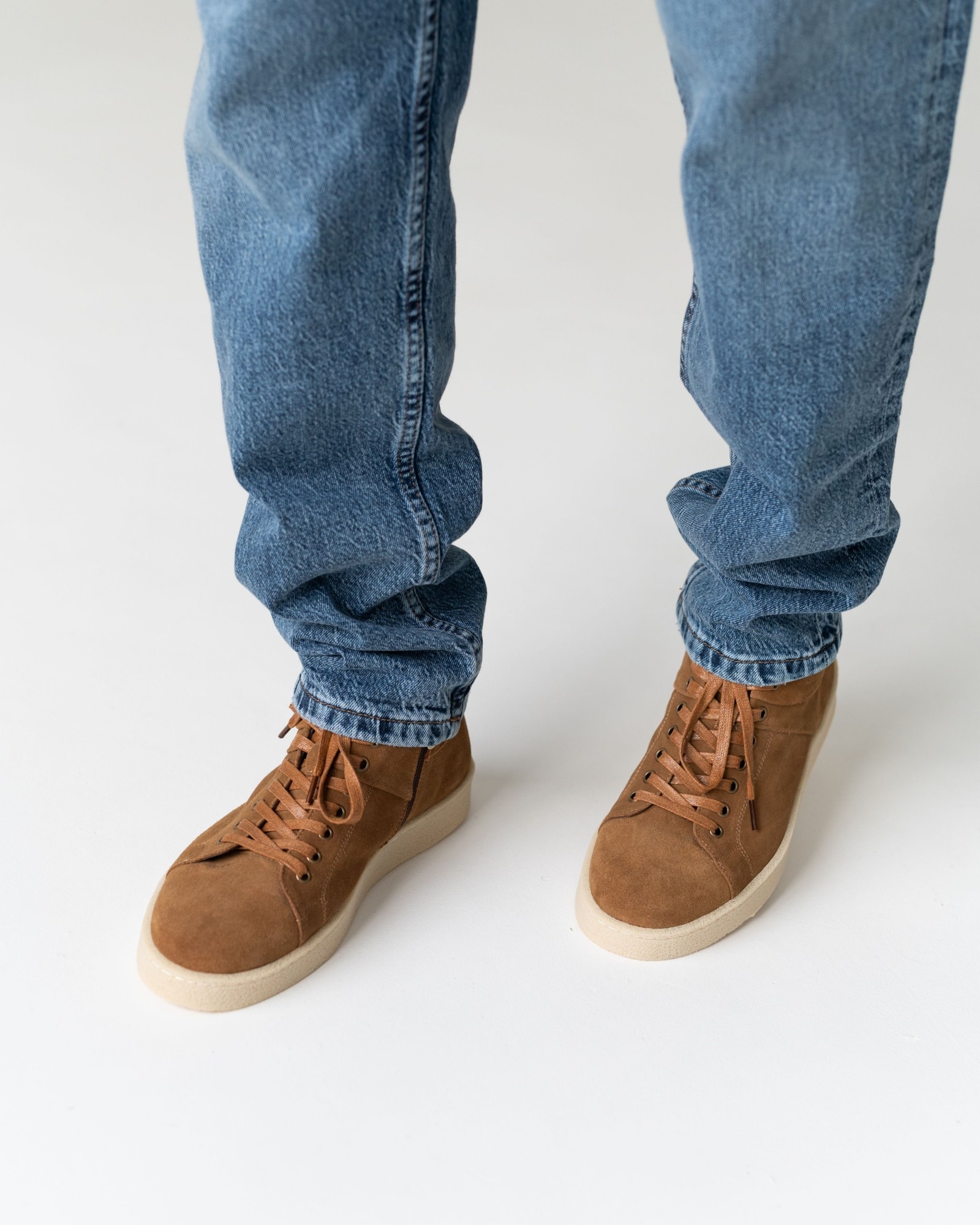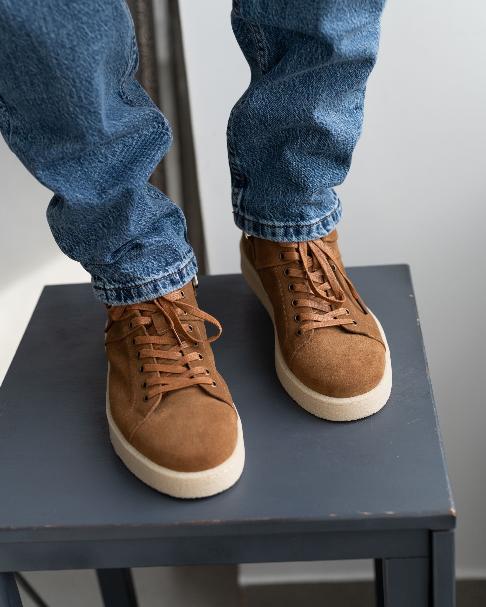 **Рыжие замшевые кеды с глубокой шнуровкой**