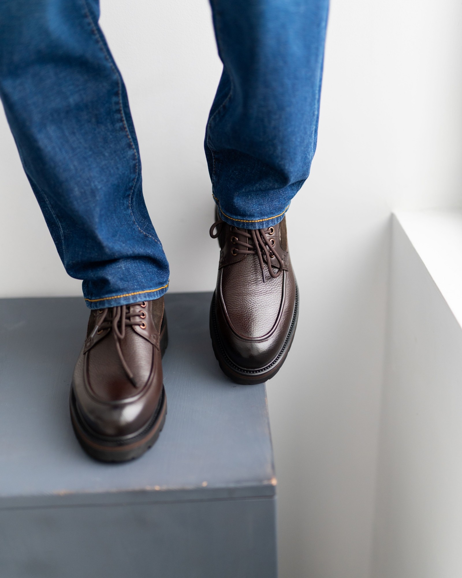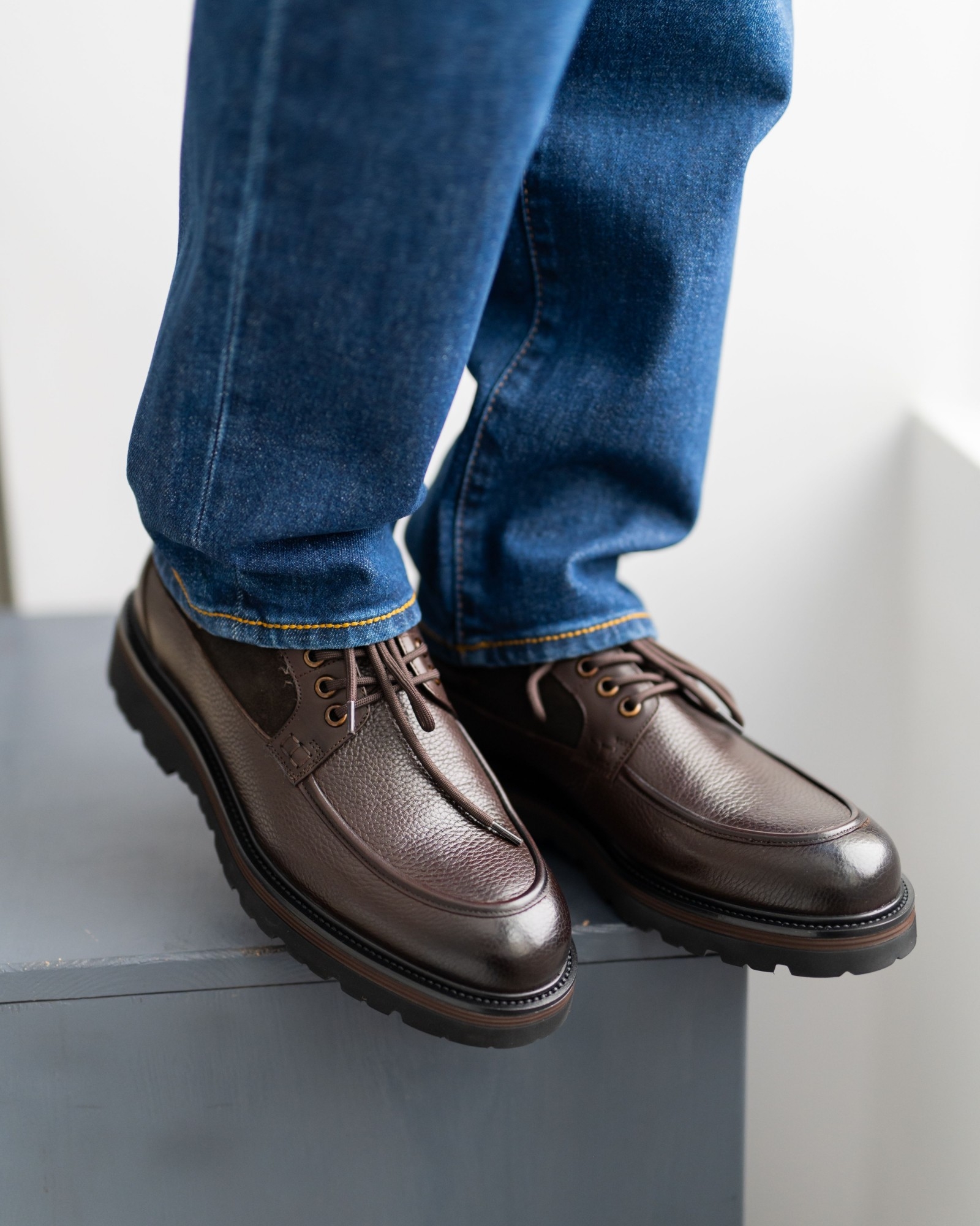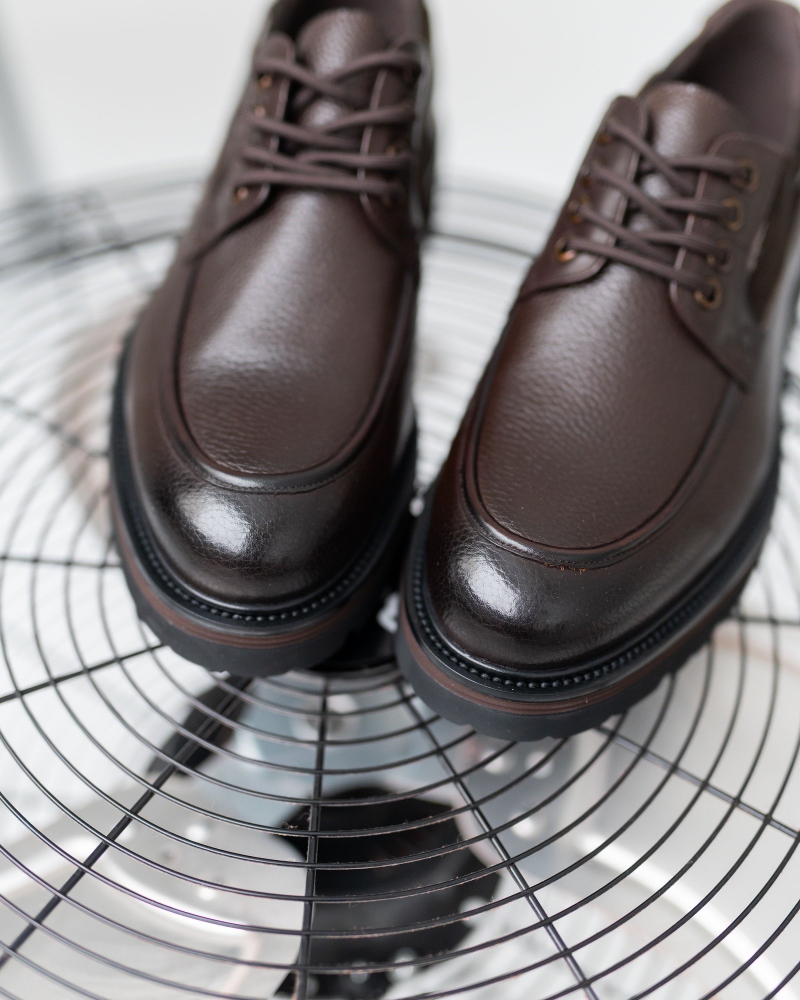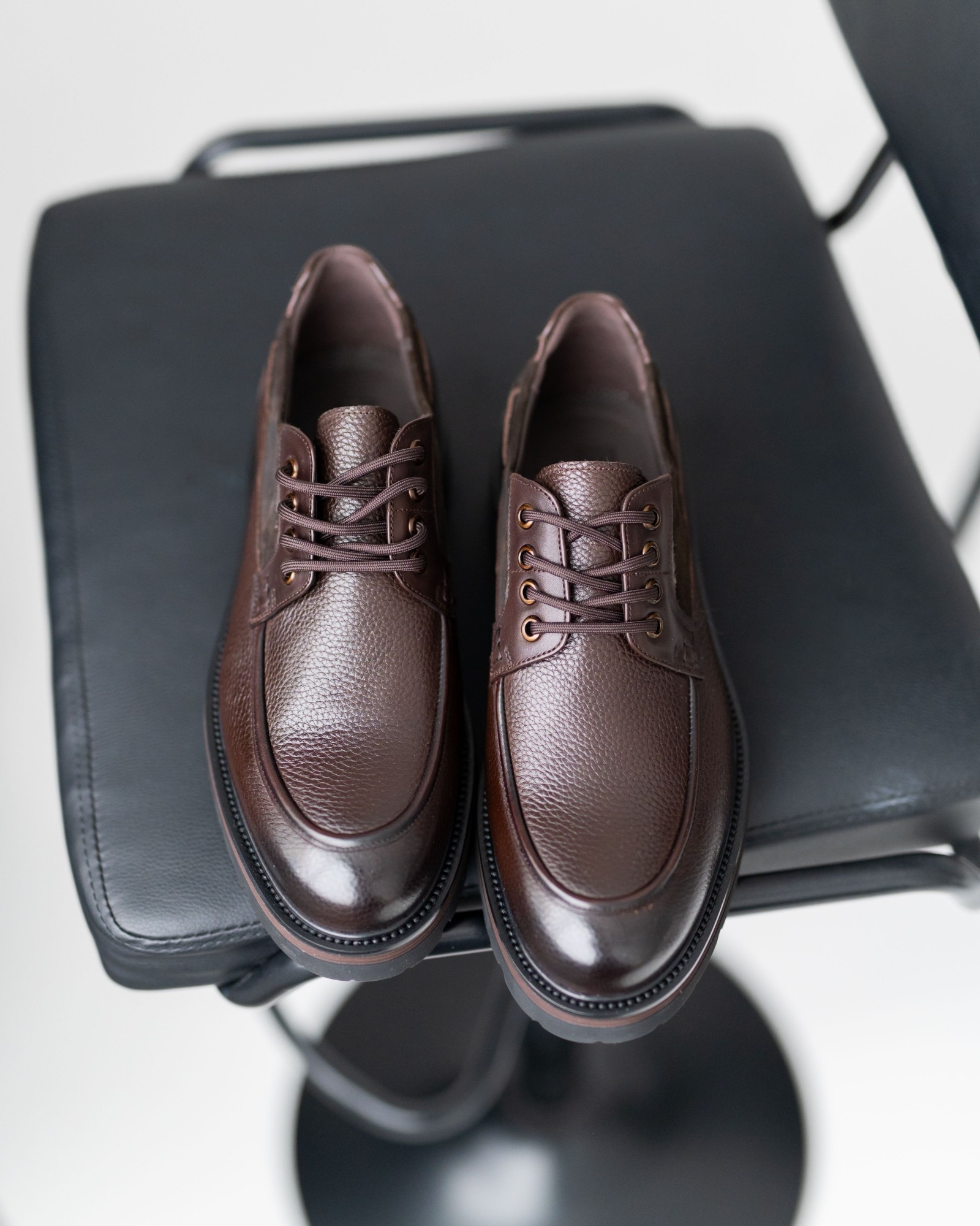 Современная классика, в которой коричневая кожа сочетается с аккуратными вставками замши, создавая выразительный, но сдержанный силуэт. Форма модели напоминает топсайдеры, однако общий характер уверенно тяготеет к классике — строгой, универсальной и актуальной в любой сезон. Мягкая посадка, устойчивое основание и сбалансированное сочетание фактур делают пару идеальным выбором для повседневного гардероба с акцентом на стиль и комфорт. Это обувь, которая легко вписывается в жизнь и работает на образ владельца, а не наоборот.