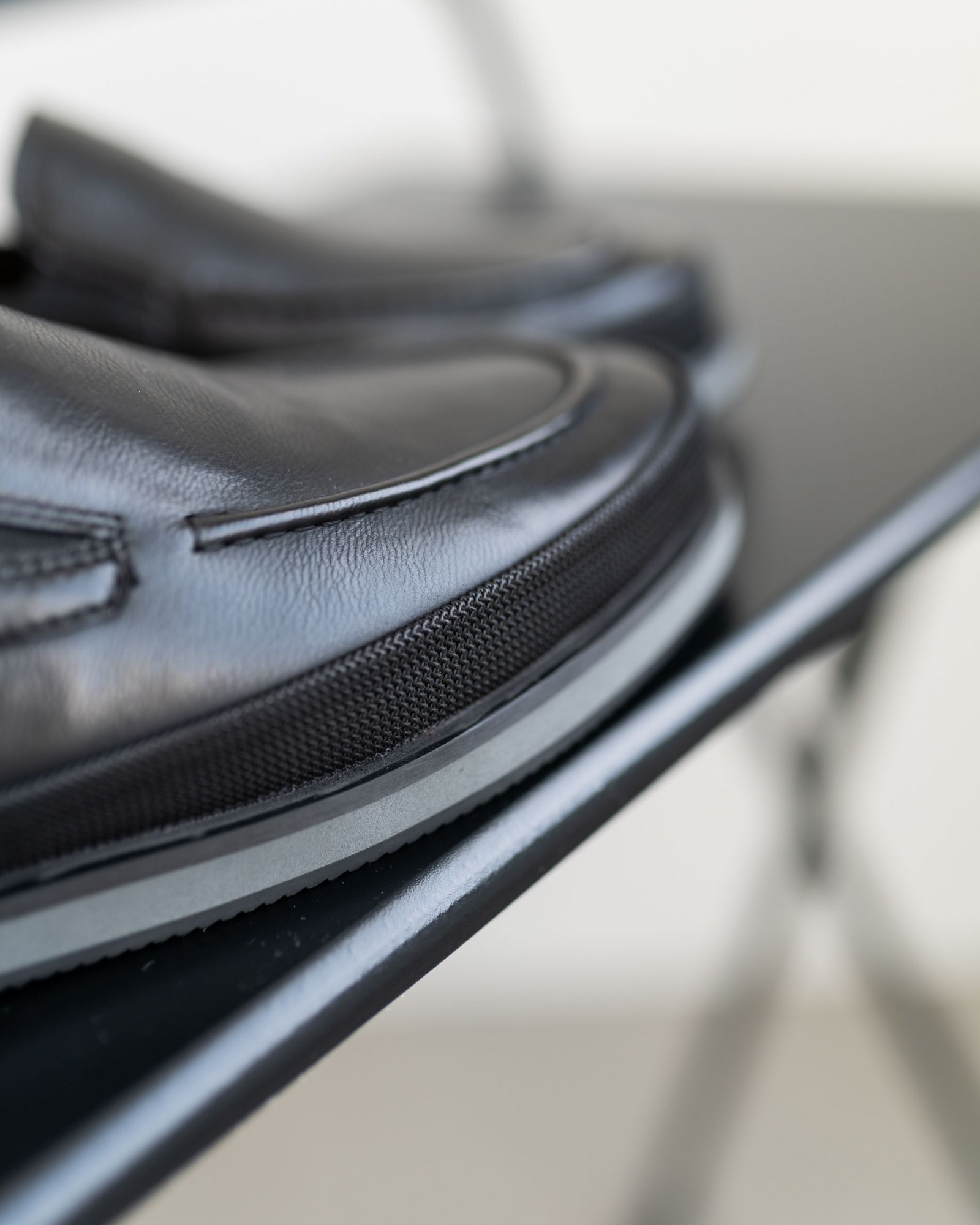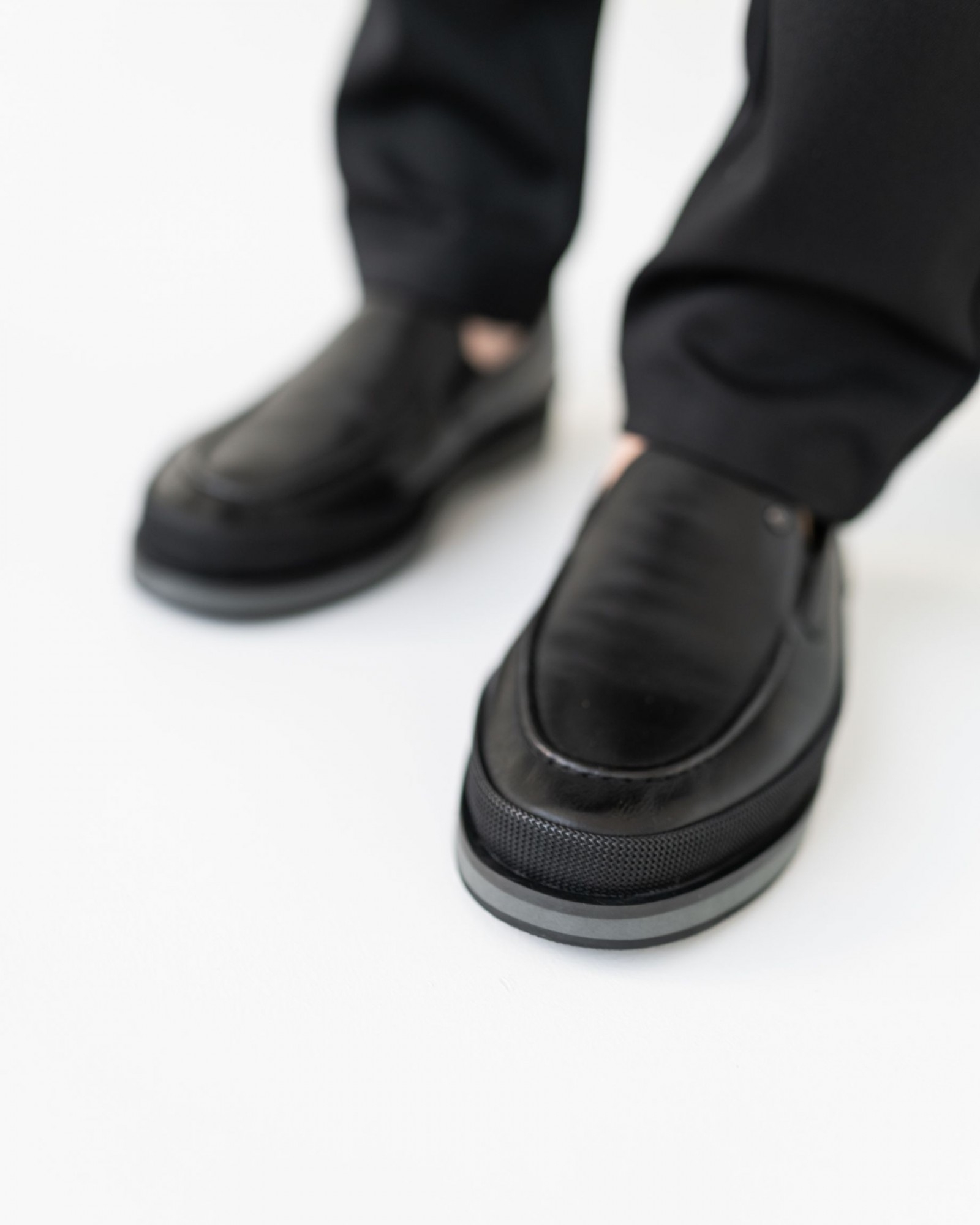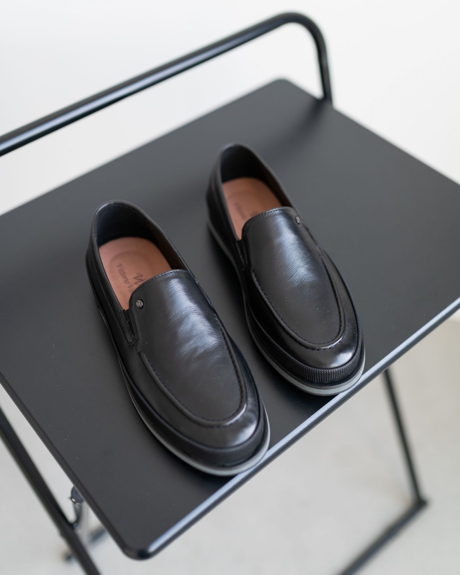 Чёрные слипоны с утончёнными элементами лоферов — сочетание минимализма и классики. Средняя по толщине подошва без каблука создаёт естественную посадку и комфорт при ходьбе. Облегчённая конструкция и мягкая кожа премиального качества обеспечивают удобство на весь день. Анатомическая форма и эластичные вставки позволяют легко надевать и снимать обувь. Универсальный стиль делает эту модель отличным выбором как для повседневных образов, так и для более элегантных сочетаний.