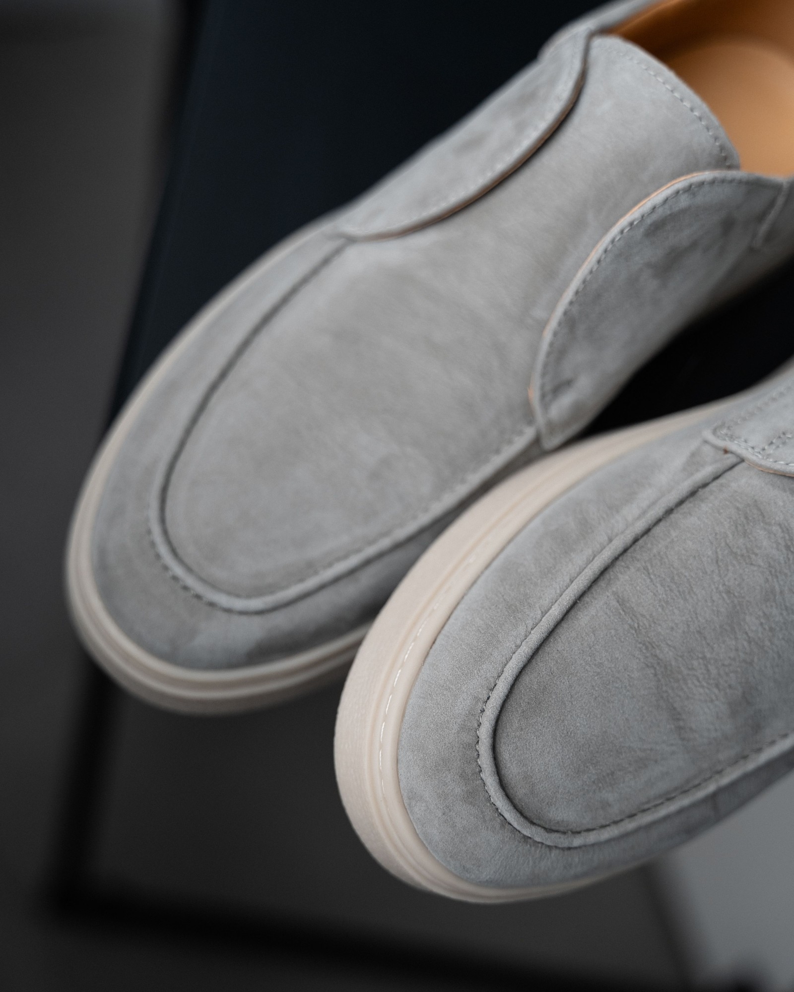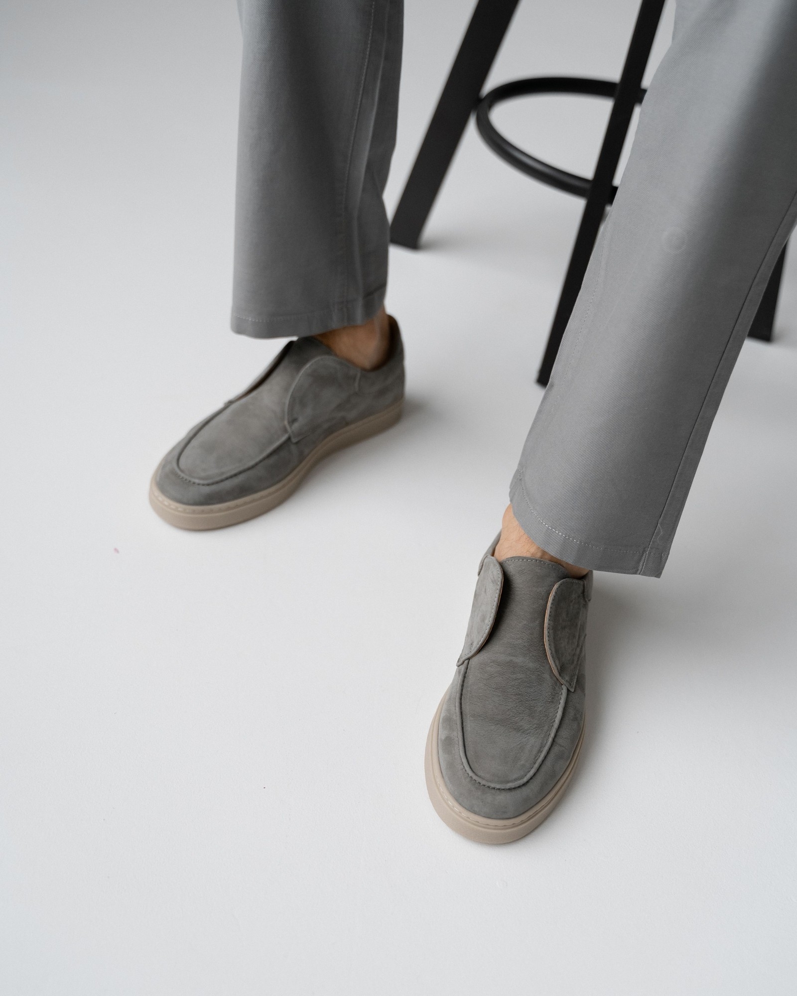 Модель в духе культовой Loro Piana создана для тех, кто устал от однотипной обуви и ищет нечто большее. Стильный серый цвет подчёркивает утончённость и универсальность пары — она легко впишется в образ делового дня или расслабленного уикенда.