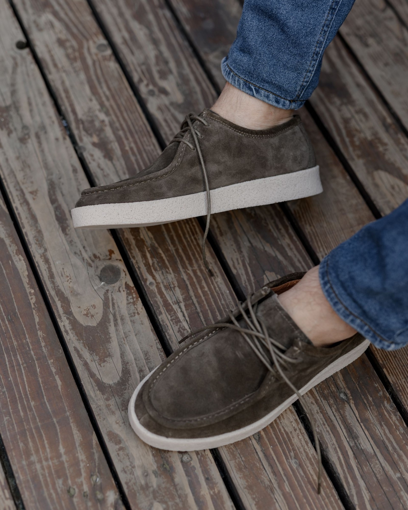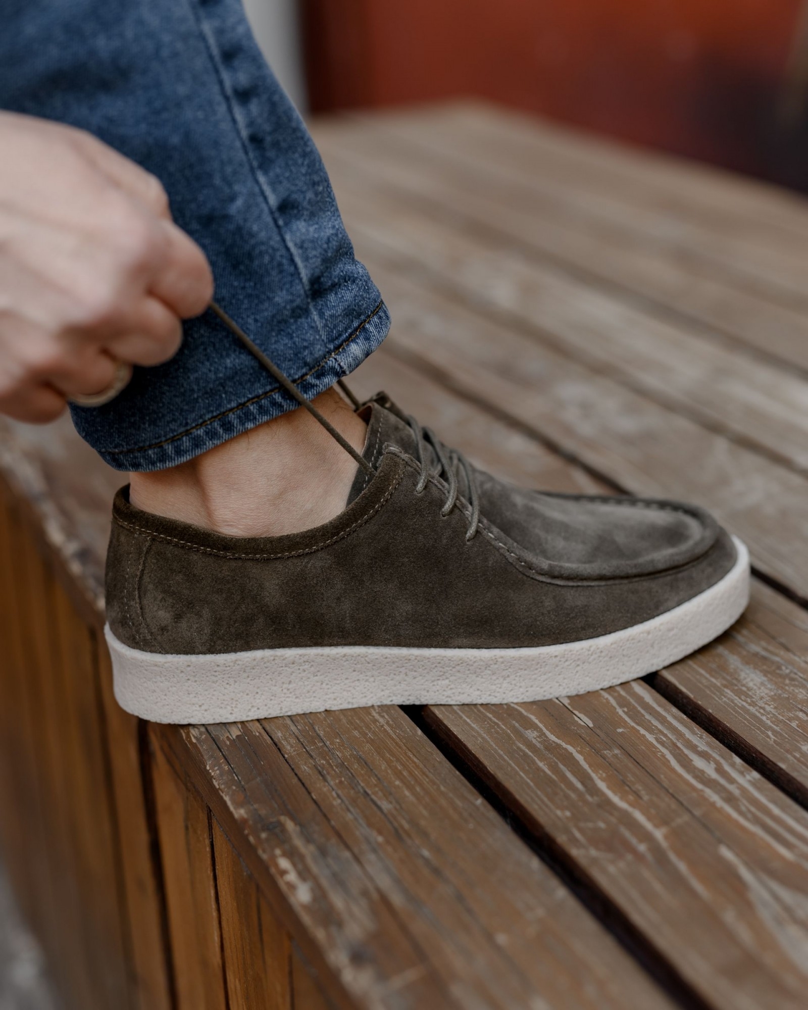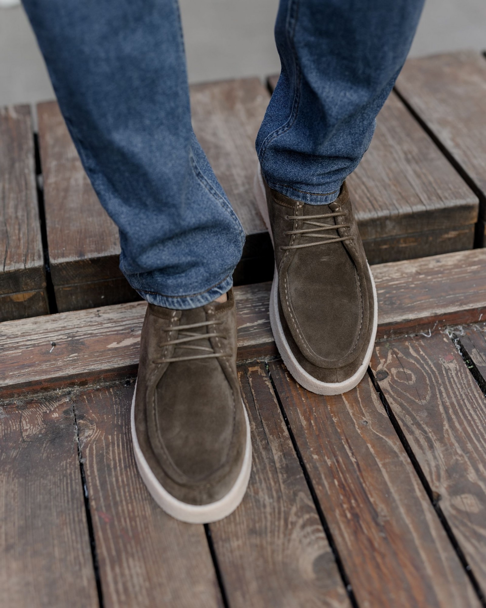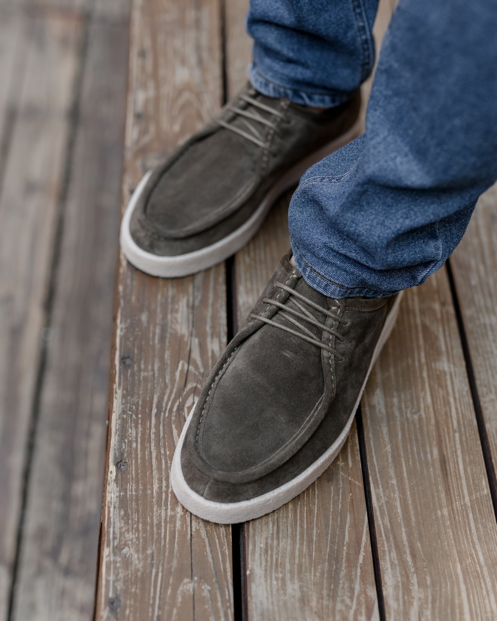 **Пара цвета хаки с утолщённой пористой подошвой и элементами лоферов — уверенный шаг в сторону современного стиля**