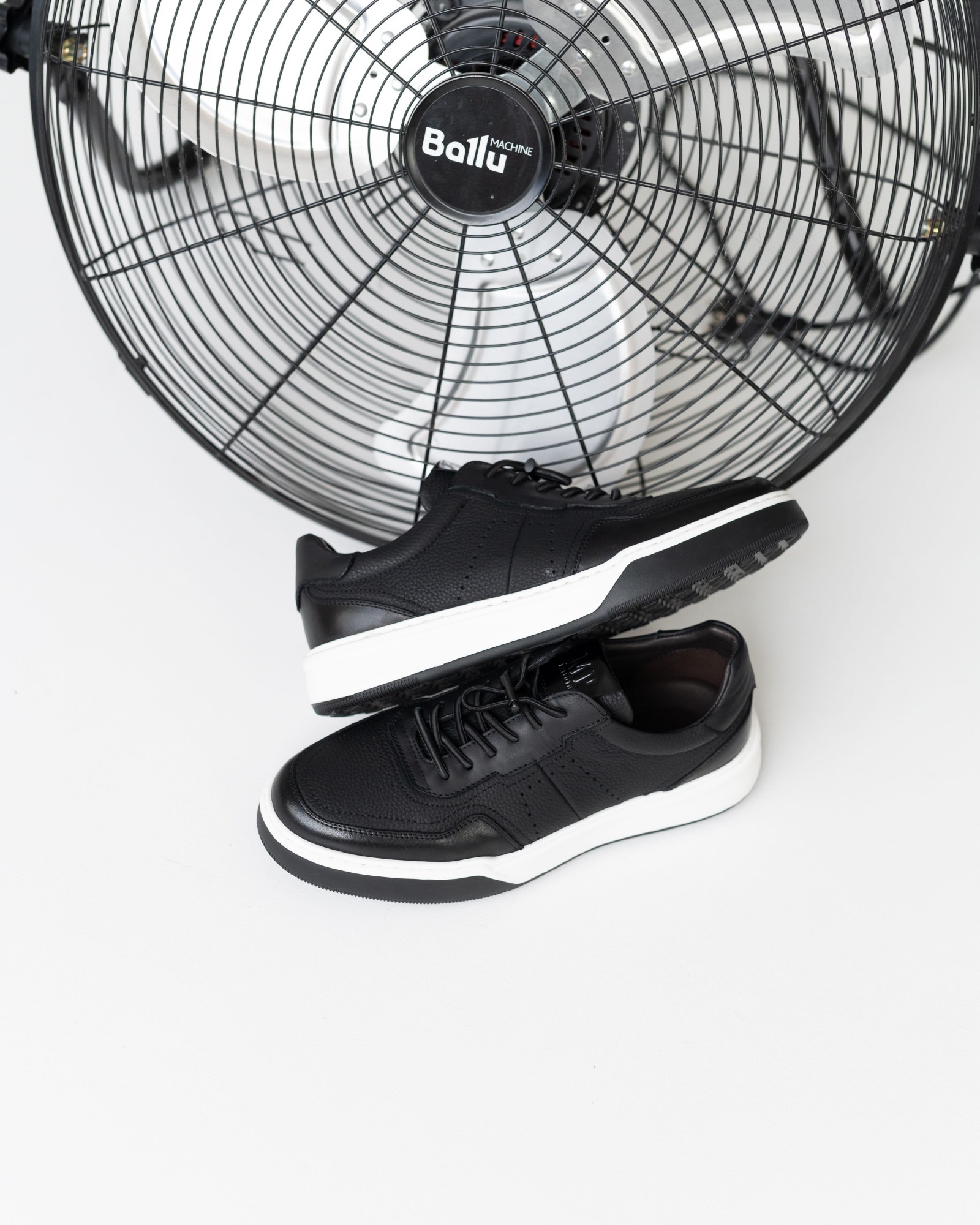**Чёрные кеды из комбинированной кожи на светлой подошве**