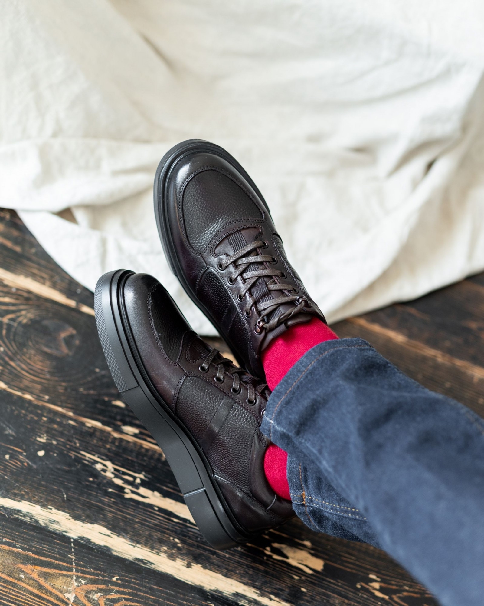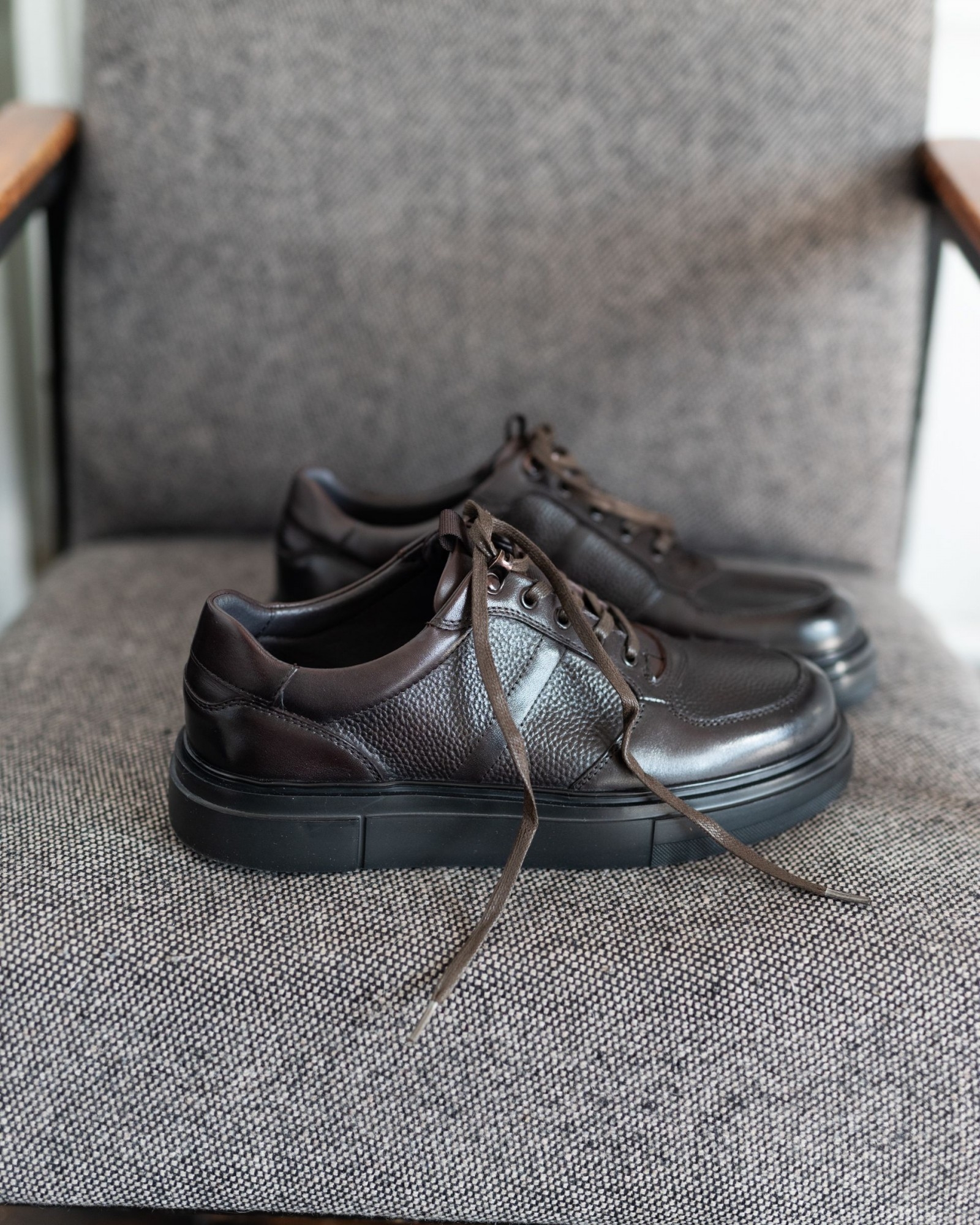 Шнурки высокого качества добавляют изящности и делают эту модель визуально завершённой. Модель балансирует между классическим и спортивным стилем, предлагая современный взгляд на классику, оставаясь полуспортивной. Она станет универсальным дополнением к гардеробу, подходящим как для повседневной жизни, так и для более формальных мероприятий.
