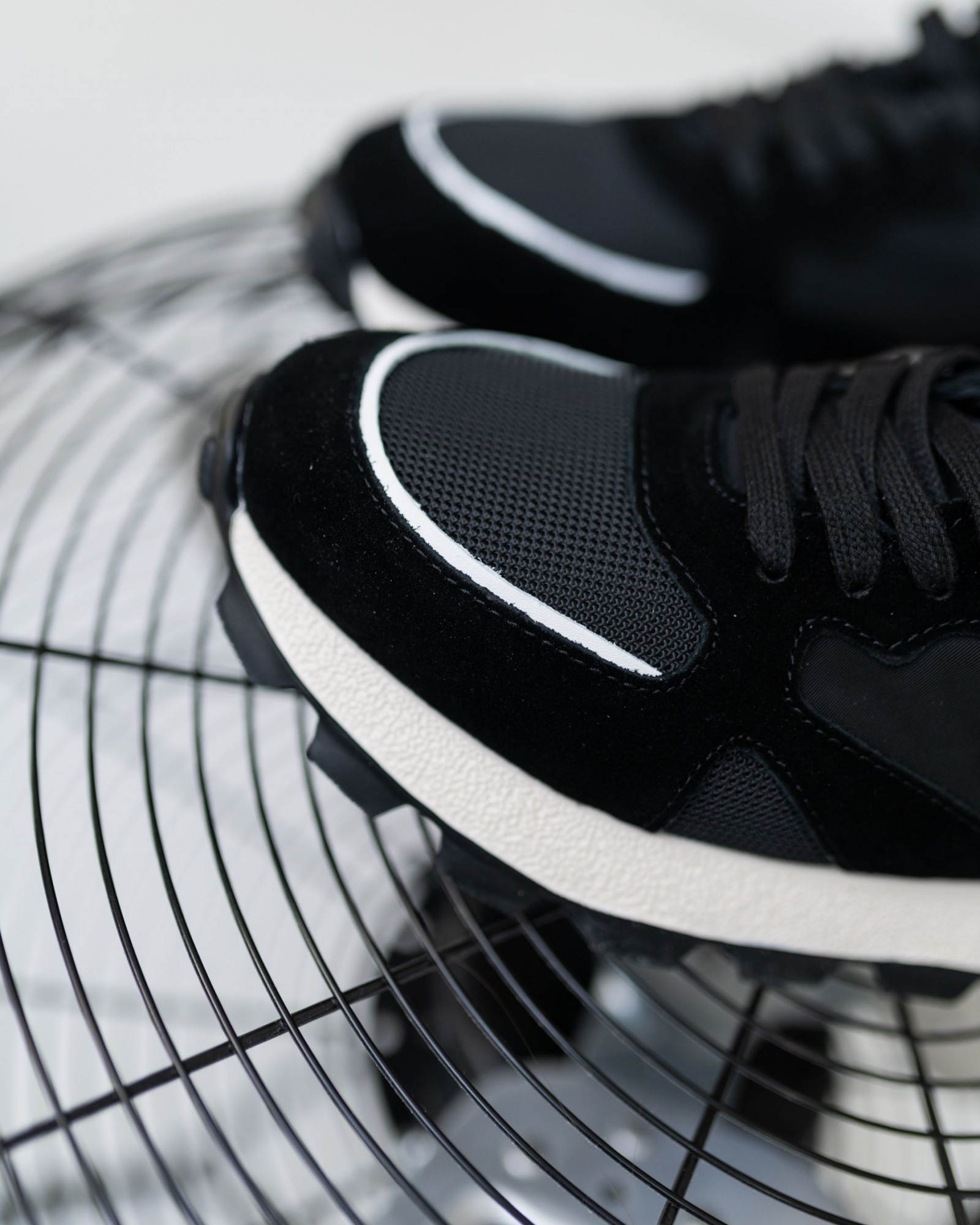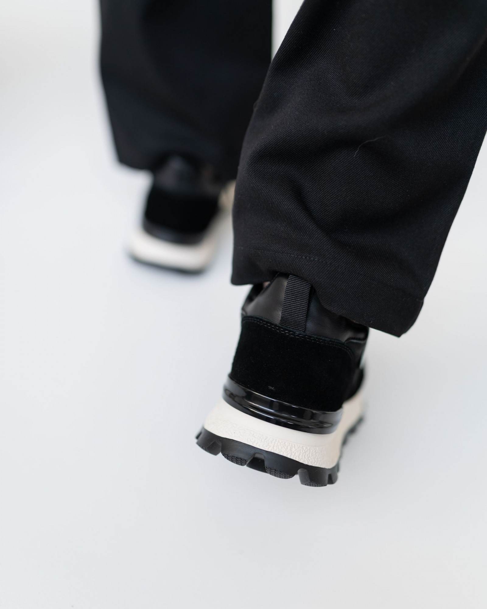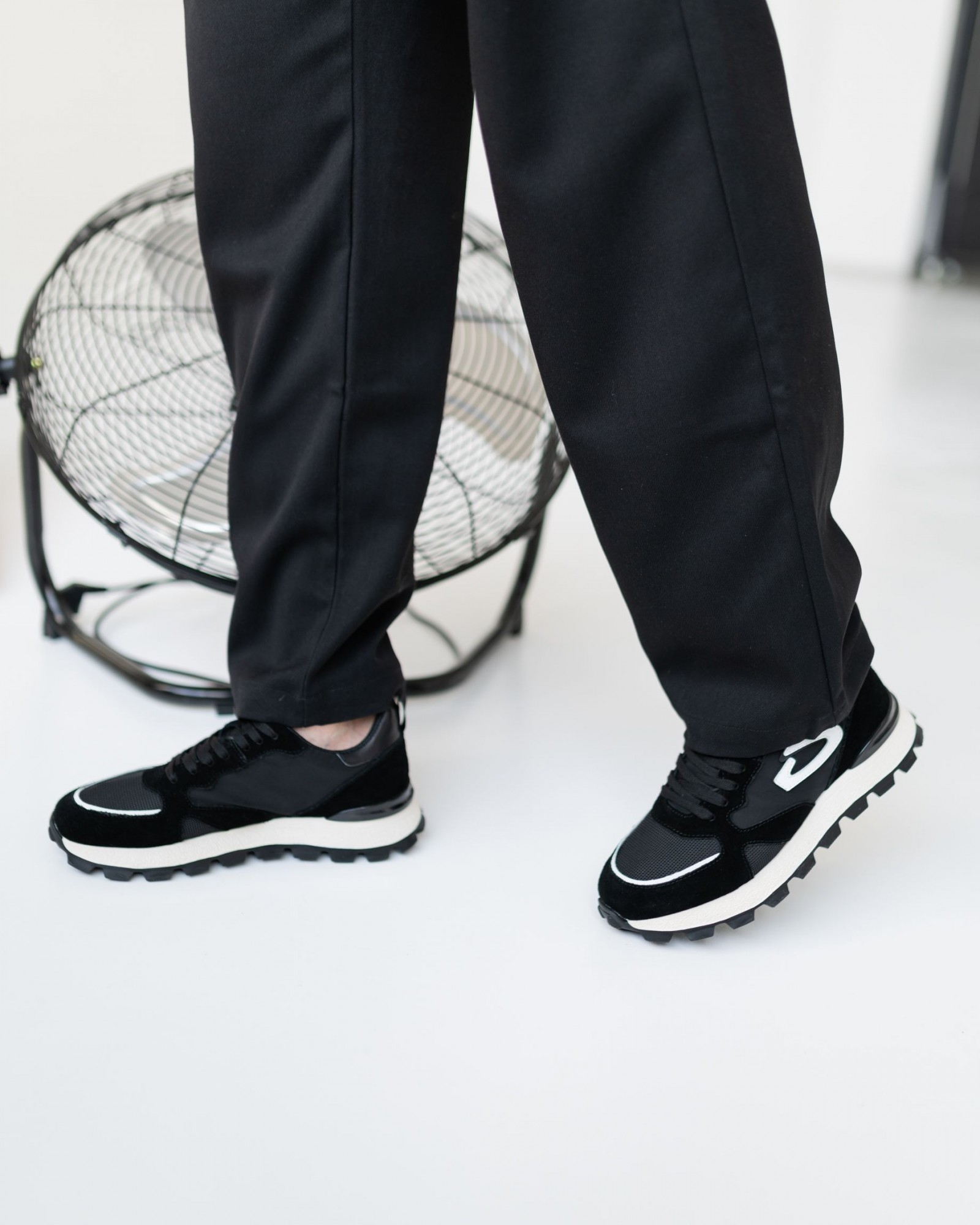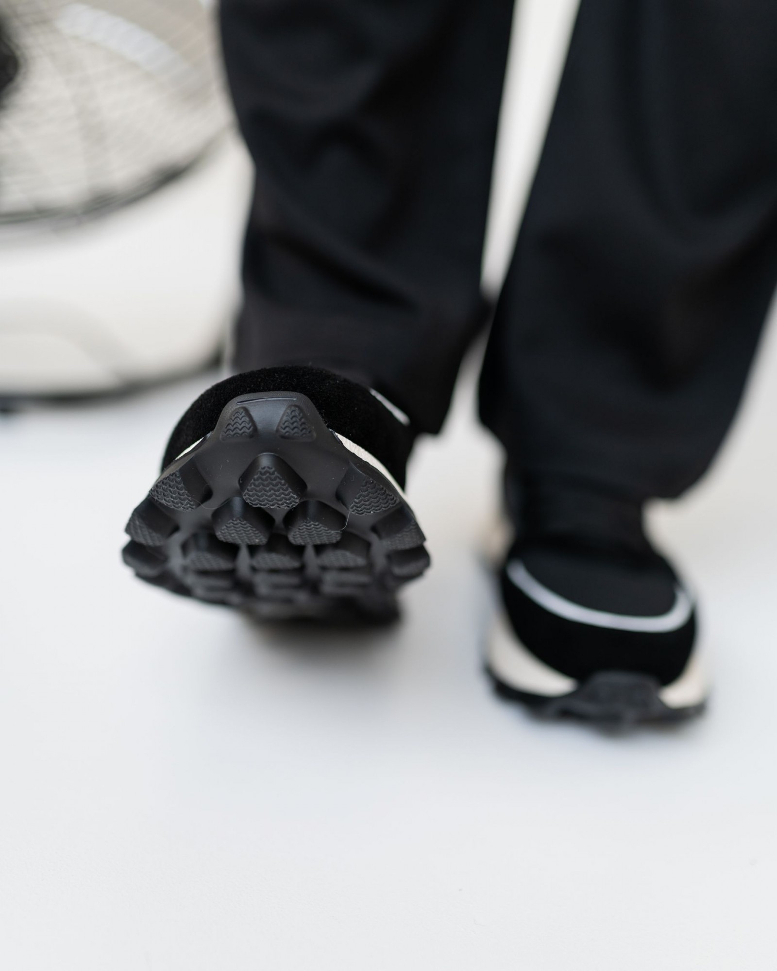 Лёгкие и стильные кроссовки на комбинированной подошве, где нижняя часть выполнена в практичном чёрном цвете, упрощающем уход. Выразительные выступающие шипы добавляют брутальности и улучшают сцепление с поверхностью. Внутри — подкладка из премиальной перфорированной кожи для комфортной циркуляции воздуха. Верх сочетает натуральную кожу и замшу с дышащими вставками из парусины, создавая сбалансированный микс долговечности, лёгкости и современного дизайна.