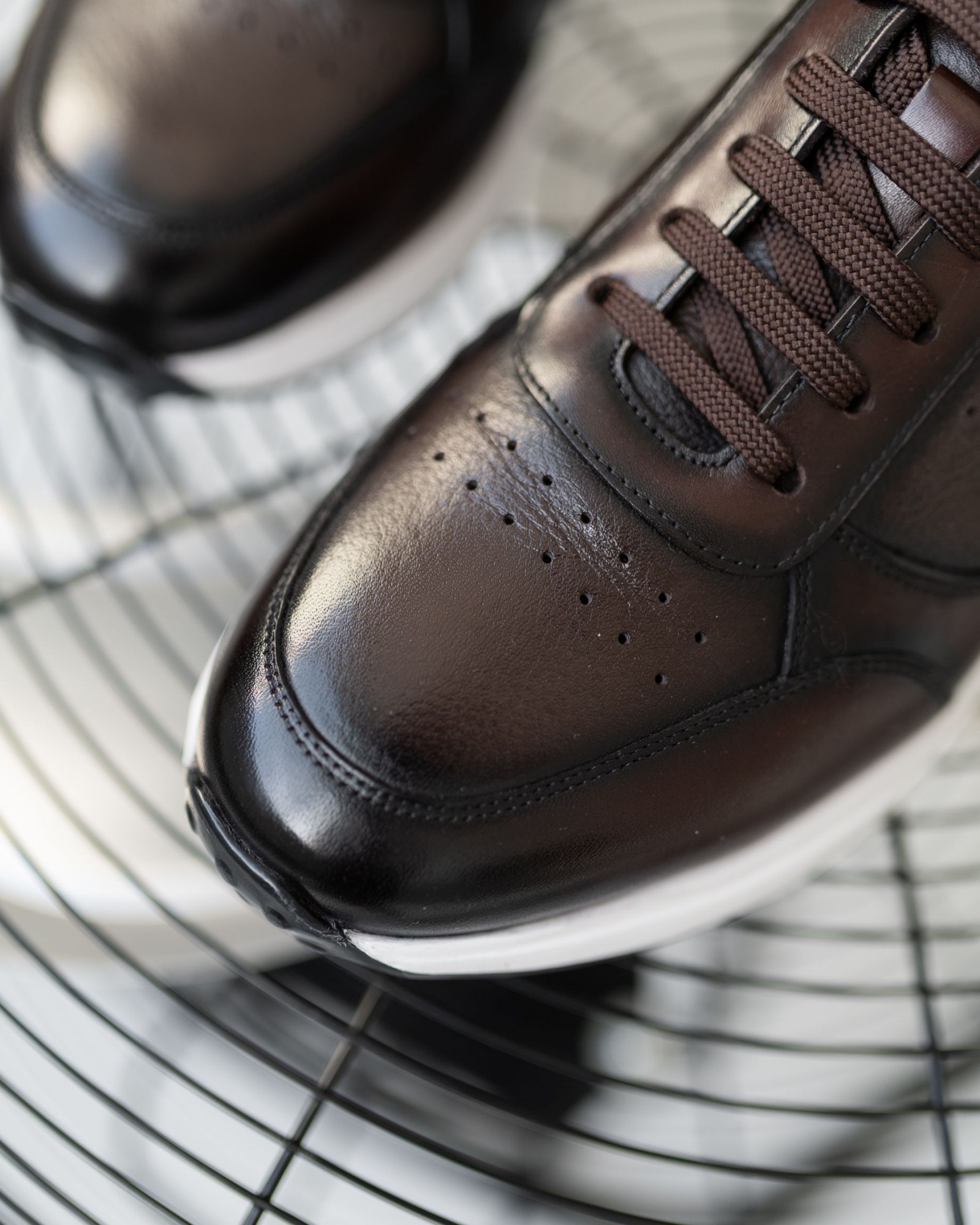 Спортивные кроссовки, идеально подходящие для повседневного городского использования и являющиеся отличным бизнес-выбором. Благородный коричневый оттенок кожи придает модели элегантность и утонченность. Удобная легкая подошва обеспечивает комфорт в течение всего дня, а аккуратная шнуровка добавляет завершенность и стиль. Эти кроссовки станут неотъемлемой частью вашего гардероба, сочетая спортивный комфорт и деловую строгость, позволяя выглядеть безупречно в любой ситуации.