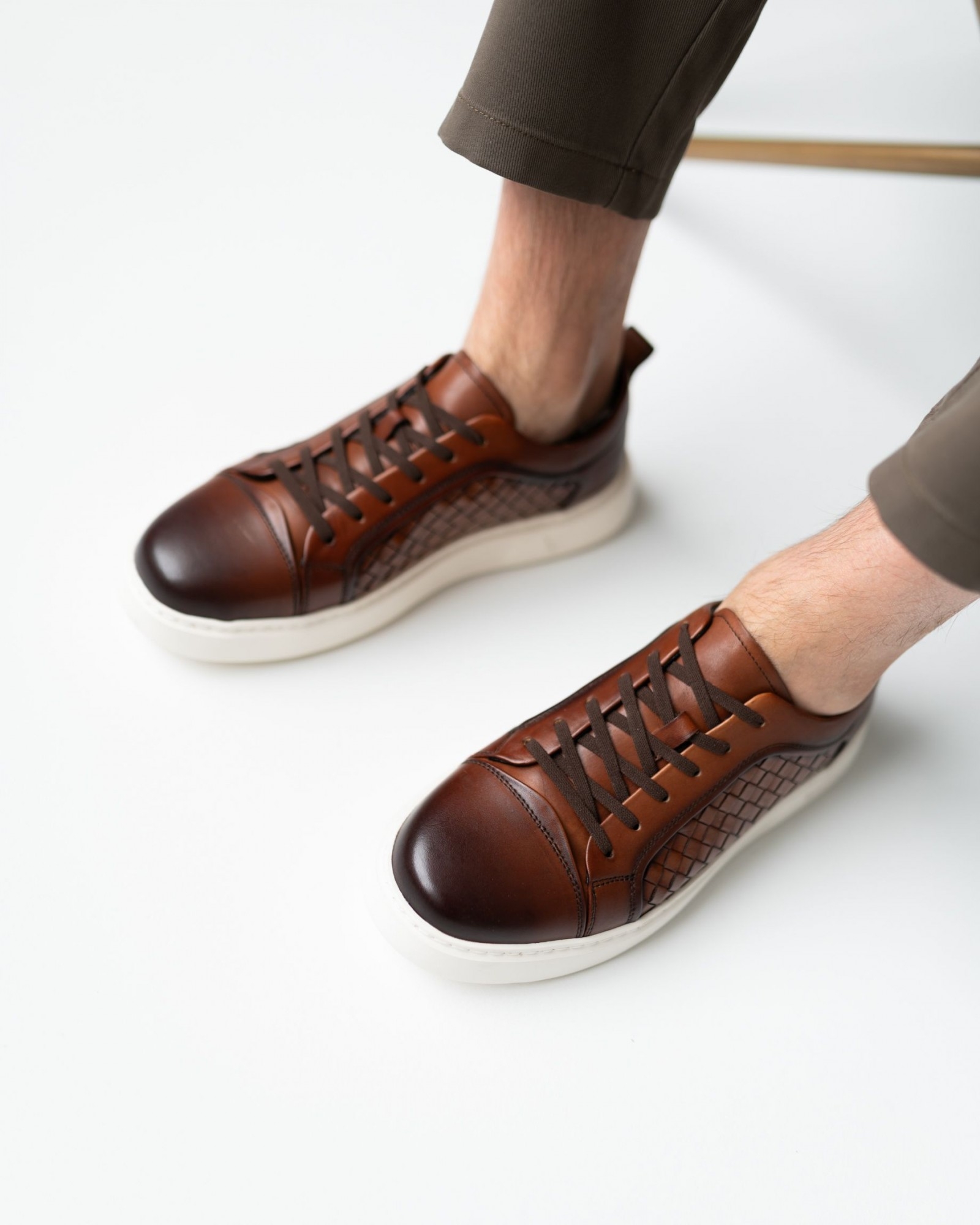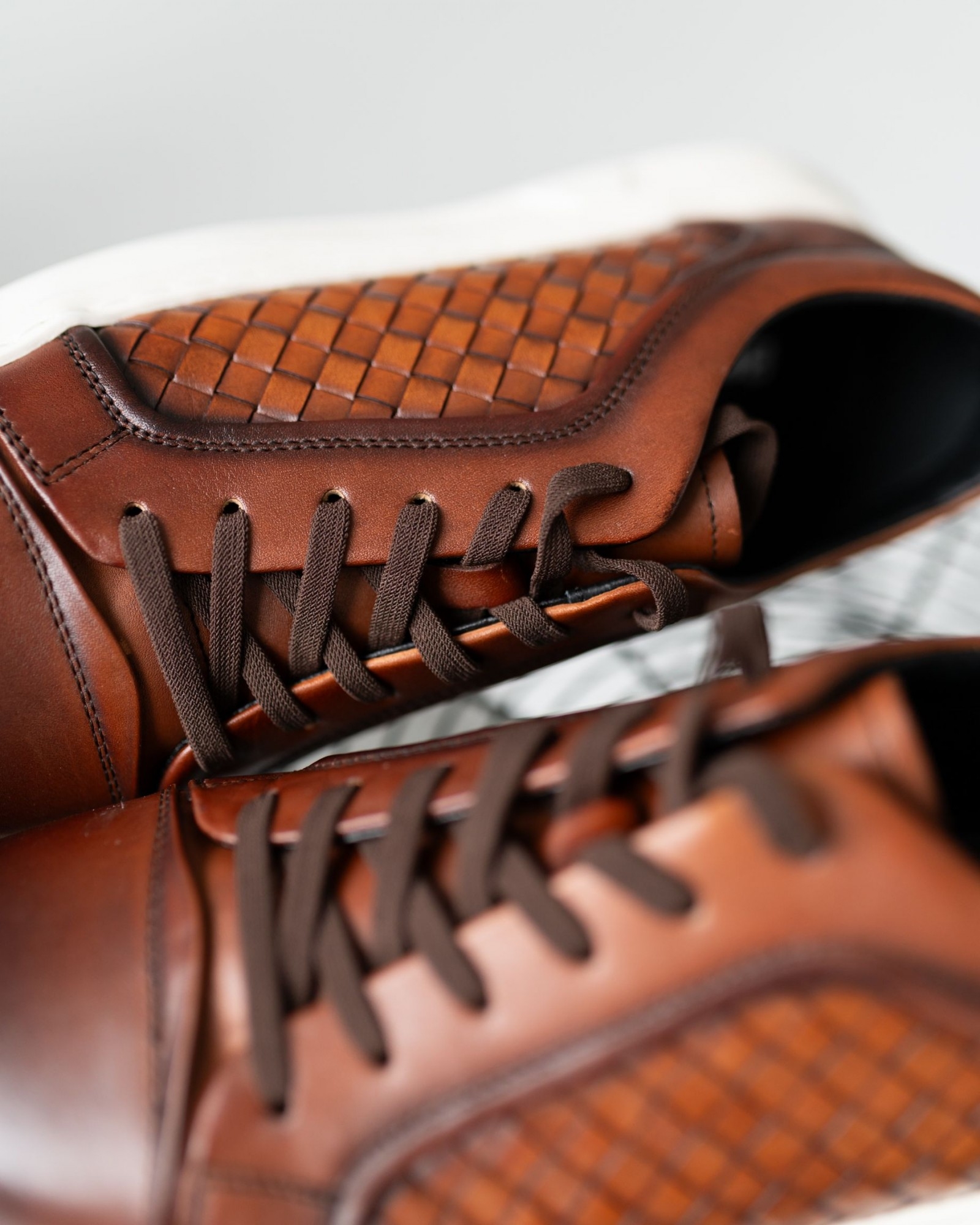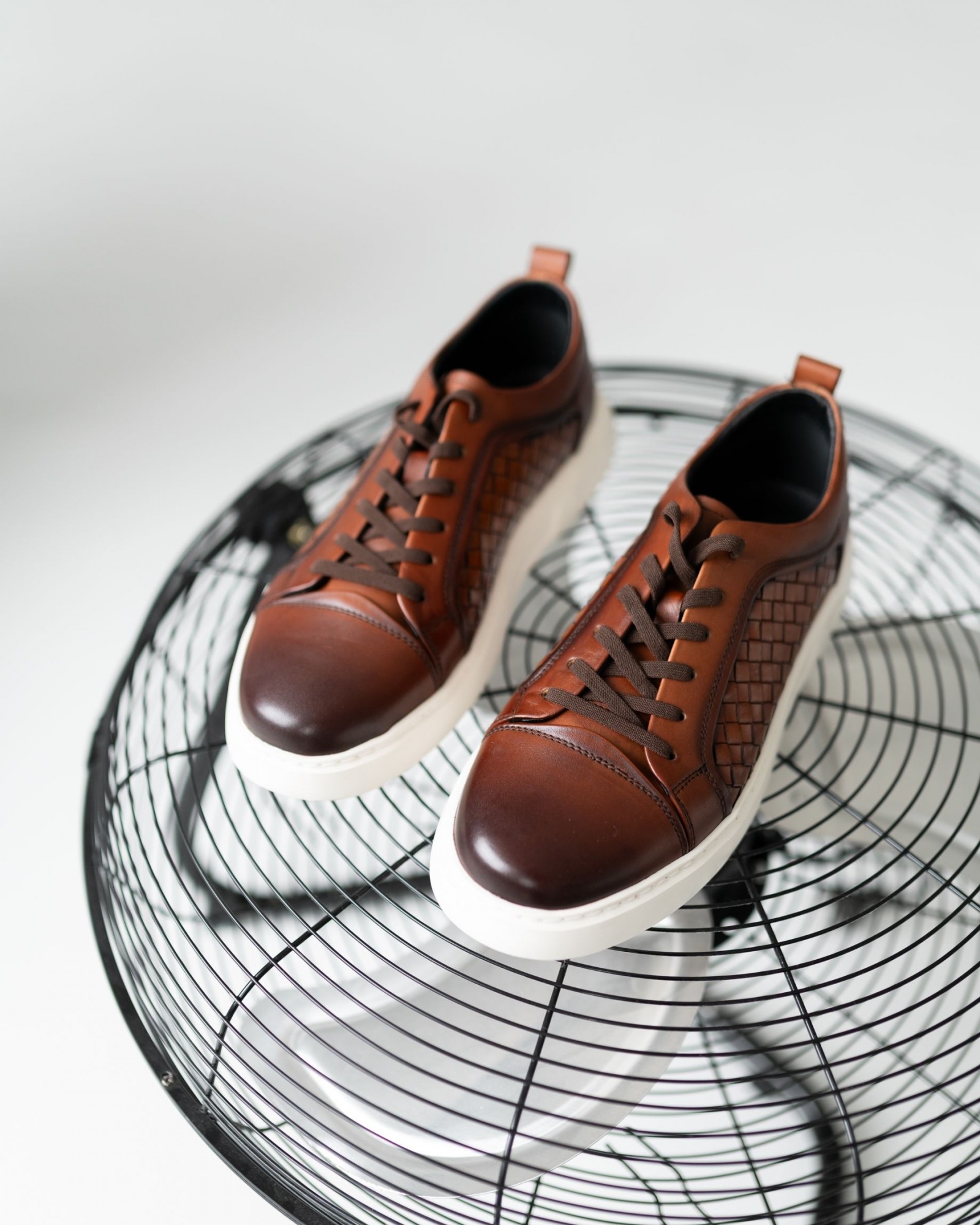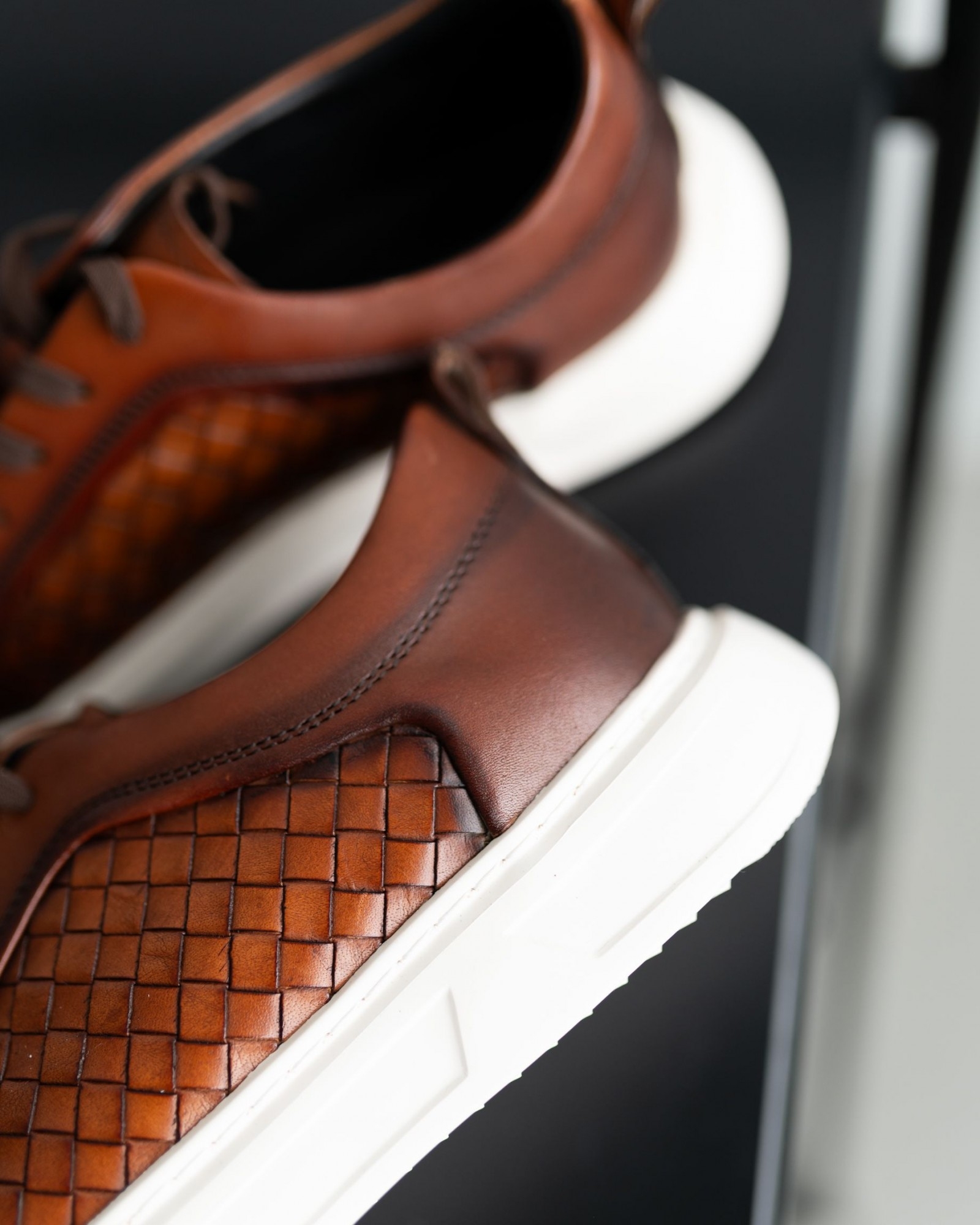 **Мужские кеды в рыжем цвете с плетёной кожей**