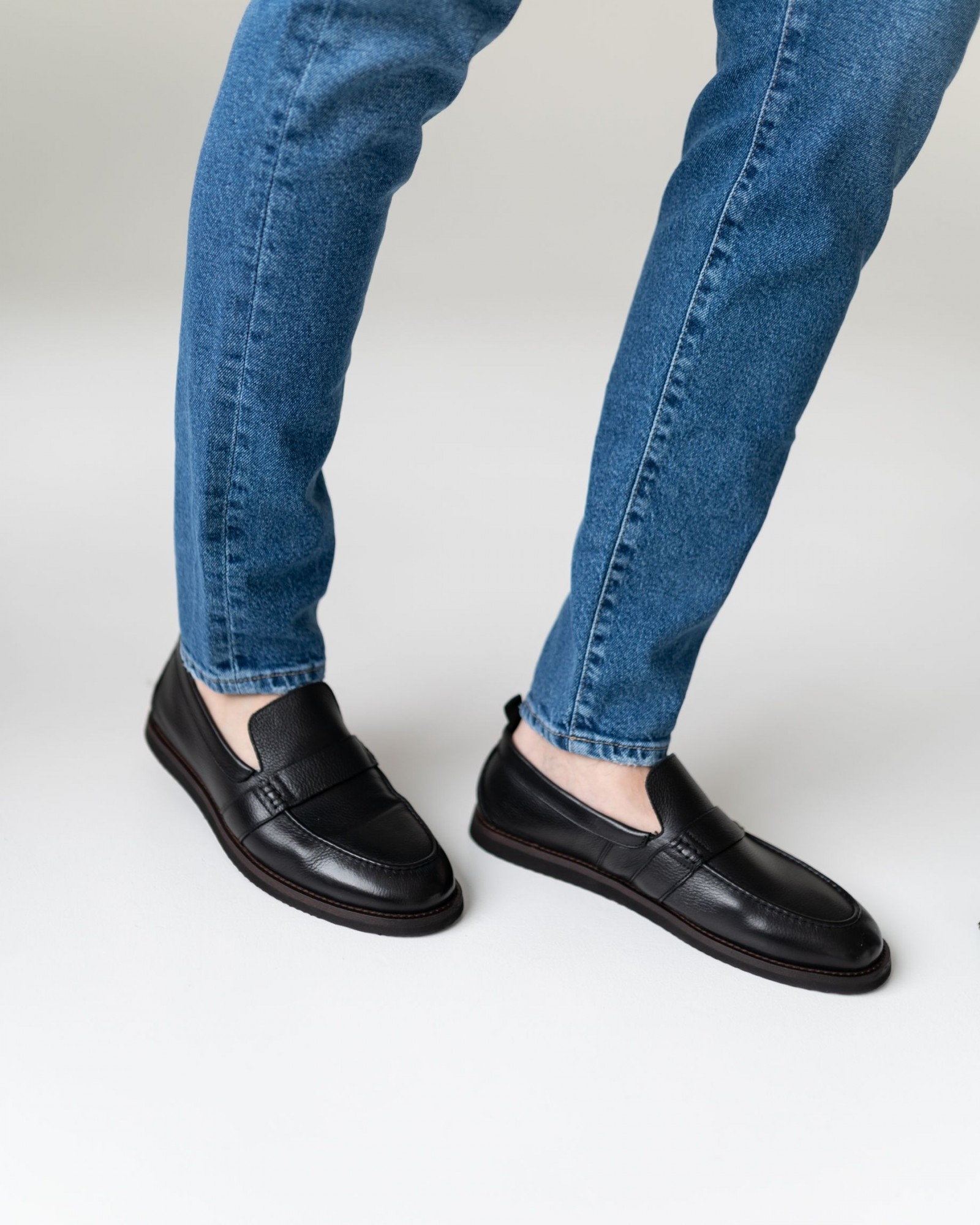 **Чёрные кожаные слипоны – элегантность и комфорт в одном движении**