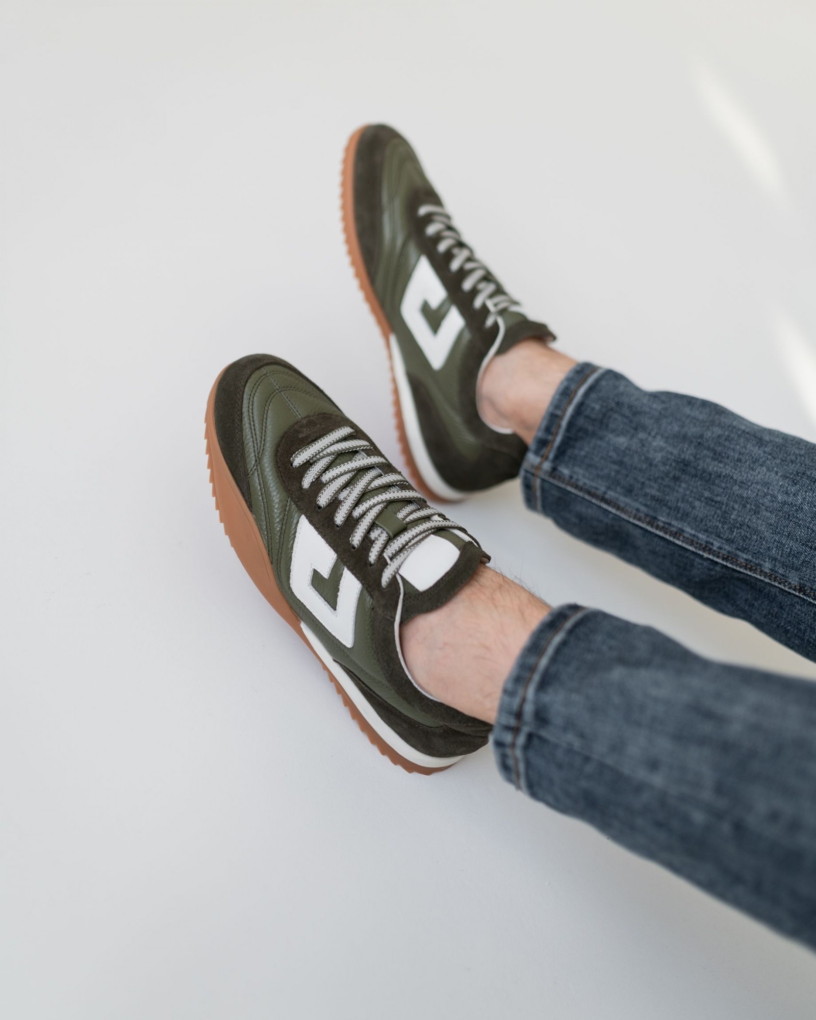 Сникеры оливкового цвета — идеальный выбор для тех, кто ценит сочетание комфорта и стиля. Эти сникеры подарят вам удобство, как в настоящих спортивных кроссовках, обеспечивая легкость и амортизацию при каждом шаге. При этом их сдержанный дизайн позволяет носить их с джинсами, свободными брюками или штанами, создавая гармоничный образ для повседневной носки. Универсальность и комфорт — в каждой детали!