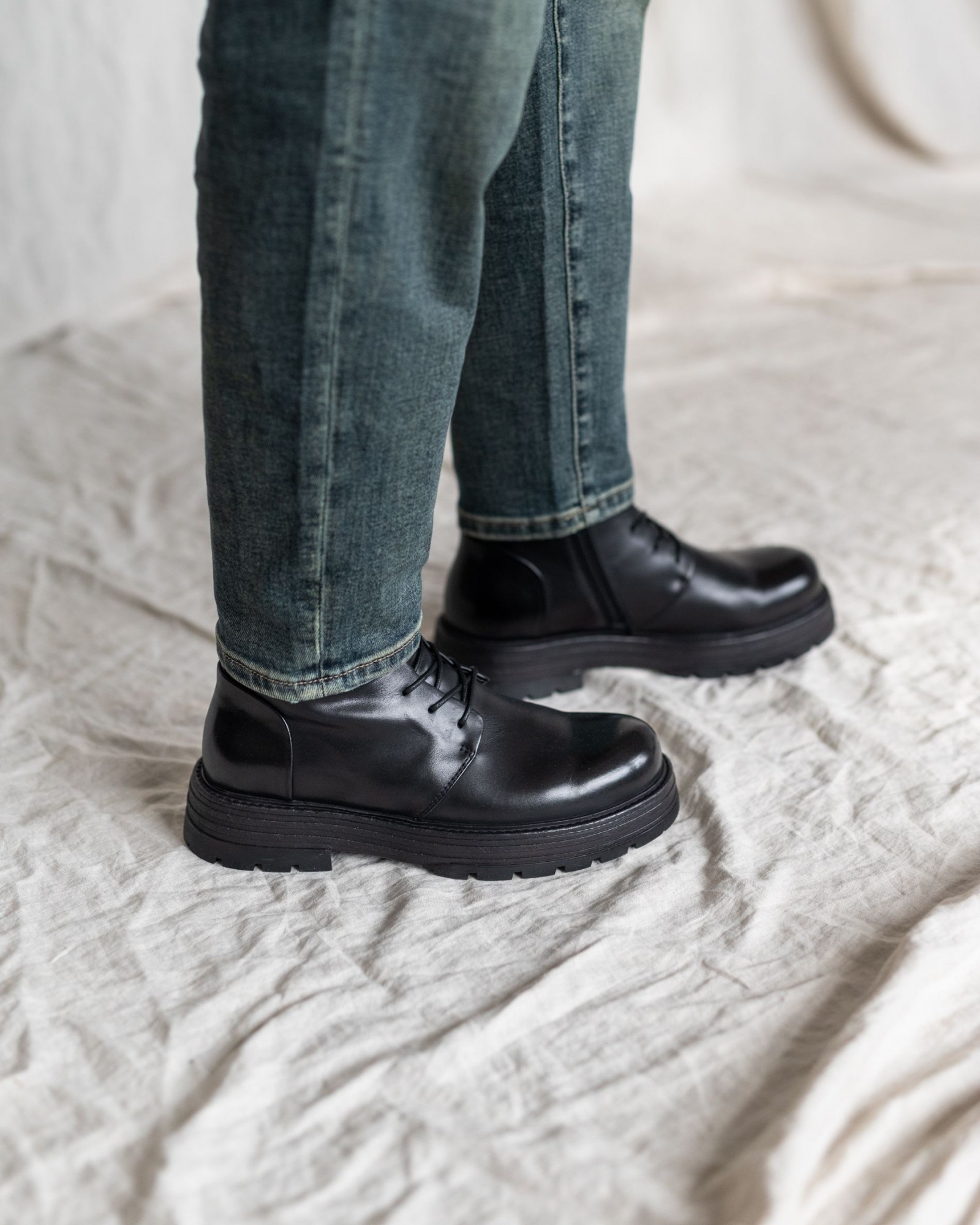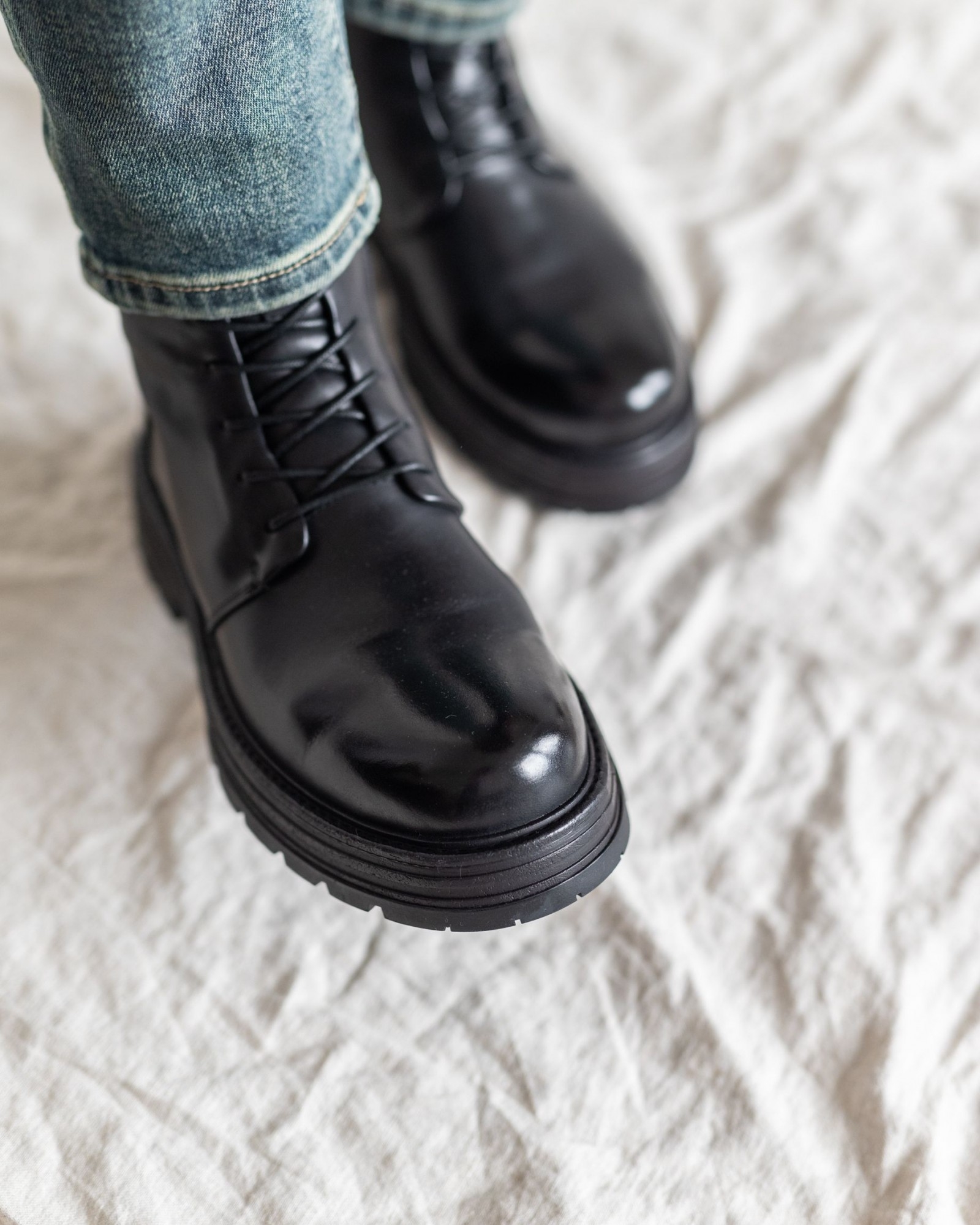 Эти стильные ботинки из глянцевой натуральной кожи — идеальный выбор для зимы. Внутри — натуральный мех, который обеспечивает тепло и комфорт даже в морозы. Удобный замок и шнурки гарантируют лёгкость надевания и плотную фиксацию. Высокий силуэт защищает от снега и холода, а прочная подошва с протектором обеспечивает надёжное сцепление с поверхностью.