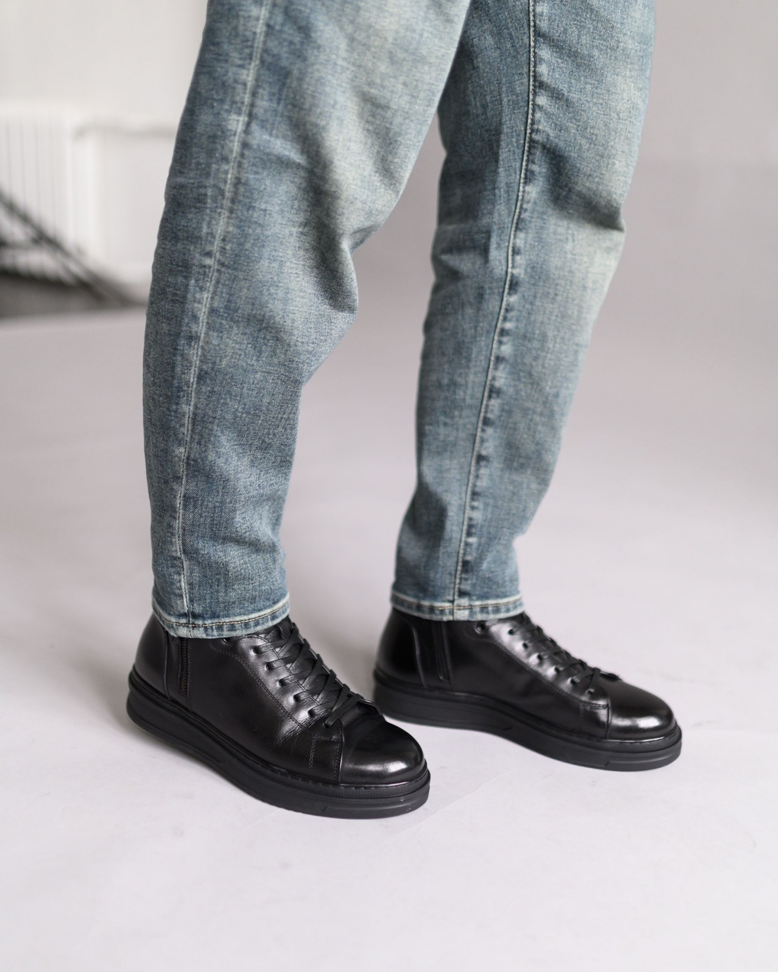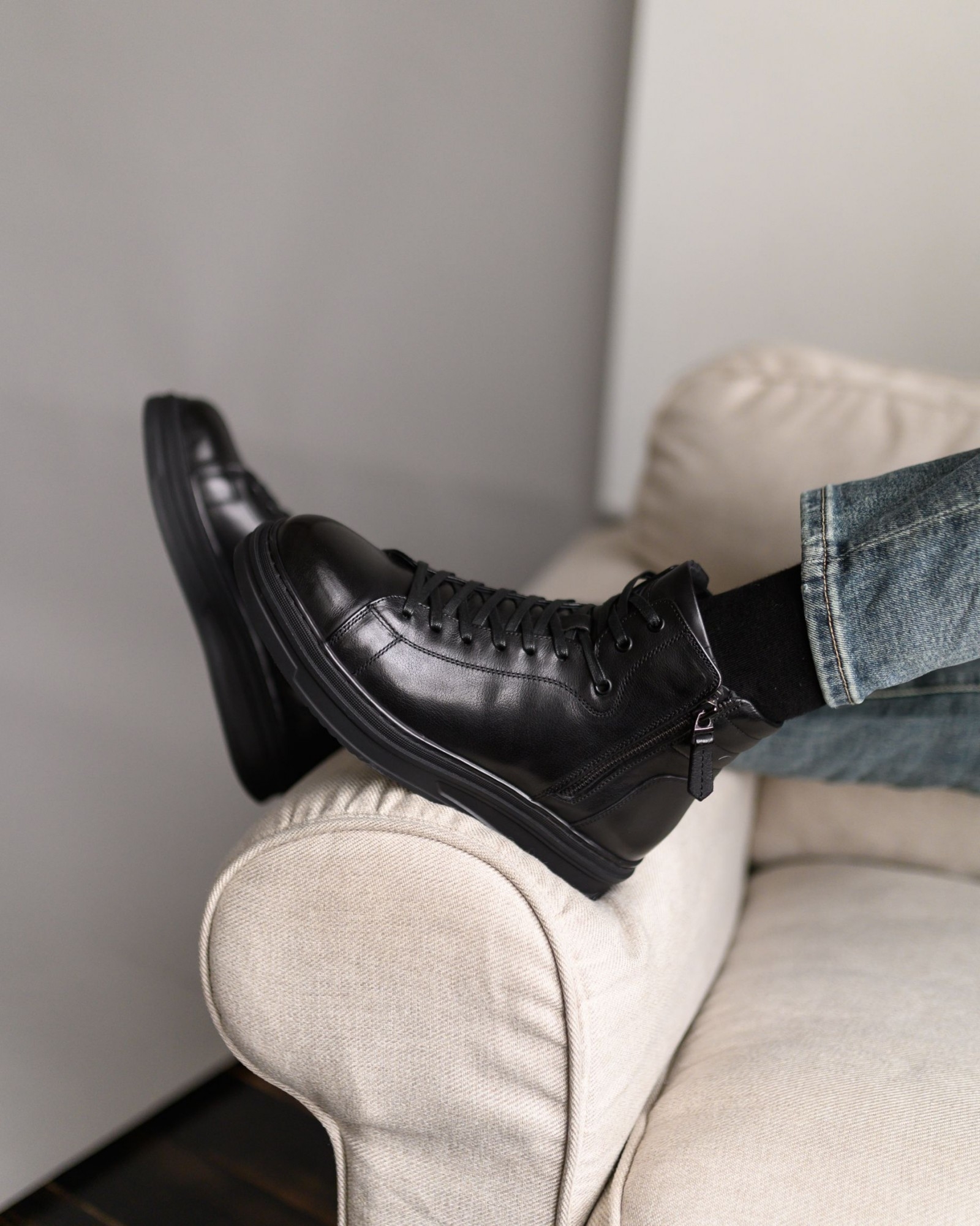 Полуботинки с двумя удобными замками — практичный выбор для тех, кто ценит сочетание стиля и функциональности. Верх выполнен из плотной кожи с лёгким благородным блеском, подчёркивающим элегантность и долговечность модели. Уверенная и устойчивая подошва обеспечивает надёжное сцепление с поверхностью и подходит для длительных прогулок в прохладное время года. Внутренняя подкладка из мягкой овчины создаёт уютное тепло и комфорт при каждом шаге, делая эти полуботинки идеальным выбором для межсезонья.