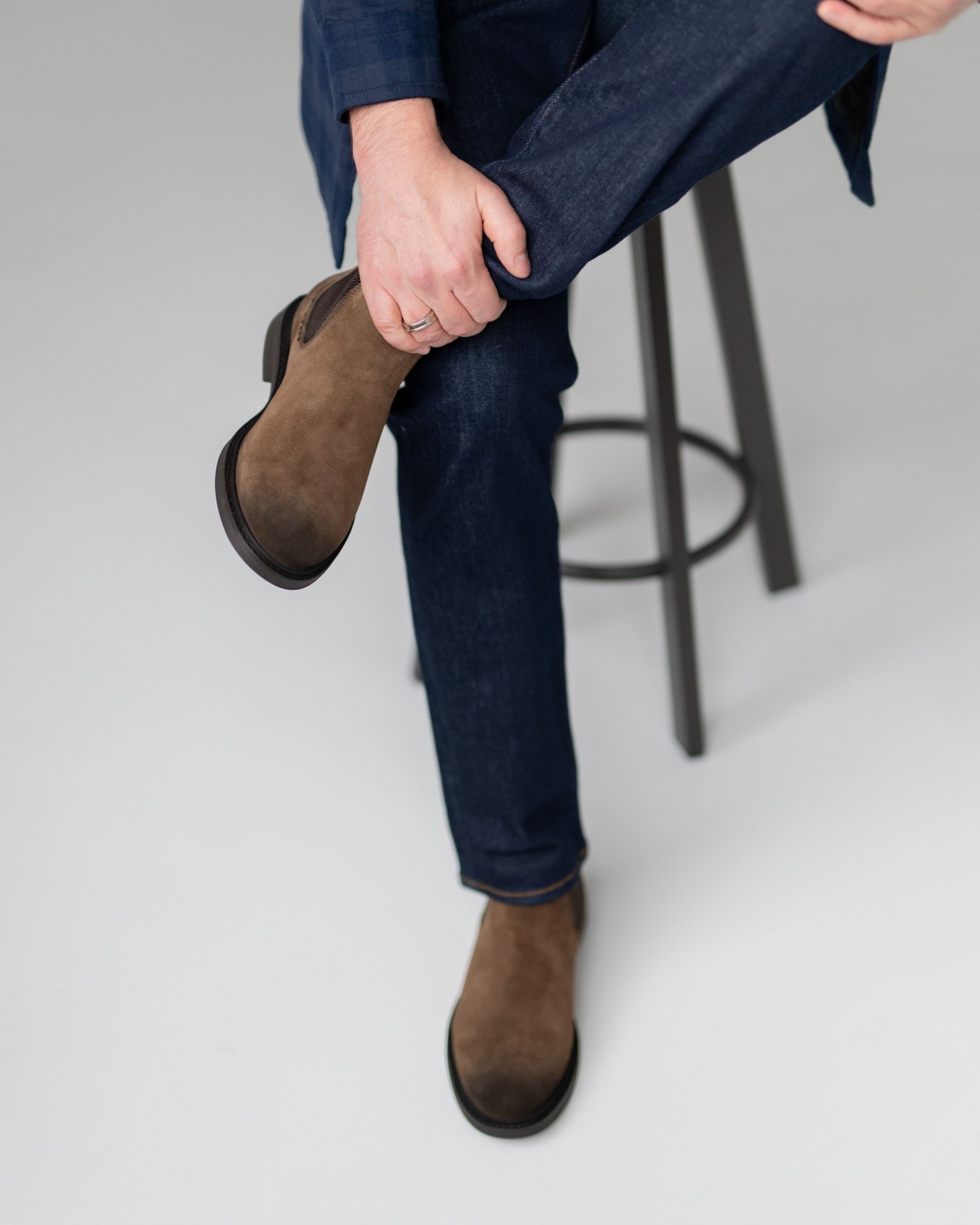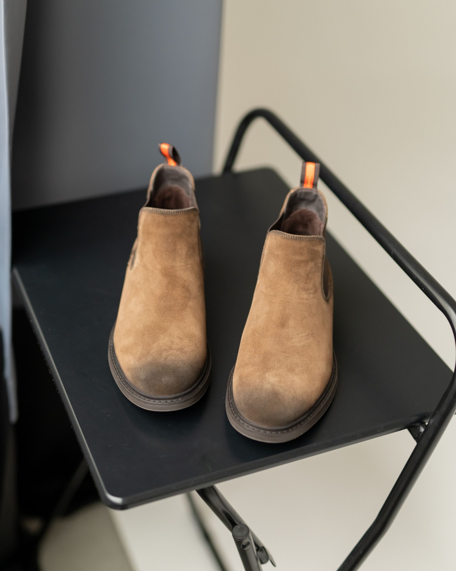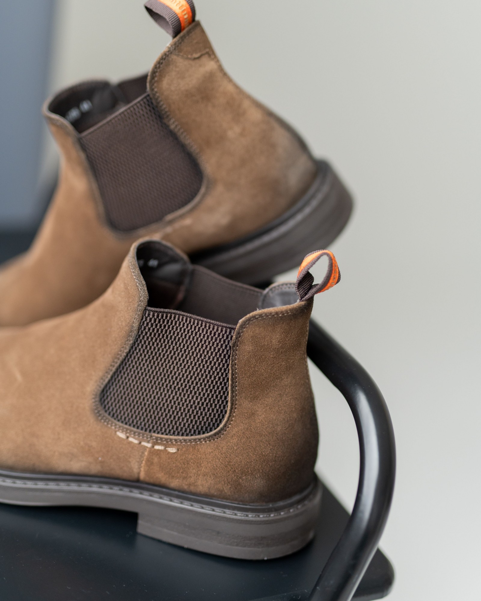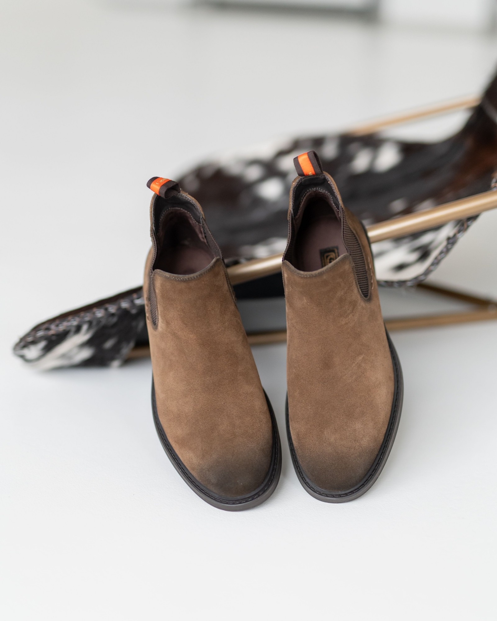 Эти укороченные челси из мягкой рыжей замши — безупречный пример классики в её современном исполнении. Тонированный в тёмно-коричневый носок создаёт аккуратный градиент и придаёт паре благородный, собранный вид. Эластичные вставки и подошва выполнены в том же тёмном оттенке, что делает силуэт цельным и элегантным. Невысокий профиль подчёркивает лёгкость модели и её универсальность — такие челси одинаково хорошо смотрятся с джинсами, брюками и пальто. Приходите на примерку: мягкость замши и комфортная посадка убедят лучше любых слов.