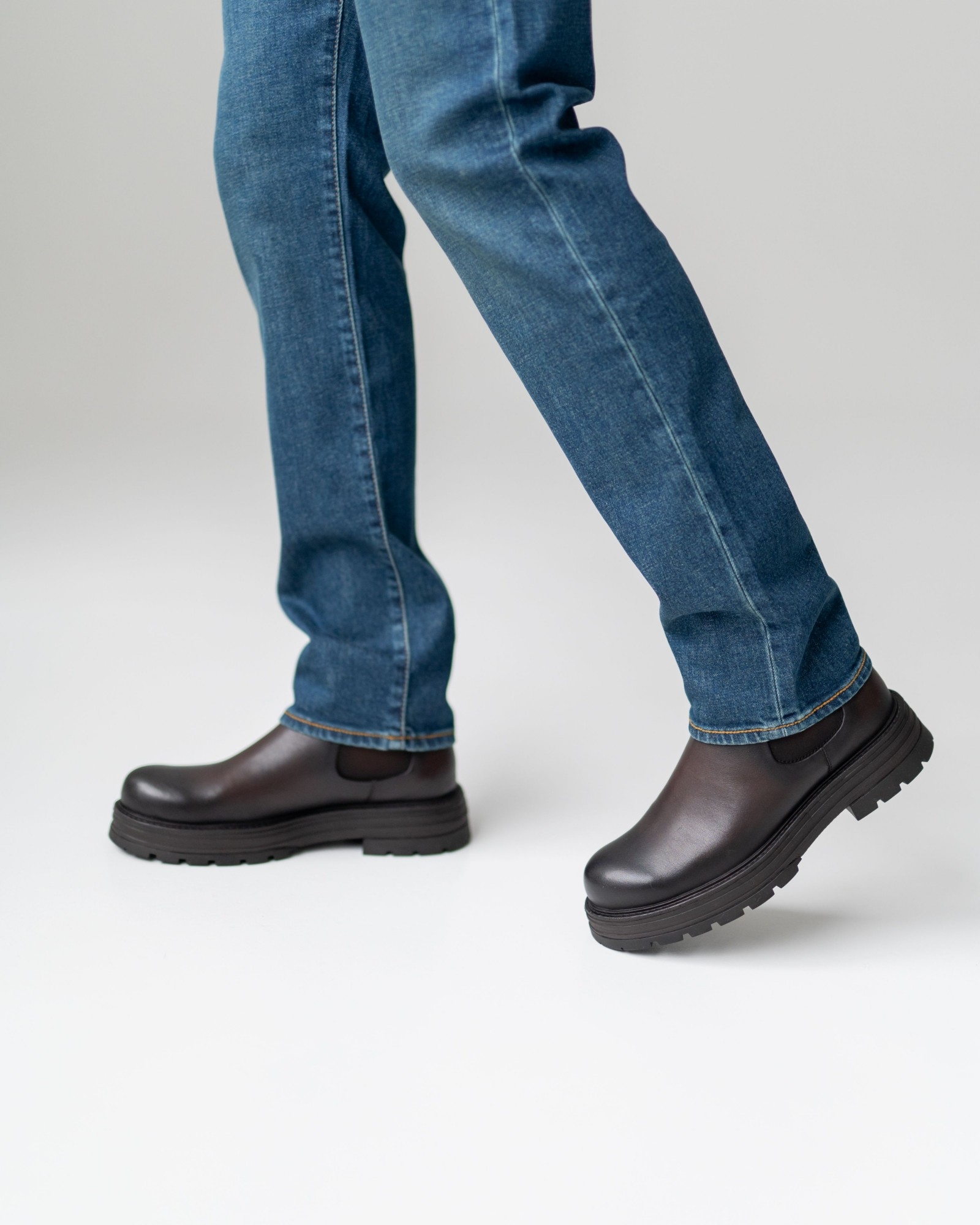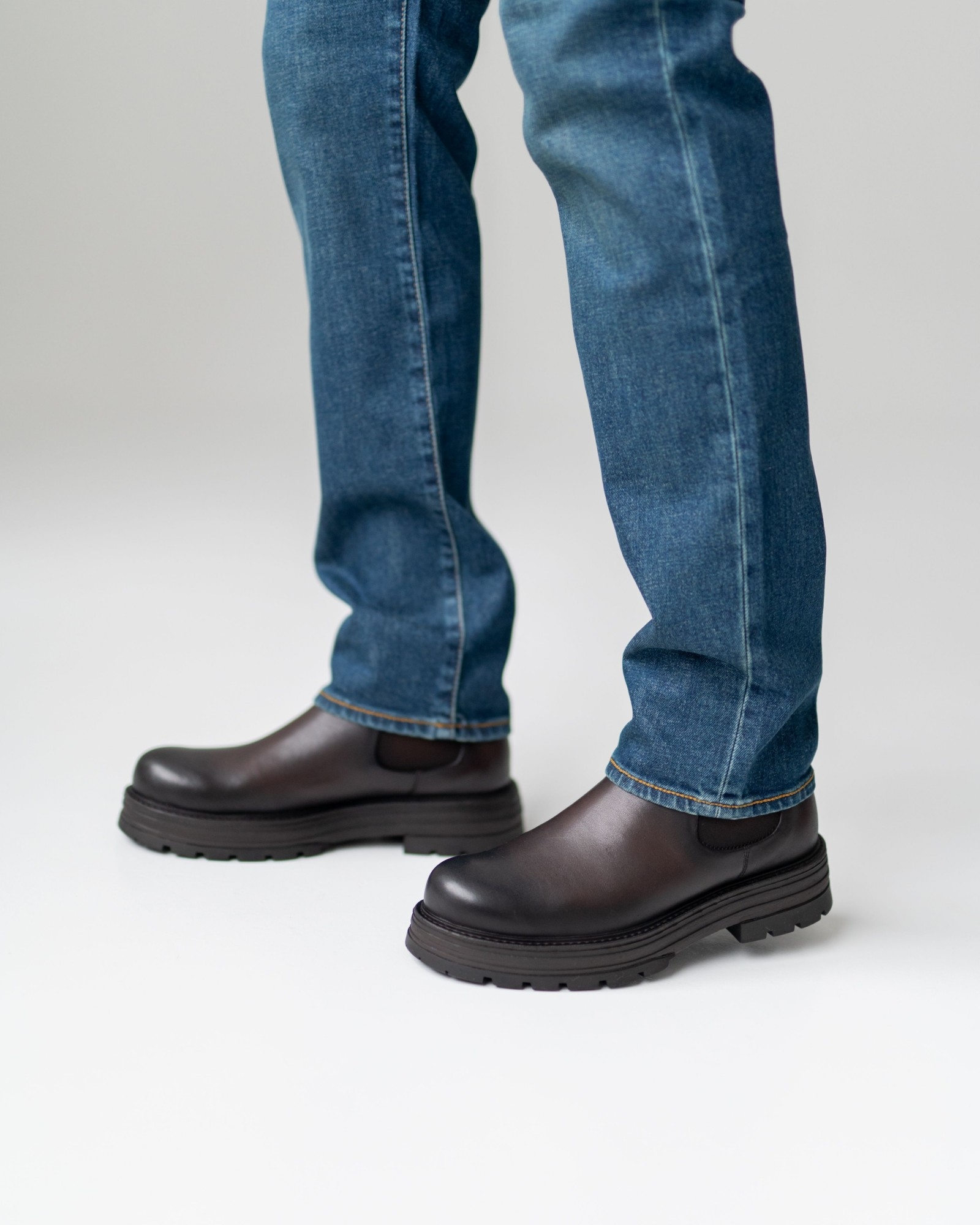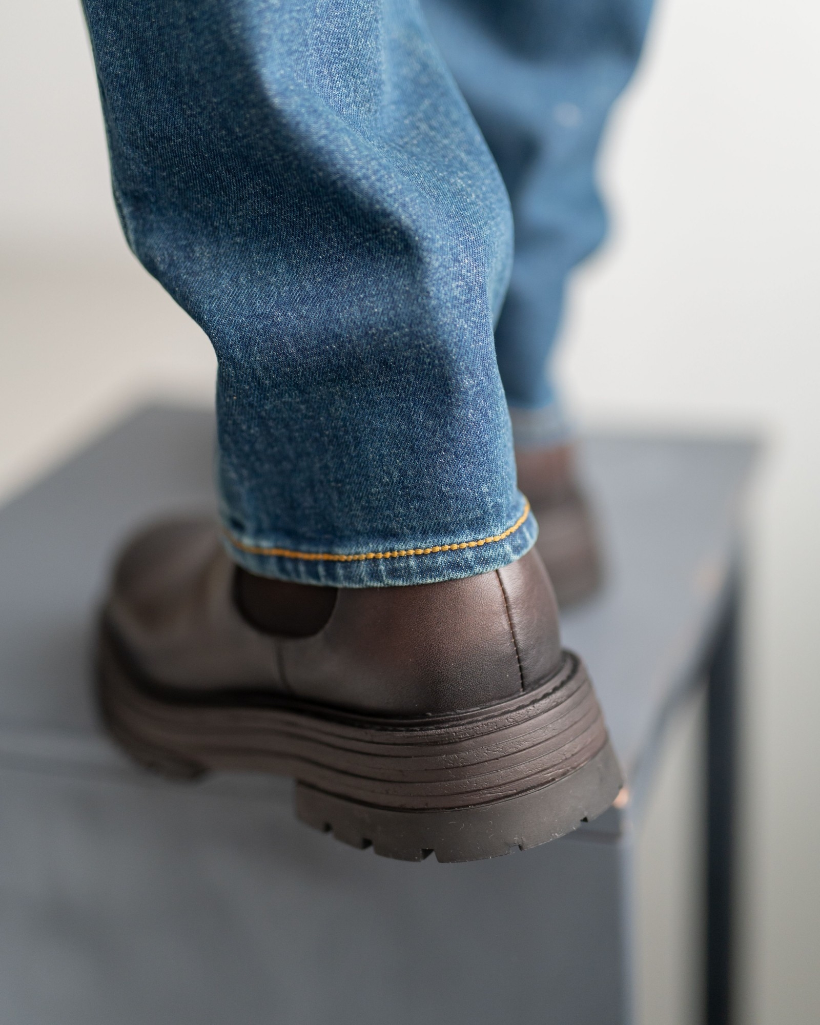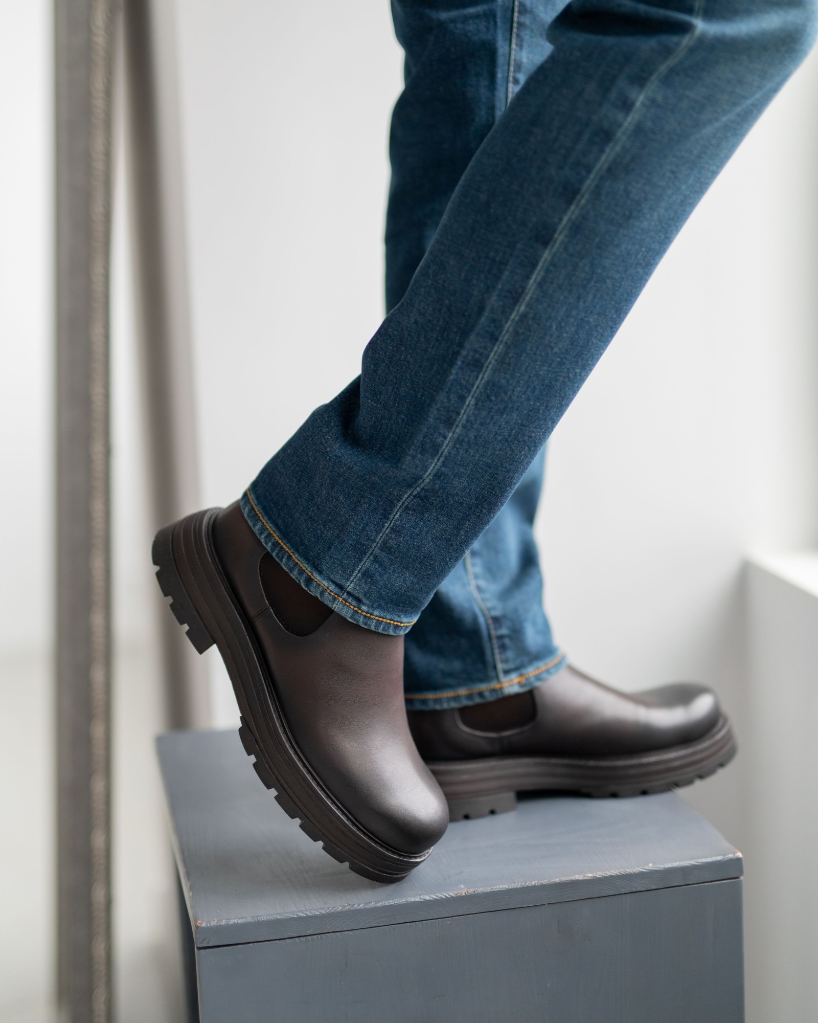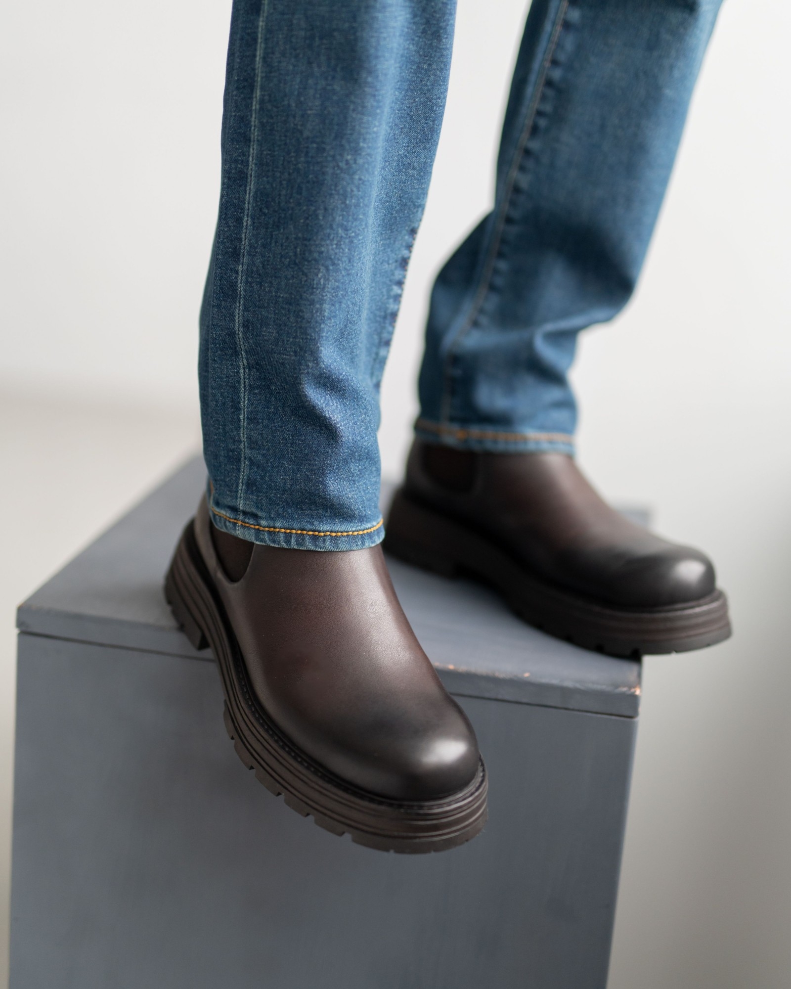 Эта модель — молодёжная интерпретация классических челси, в которой элегантность сочетается с выразительным характером. Грубая подошва и нарочито вздёрнутый носок создают динамичный силуэт, идеально подходящий под современное пальто и актуальные городские образы. Форма сохраняет узнаваемую чистоту линий, но выглядит смелее и современнее, чем классические варианты. Мягкий верх и эластичные вставки делают процесс надевания и снятия по-настоящему мгновенным — удобство, которое сложно переоценить. Приходите на примерку: почувствуете разницу в стиле и комфорте с первого шага.