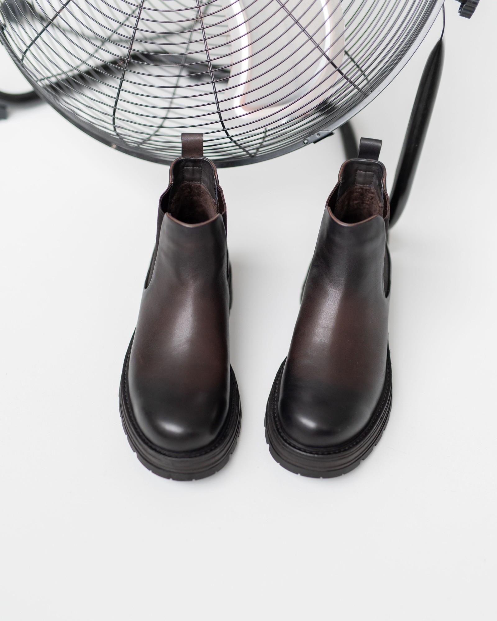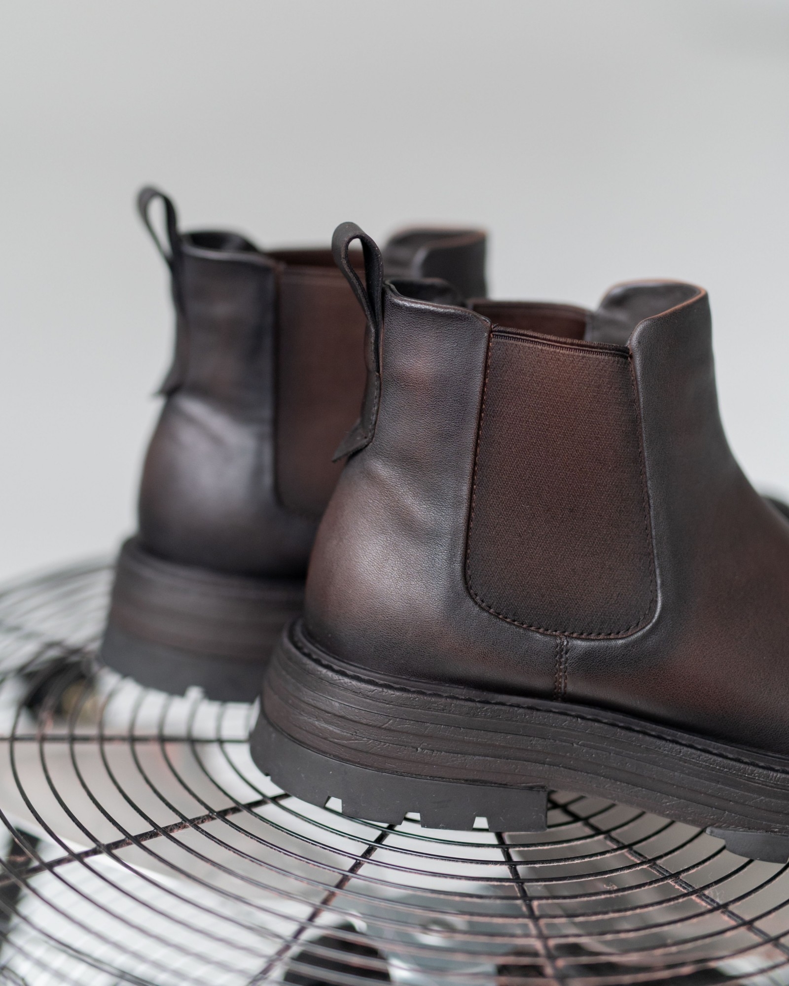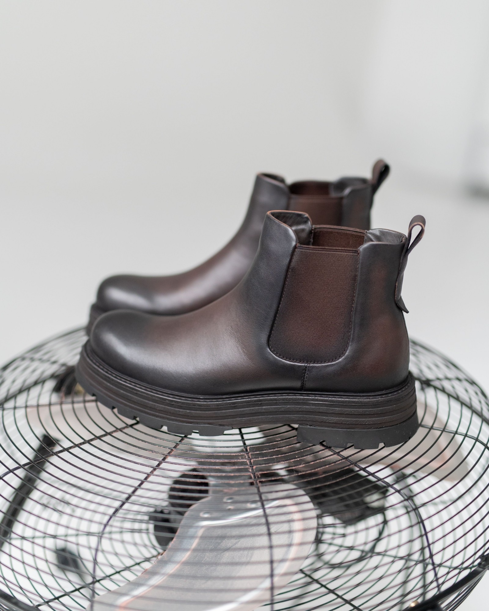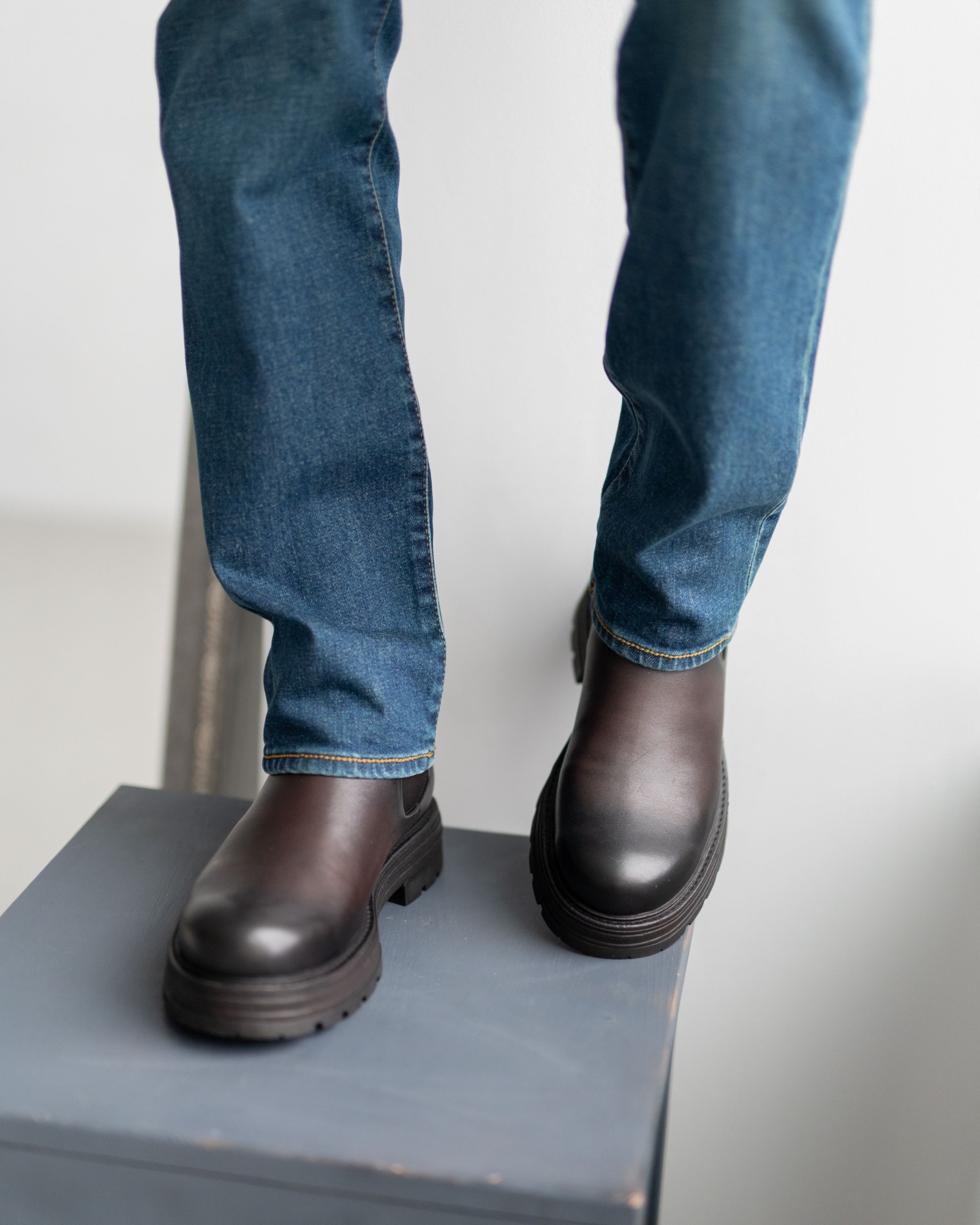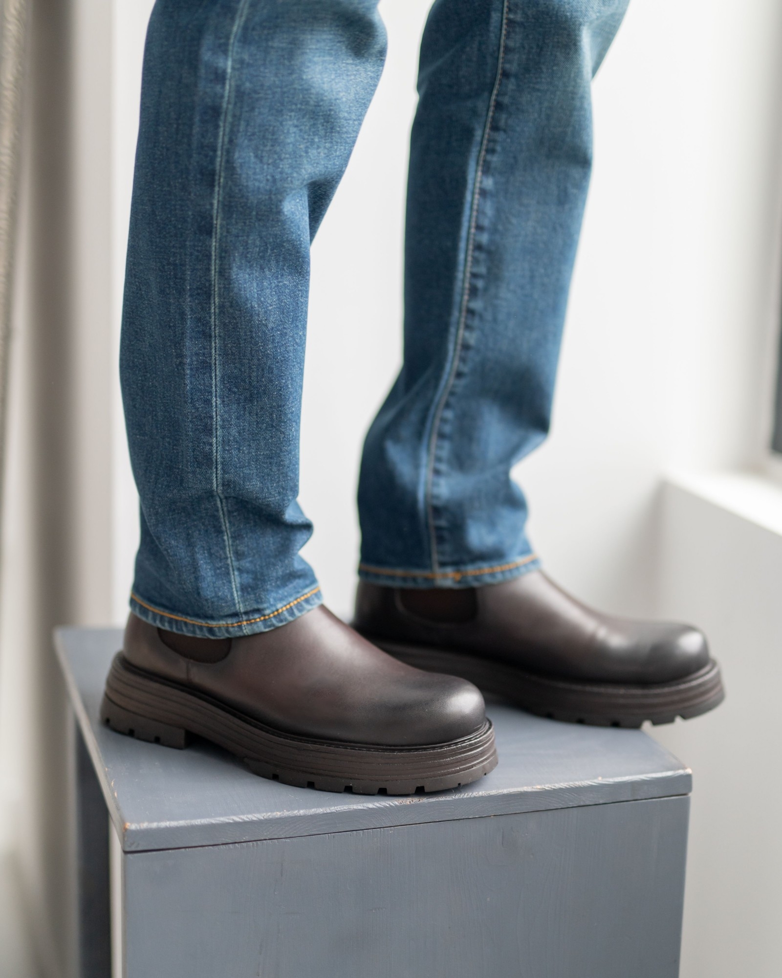 Эта модель — молодёжная интерпретация классических челси, в которой элегантность сочетается с выразительным характером. Грубая подошва и нарочито вздёрнутый носок создают динамичный силуэт, идеально подходящий под современное пальто и актуальные городские образы. Форма сохраняет узнаваемую чистоту линий, но выглядит смелее и современнее, чем классические варианты. Мягкий верх и эластичные вставки делают процесс надевания и снятия по-настоящему мгновенным — удобство, которое сложно переоценить. Приходите на примерку: почувствуете разницу в стиле и комфорте с первого шага.