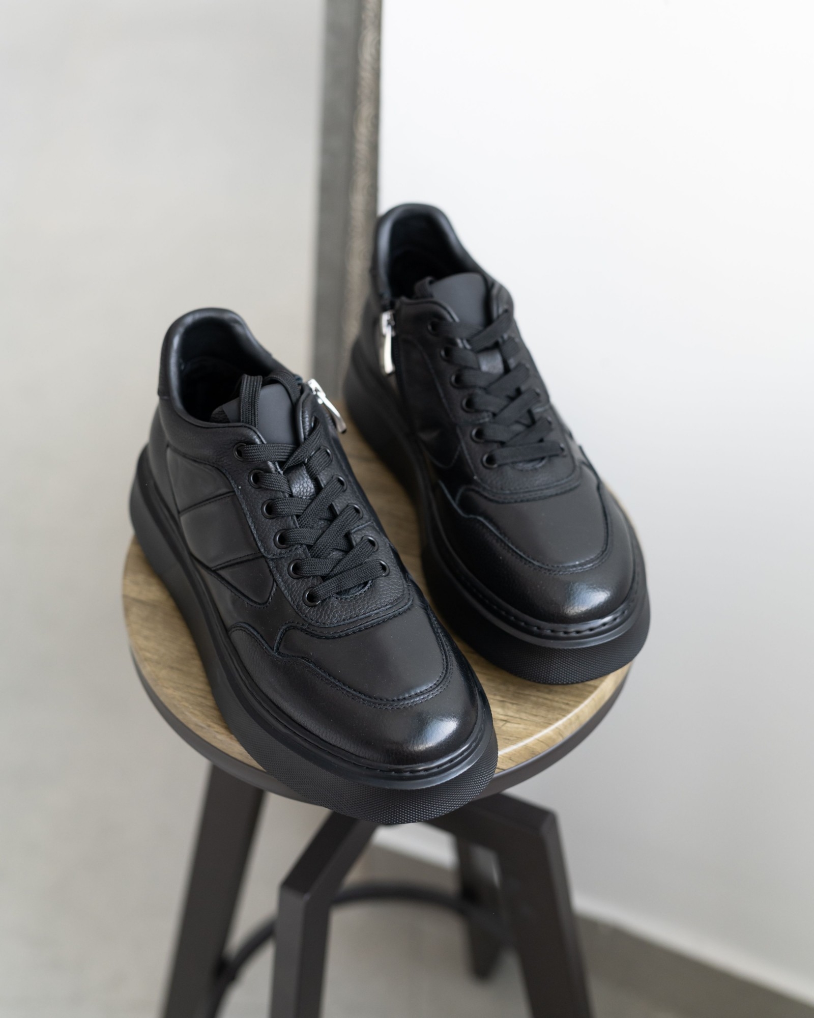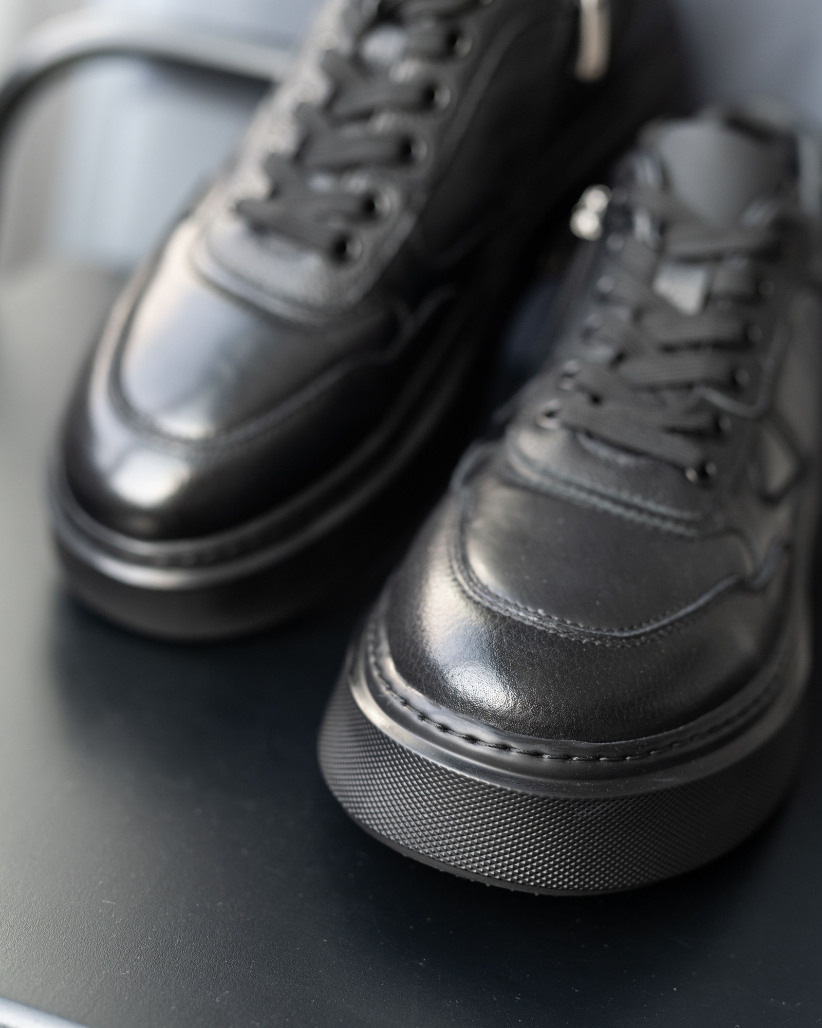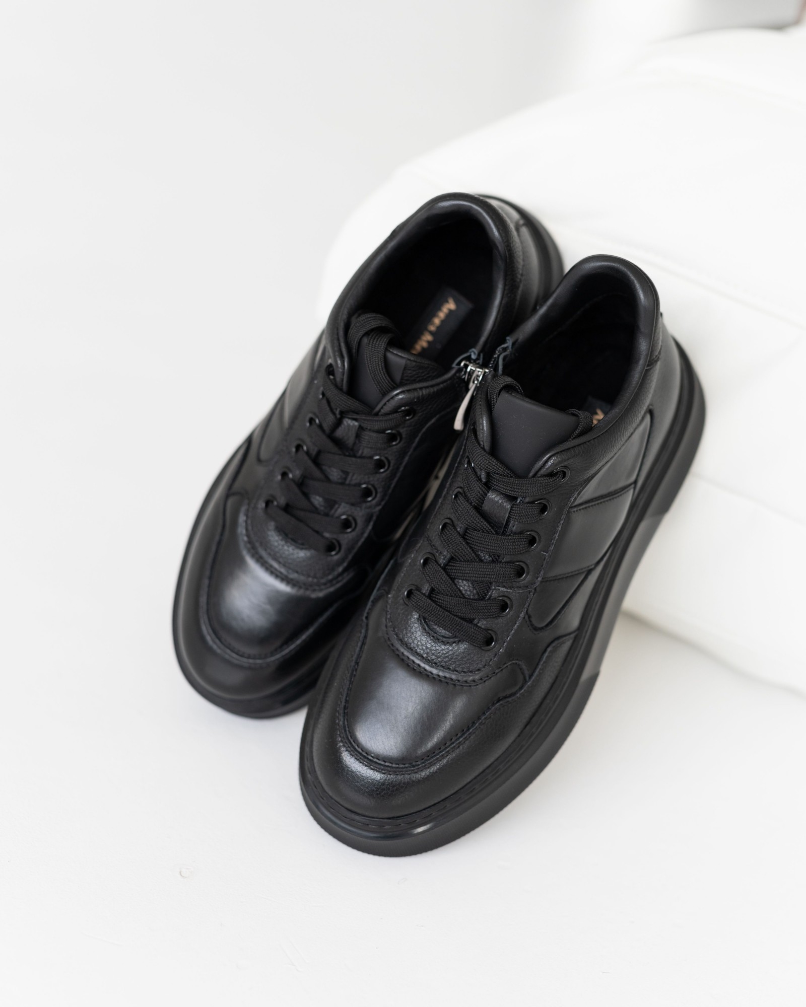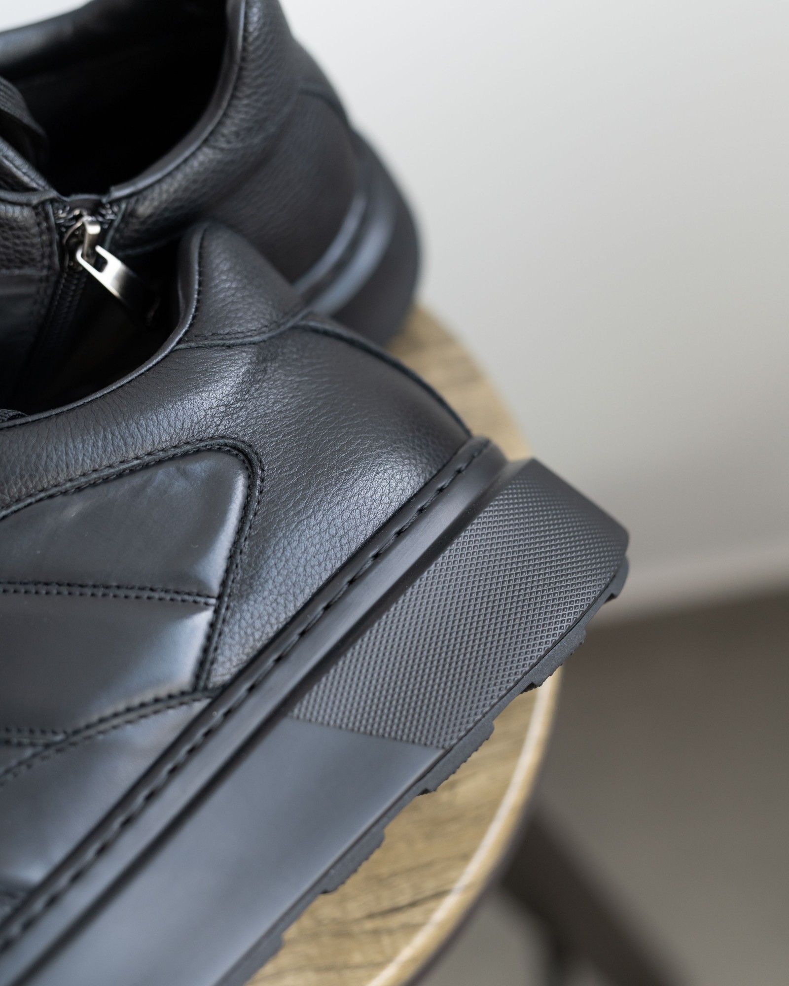 **Утеплённые чёрные кеды с прошитой подошвой**