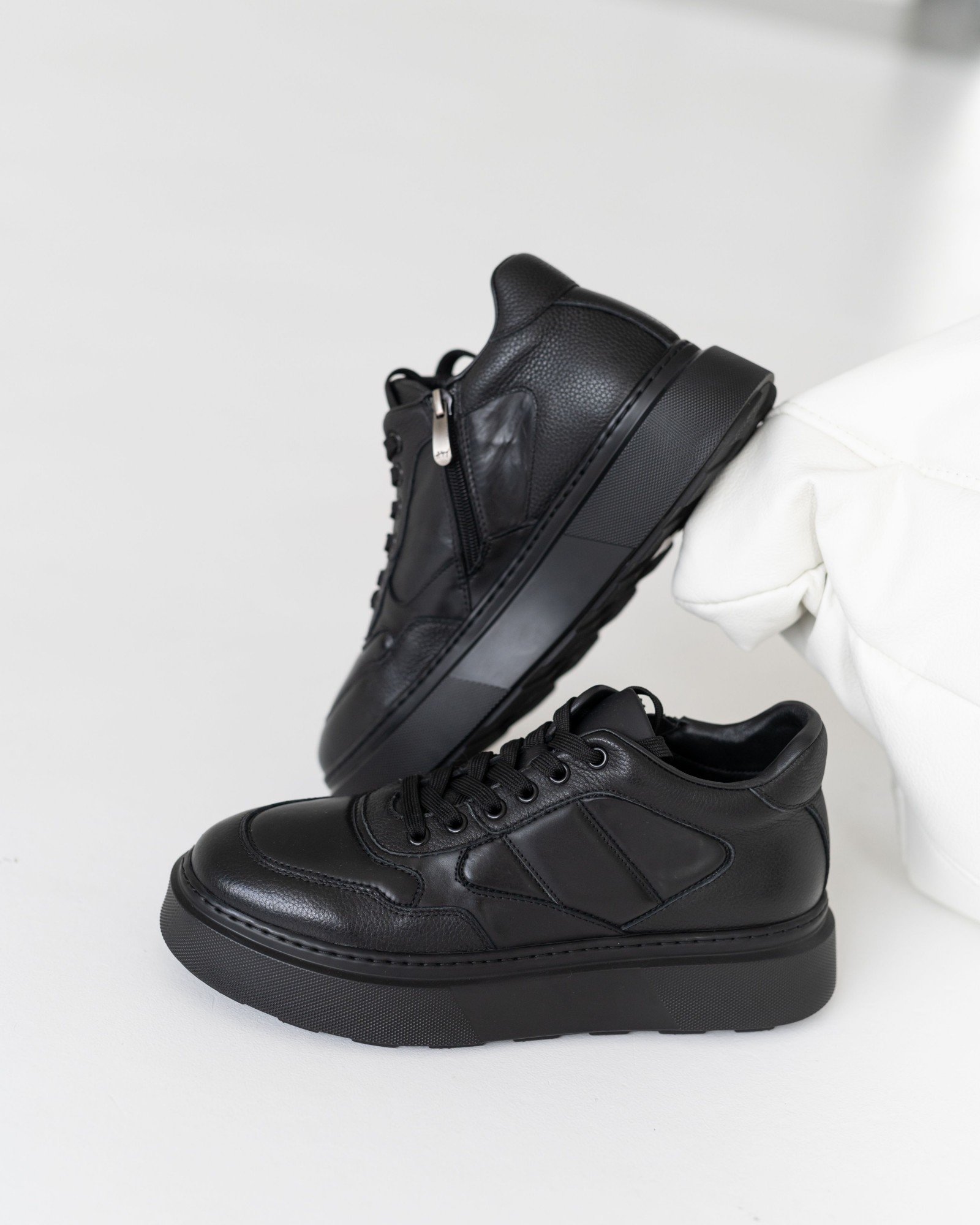 Эта модель разработана для прохладного периода, сочетая современный силуэт и надёжные материалы. Кеды имеют среднюю высоту и слегка «раздутую» форму за счёт утеплённой внутренней отделки. Толстая лёгкая подошва с лёгким блеском прошита по периметру, что повышает прочность и добавляет аккуратный акцент. Декоративные швы формируют динамичный внешний вид и подчёркивают casual-направленность модели.