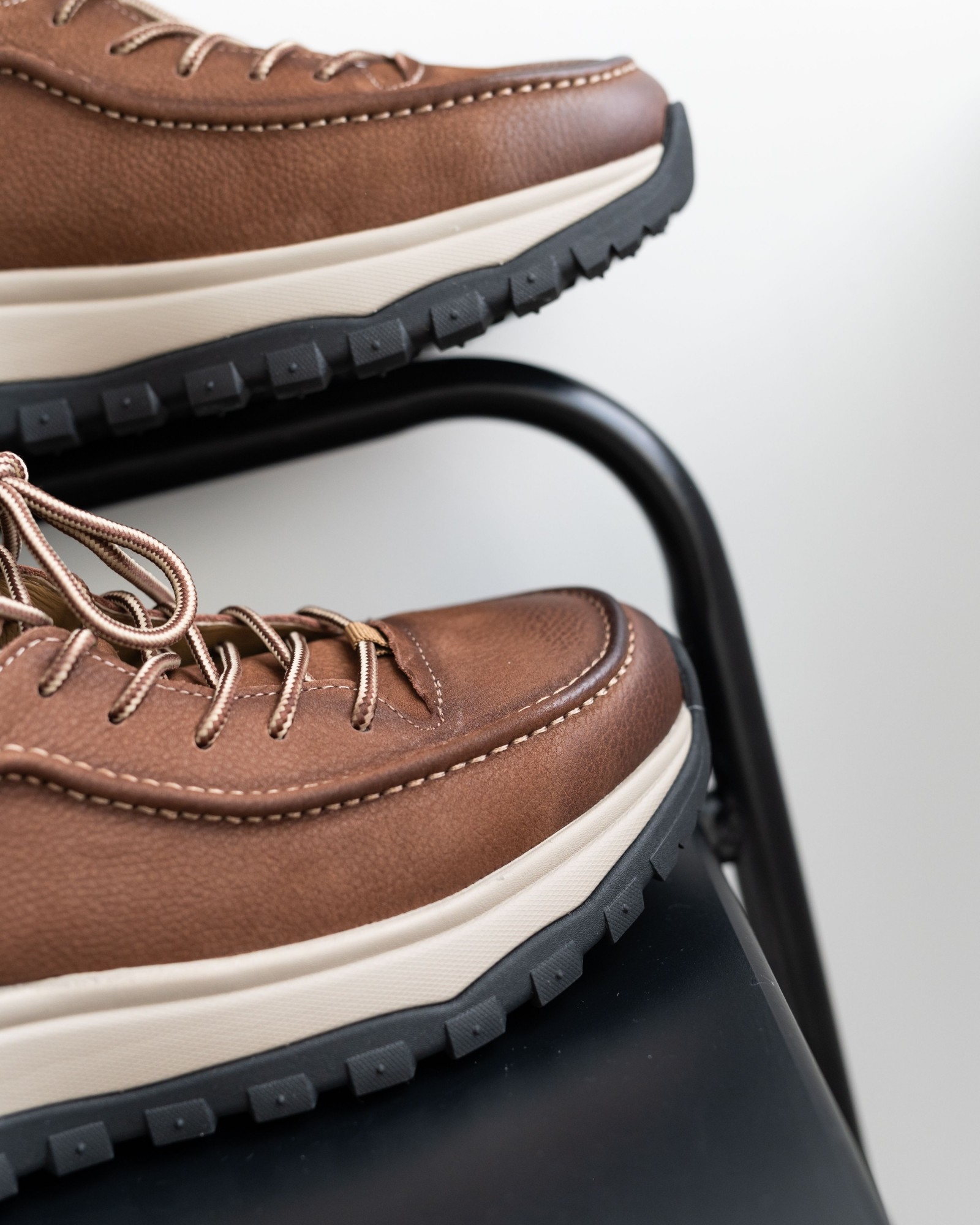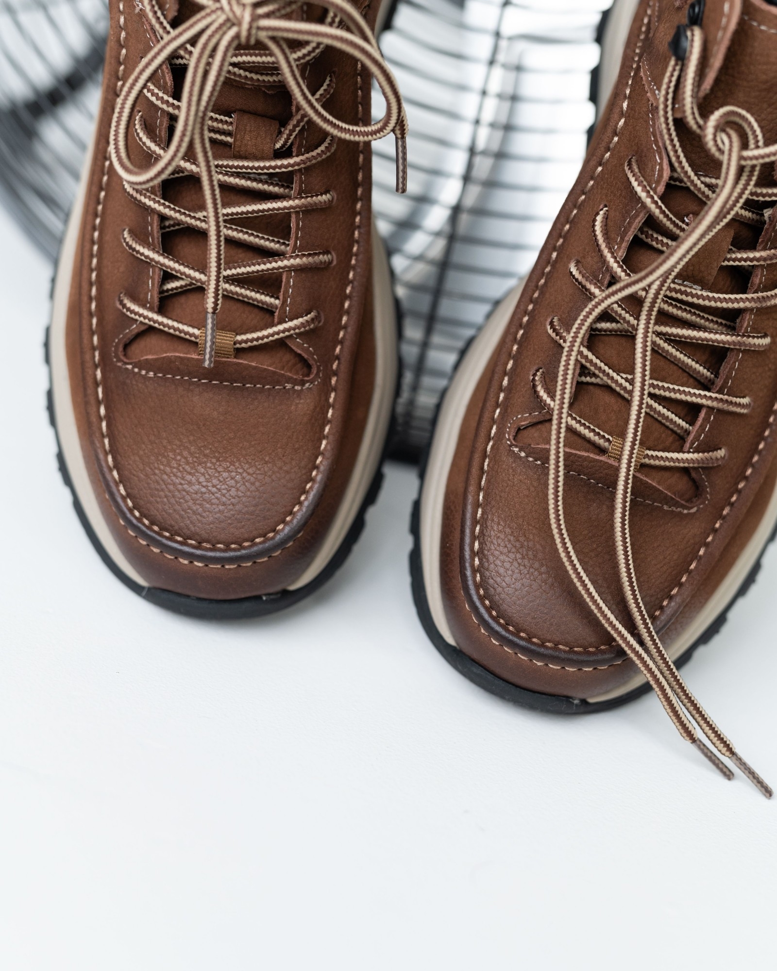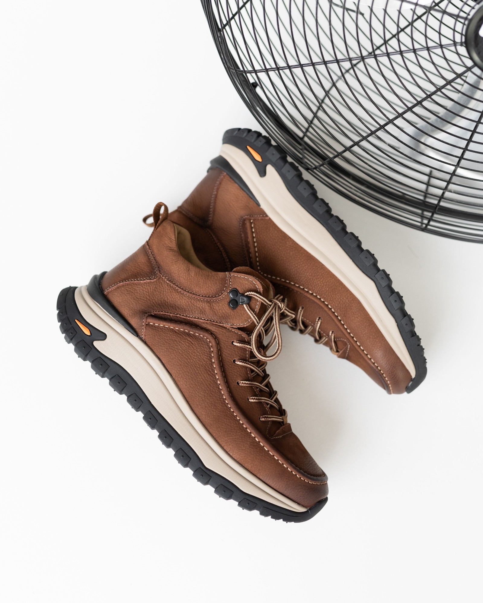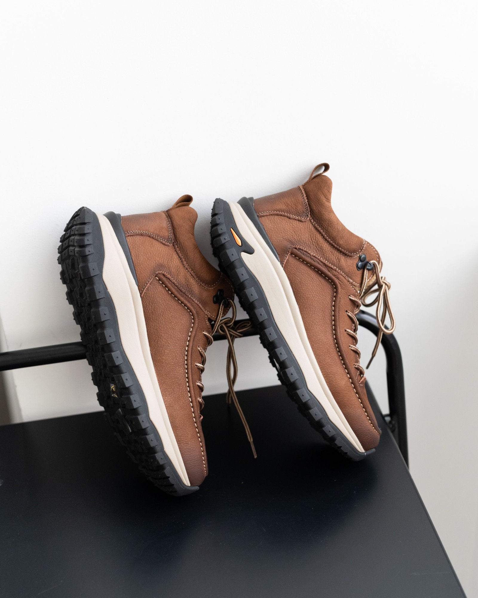 Модель, вдохновлённая хайкинговой обувью, но адаптированная для повседневного ритма города. Натуральная кожа рыжего оттенка делает пару выразительной, а продуманная конструкция обеспечивает комфорт на каждый день. Шнуровка надёжно фиксирует стопу, сохраняя динамичный и современный силуэт.