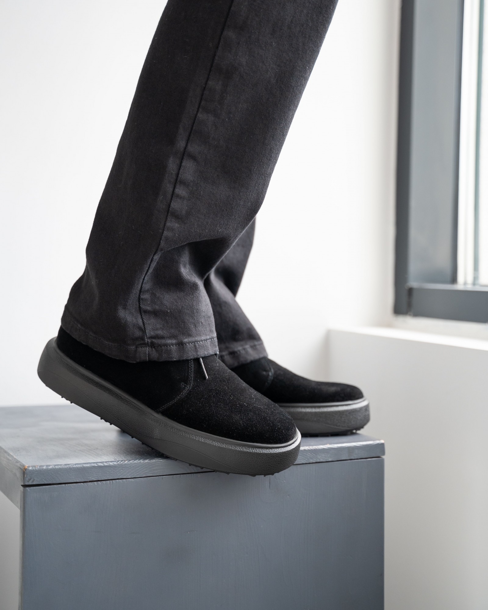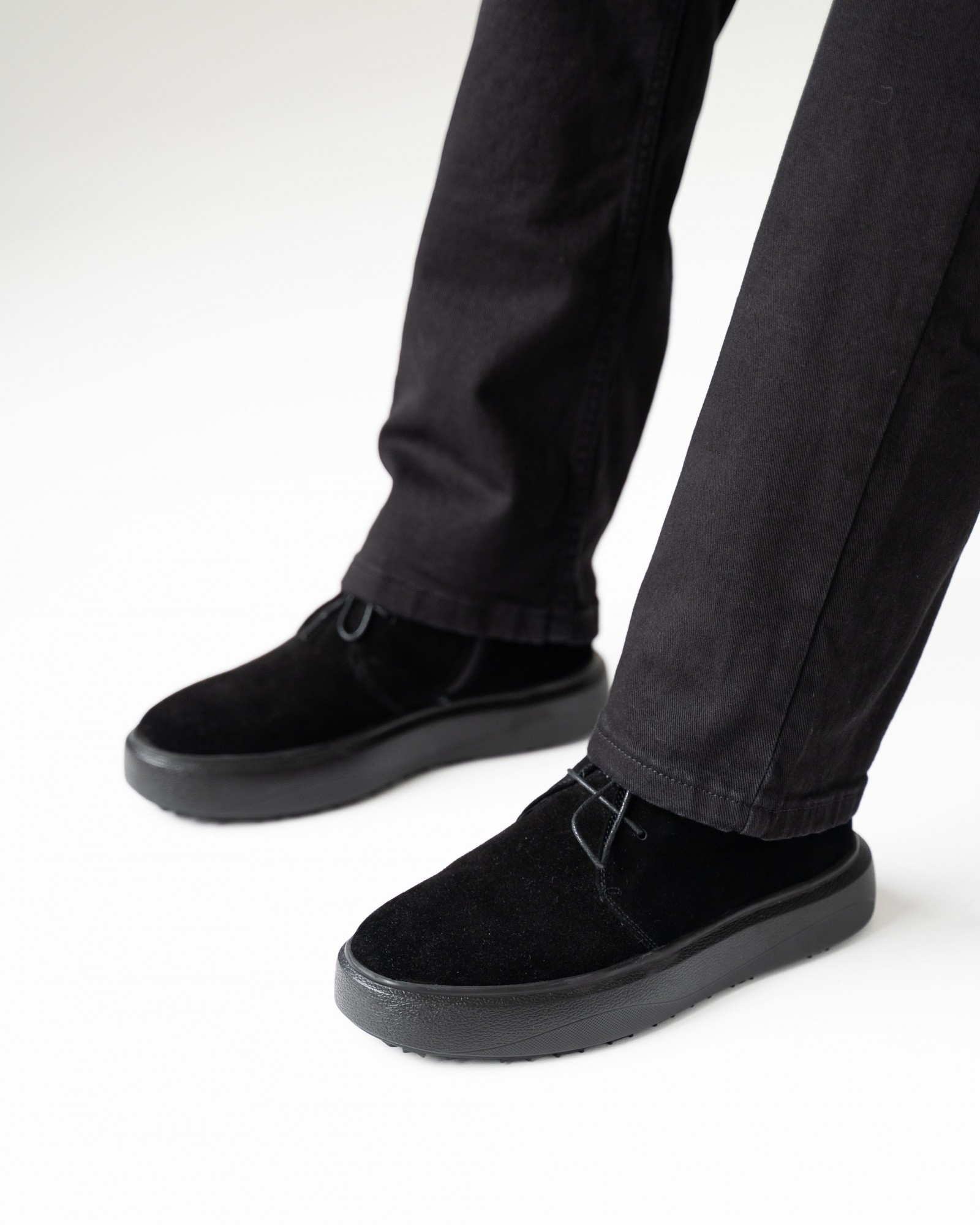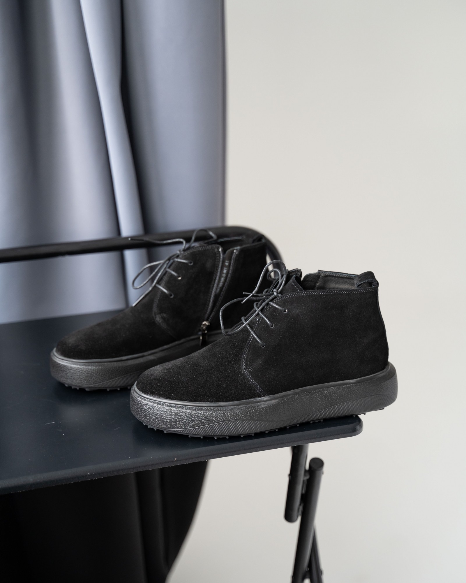Эта пара привлекает внимание сдержанностью и продуманной простотой. Верх из мягкой замши с минимальным количеством швов и отделки подчёркивает лаконичный силуэт. Лёгкая подошва обеспечивает удобство и амортизацию при ходьбе, а подкладка из байки сохраняет тепло и комфорт не только осенью, но и в морозные дни.
