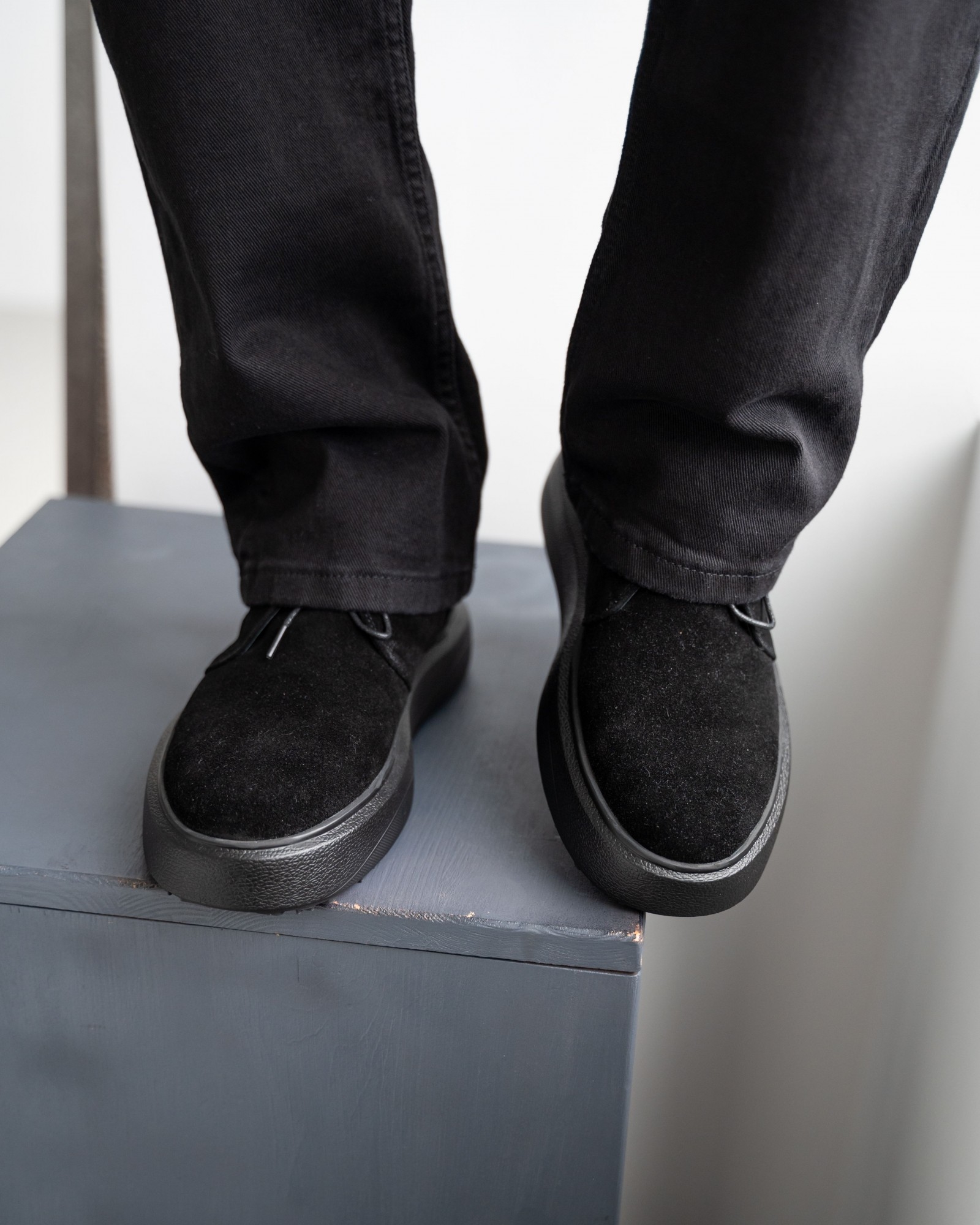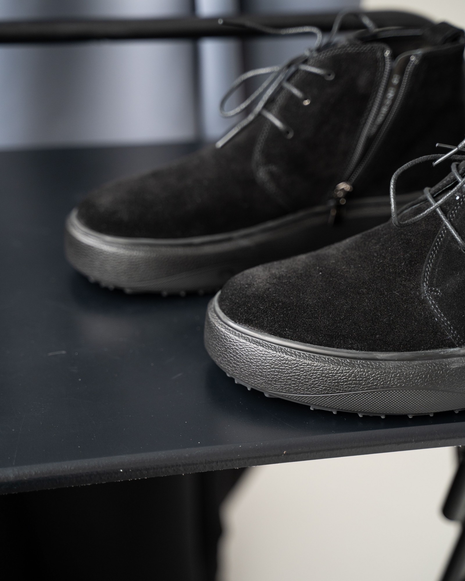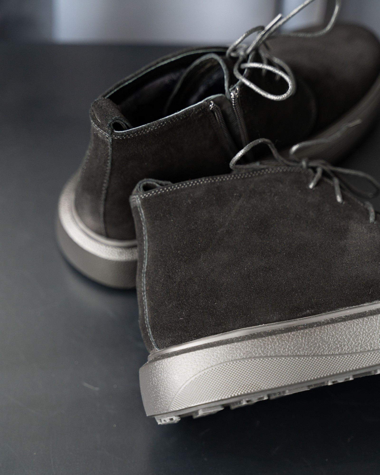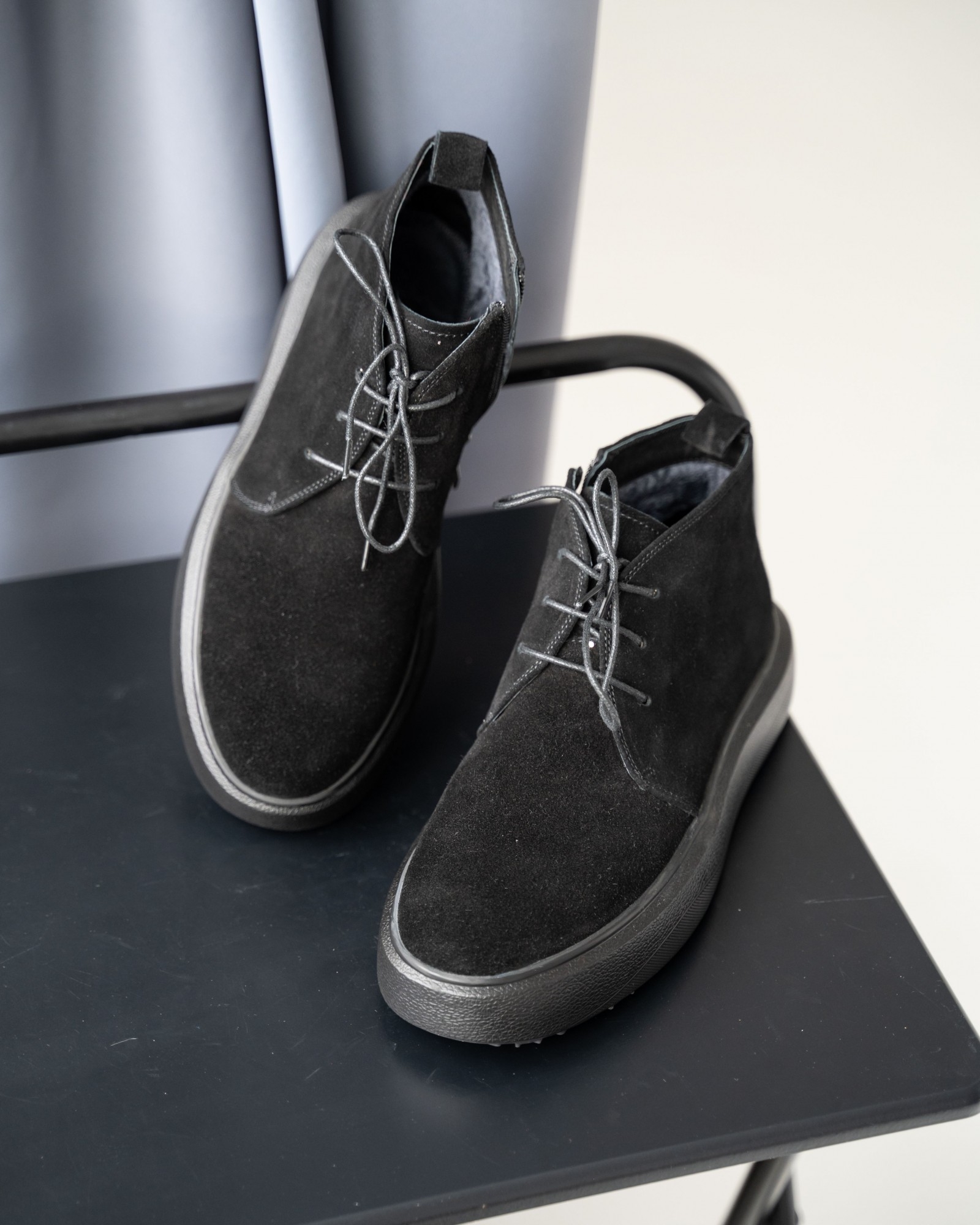 Эта пара привлекает внимание сдержанностью и продуманной простотой. Верх из мягкой замши с минимальным количеством швов и отделки подчёркивает лаконичный силуэт. Лёгкая подошва обеспечивает удобство и амортизацию при ходьбе, а подкладка из байки сохраняет тепло и комфорт не только осенью, но и в морозные дни.