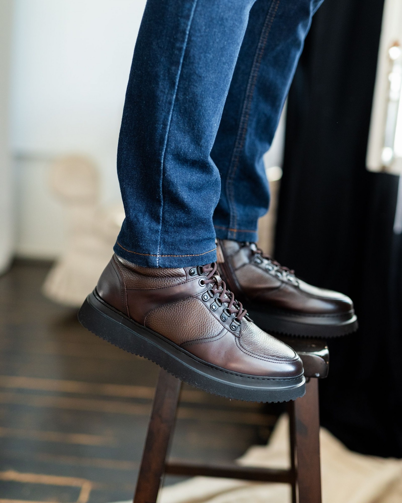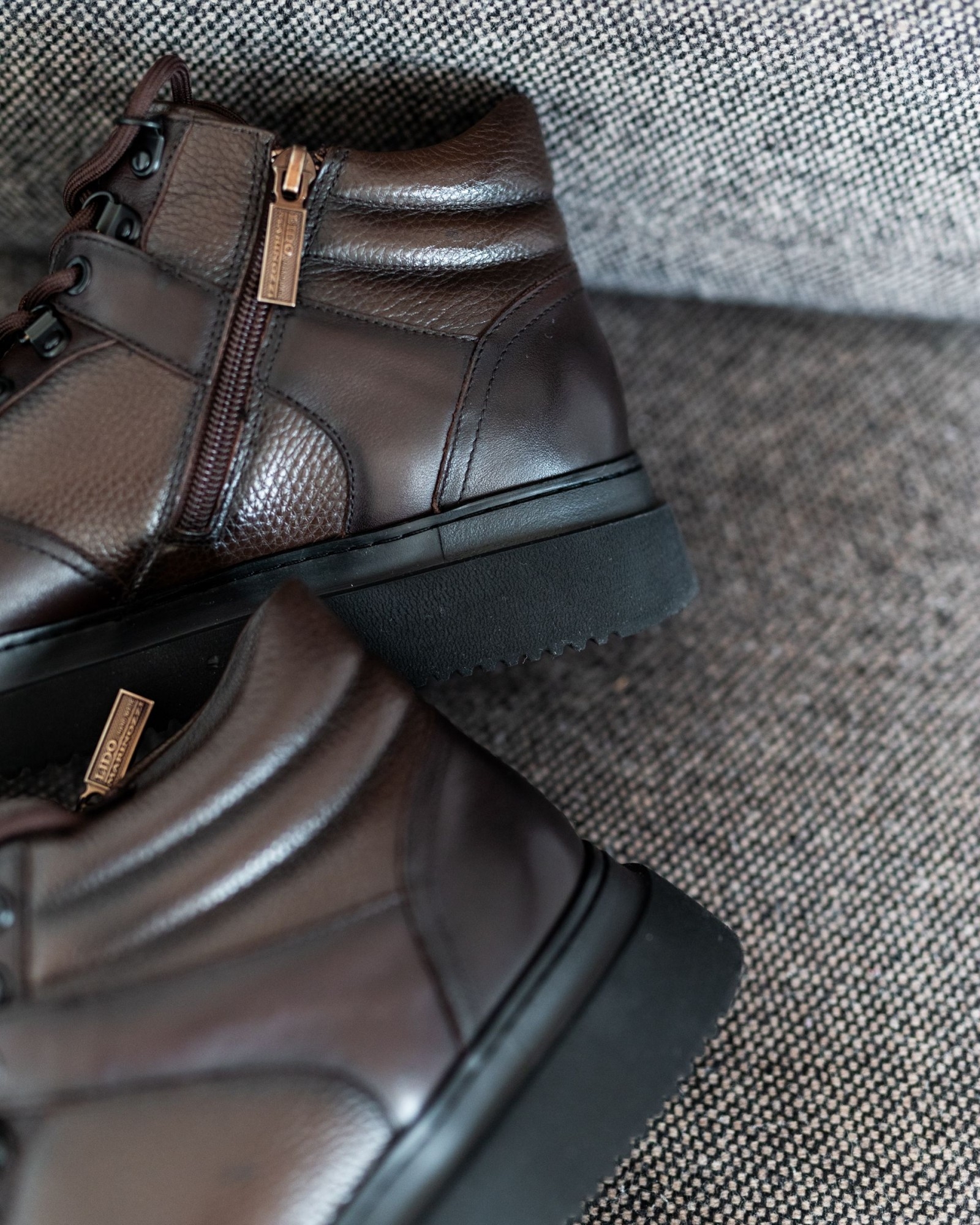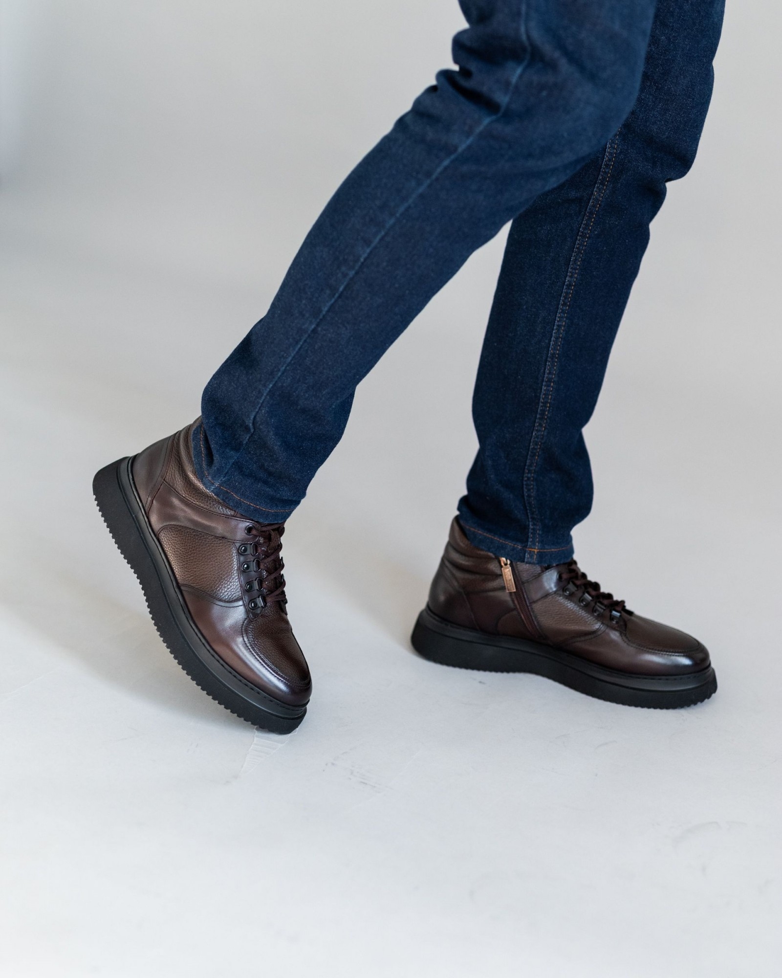 Внутренняя подкладка из байки создаёт тёплый и уютный микроклимат, делая эту модель отличным вариантом для демисезона. Обувь подчеркивает сдержанную элегантность, оставаясь при этом достаточно спортивной, чтобы идеально вписаться в повседневный гардероб. Это не кроссовки, но и не строгие туфли — баланс между стилем и функциональностью.