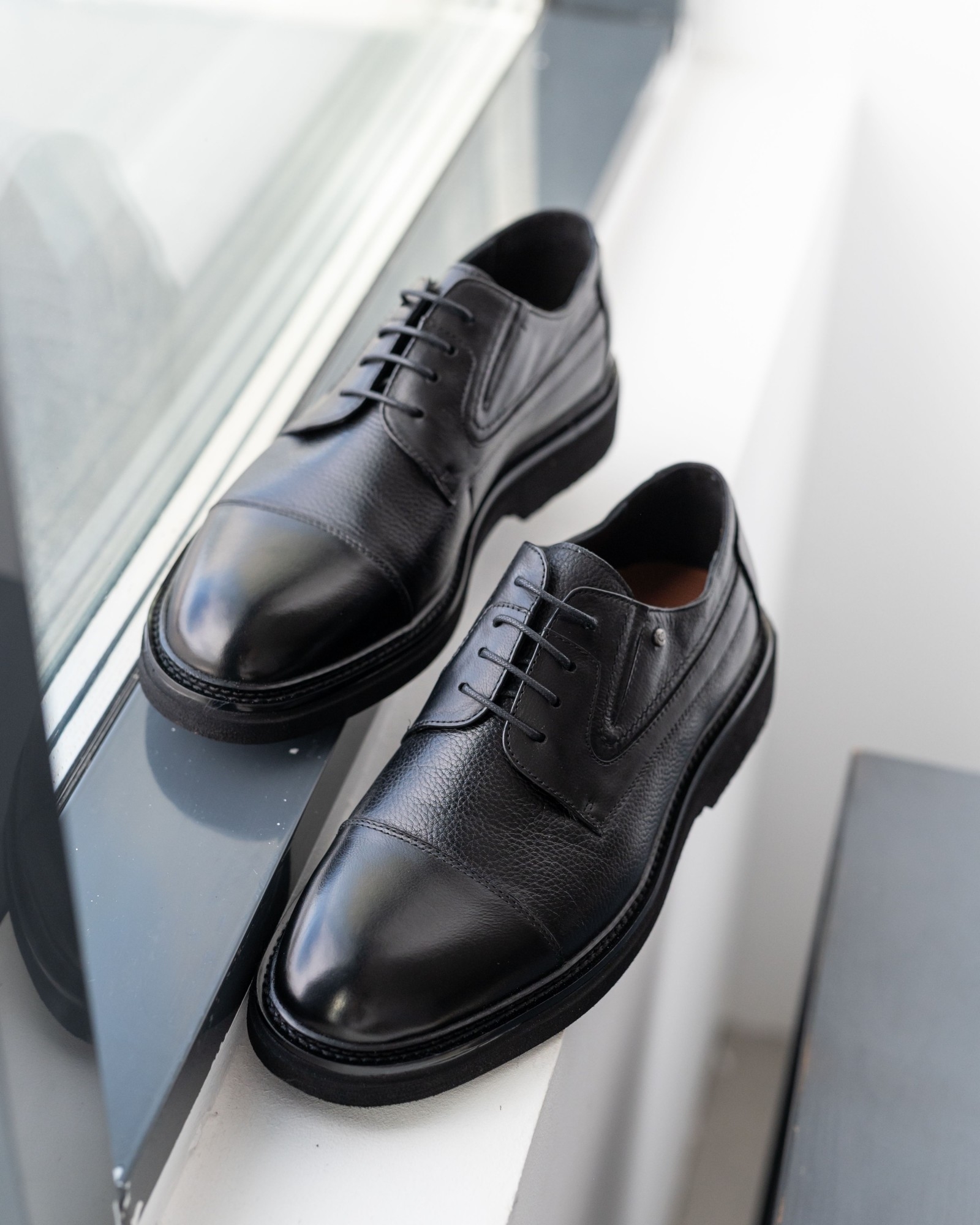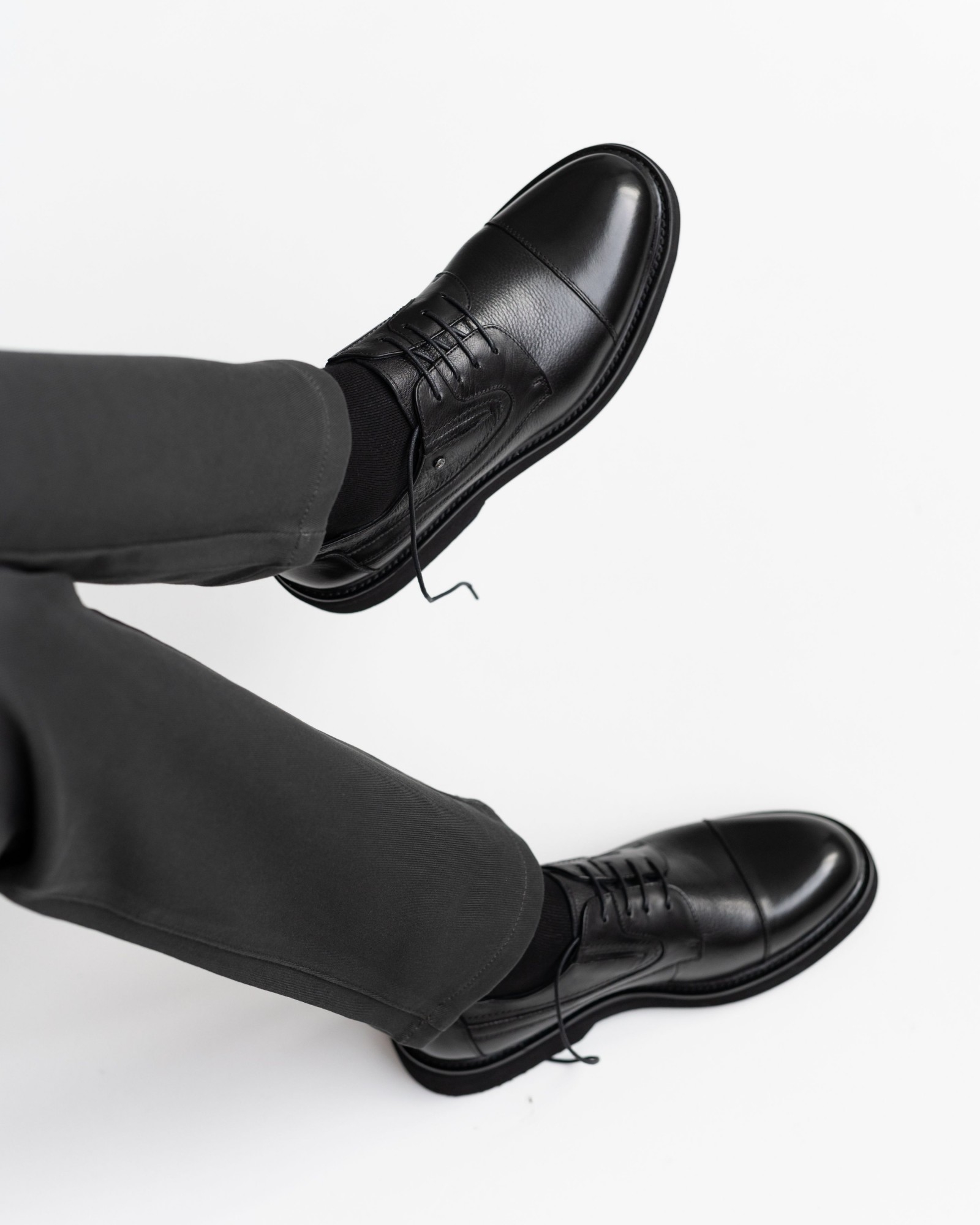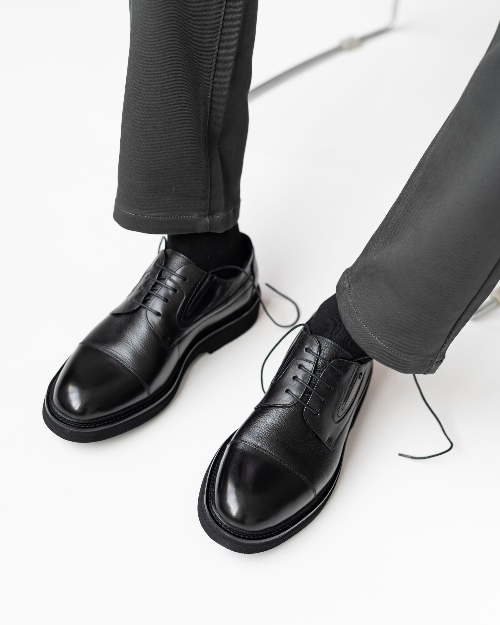**Классические чёрные дерби с отрезным носком – строгая форма и современный характер**