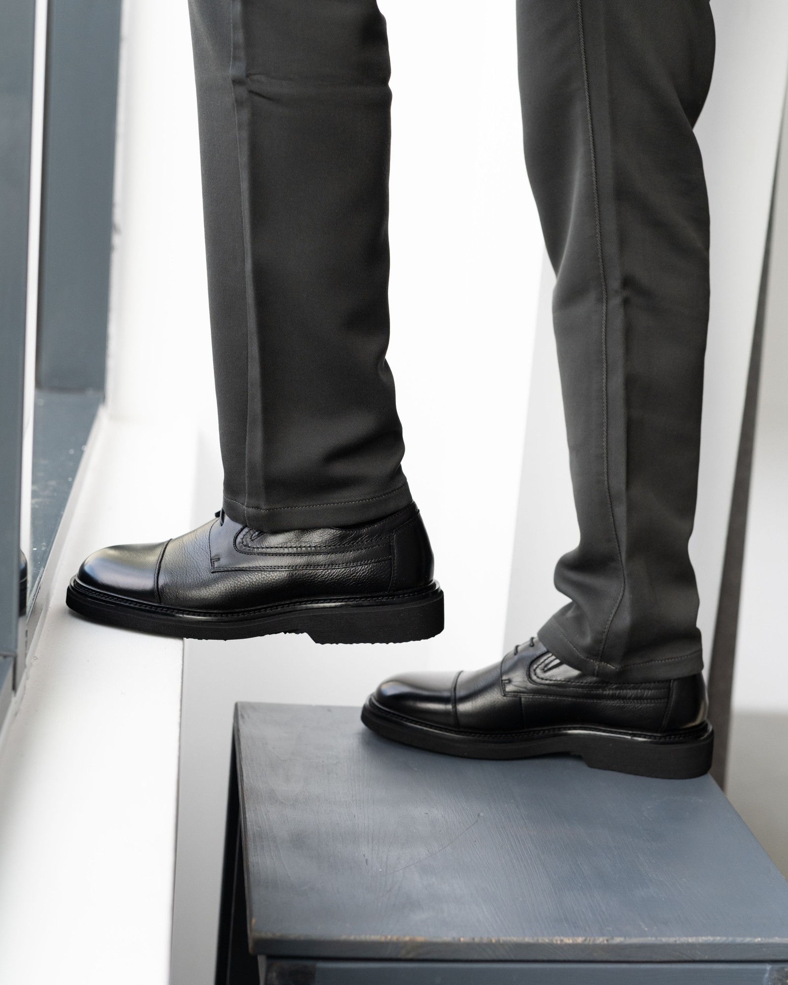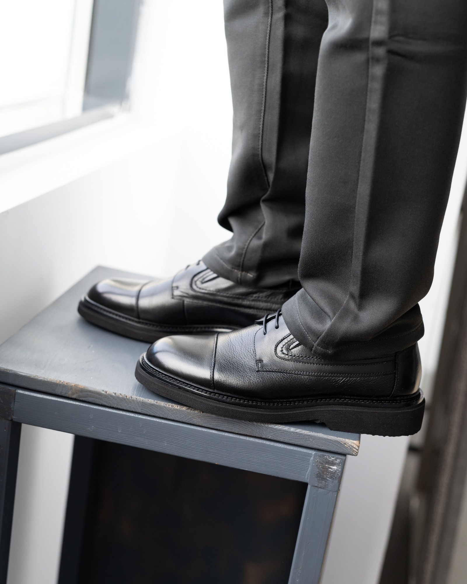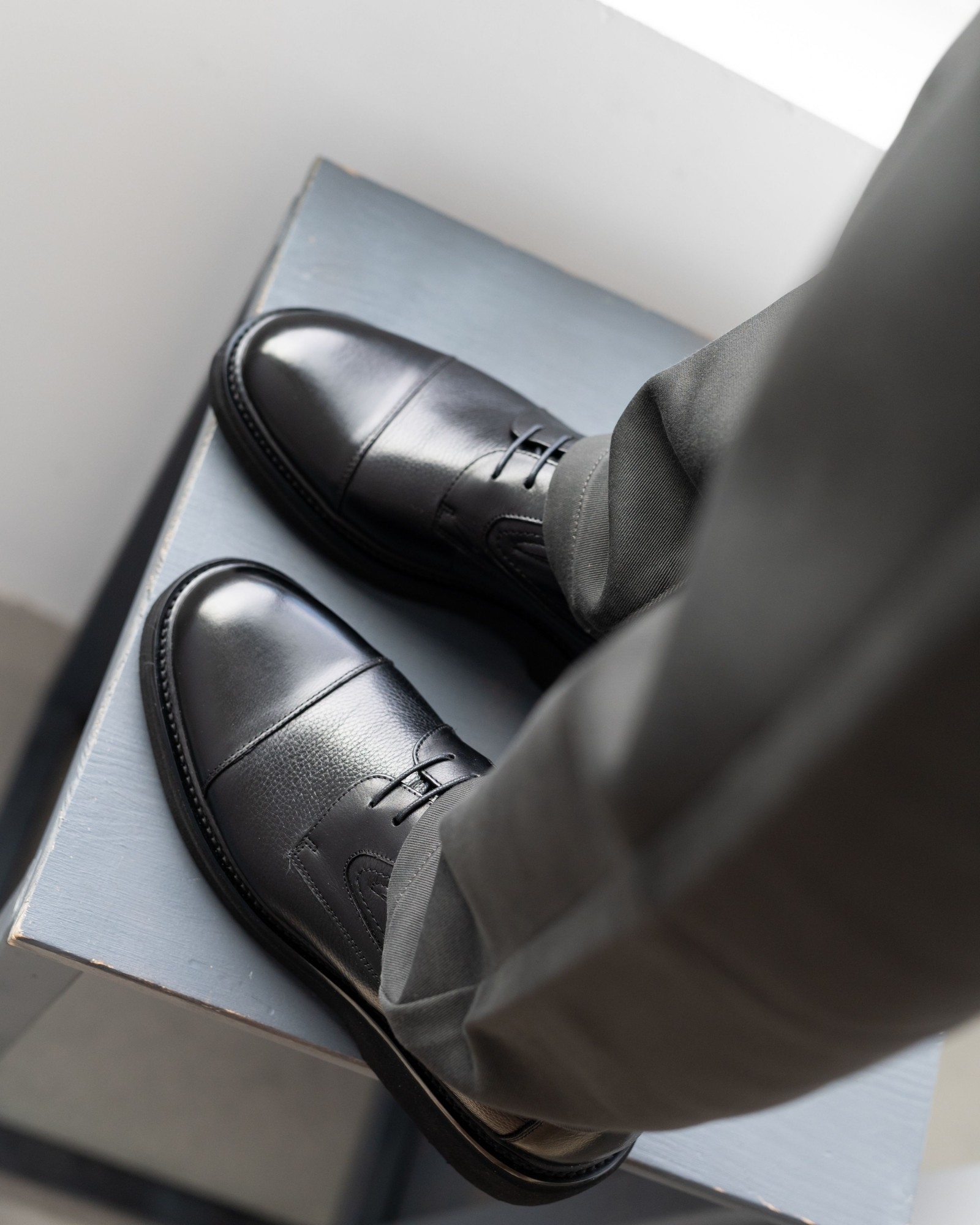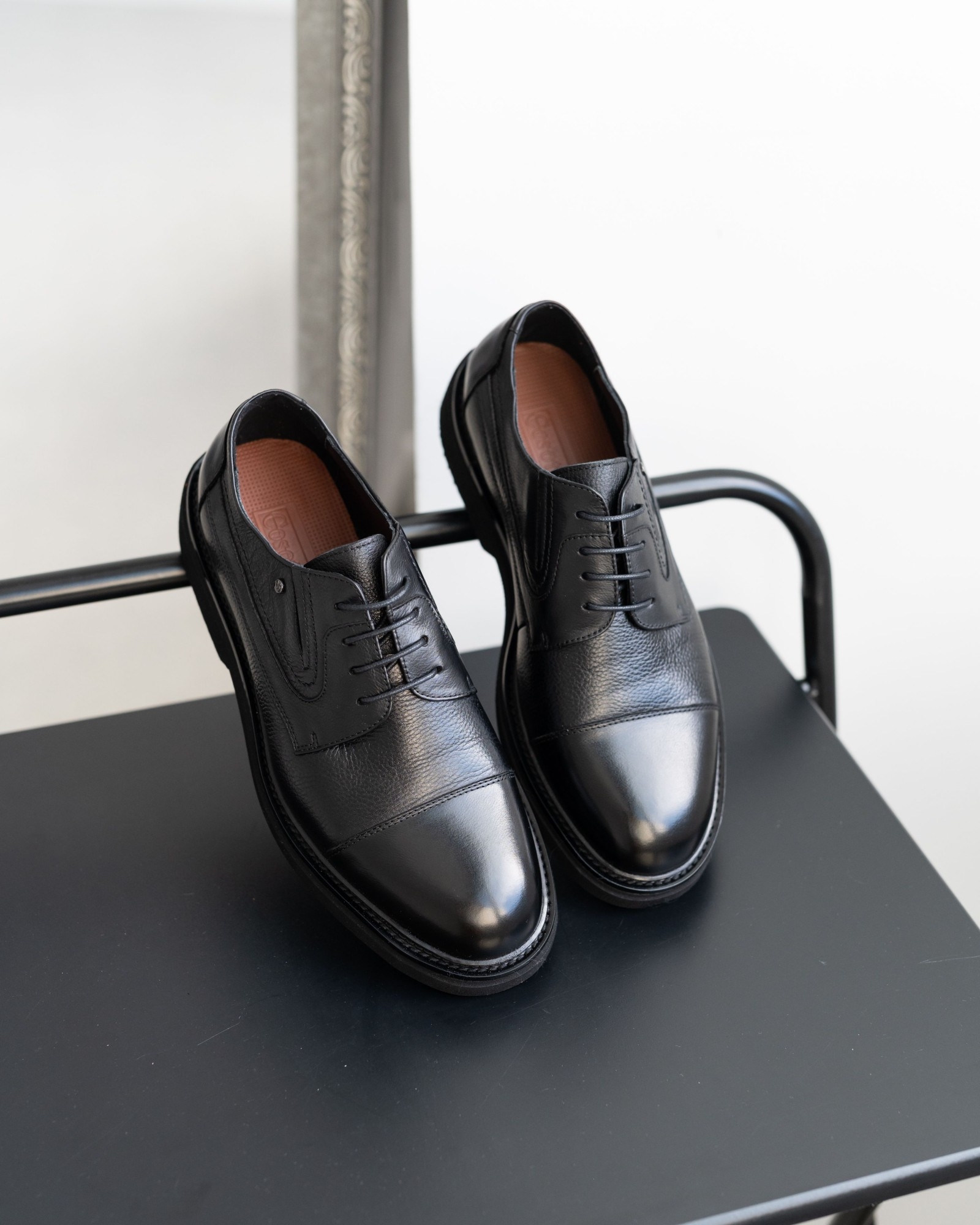 **Классические чёрные дерби с отрезным носком – строгая форма и современный характер**