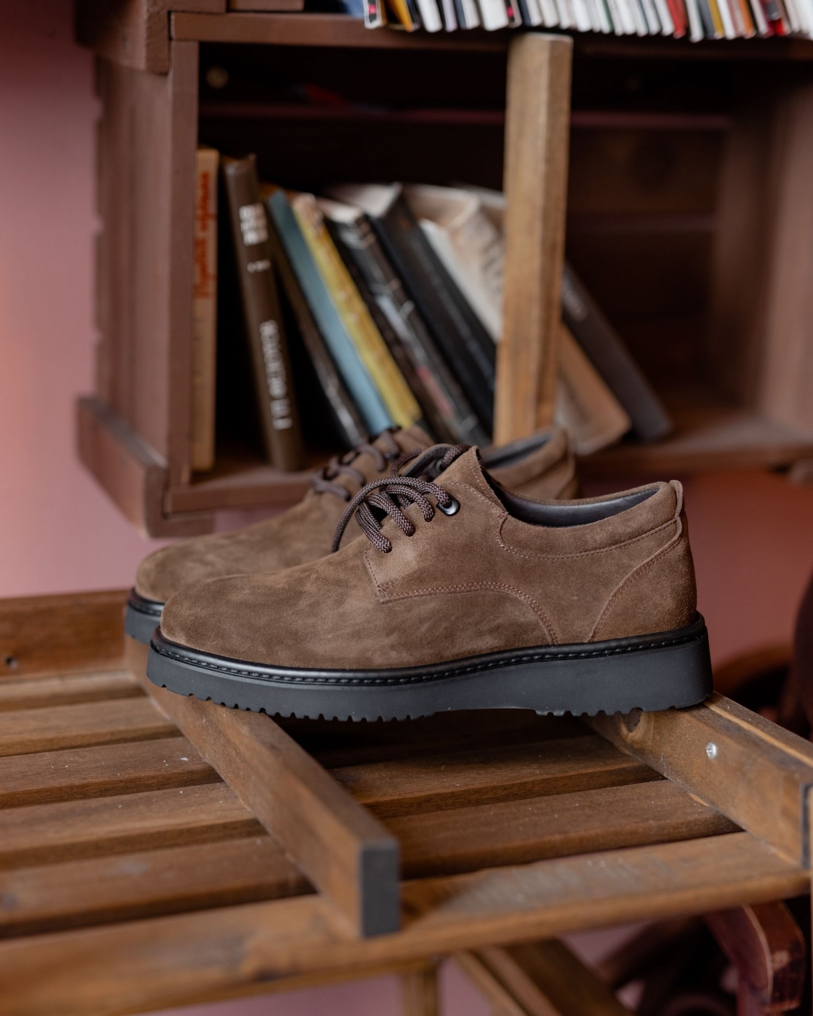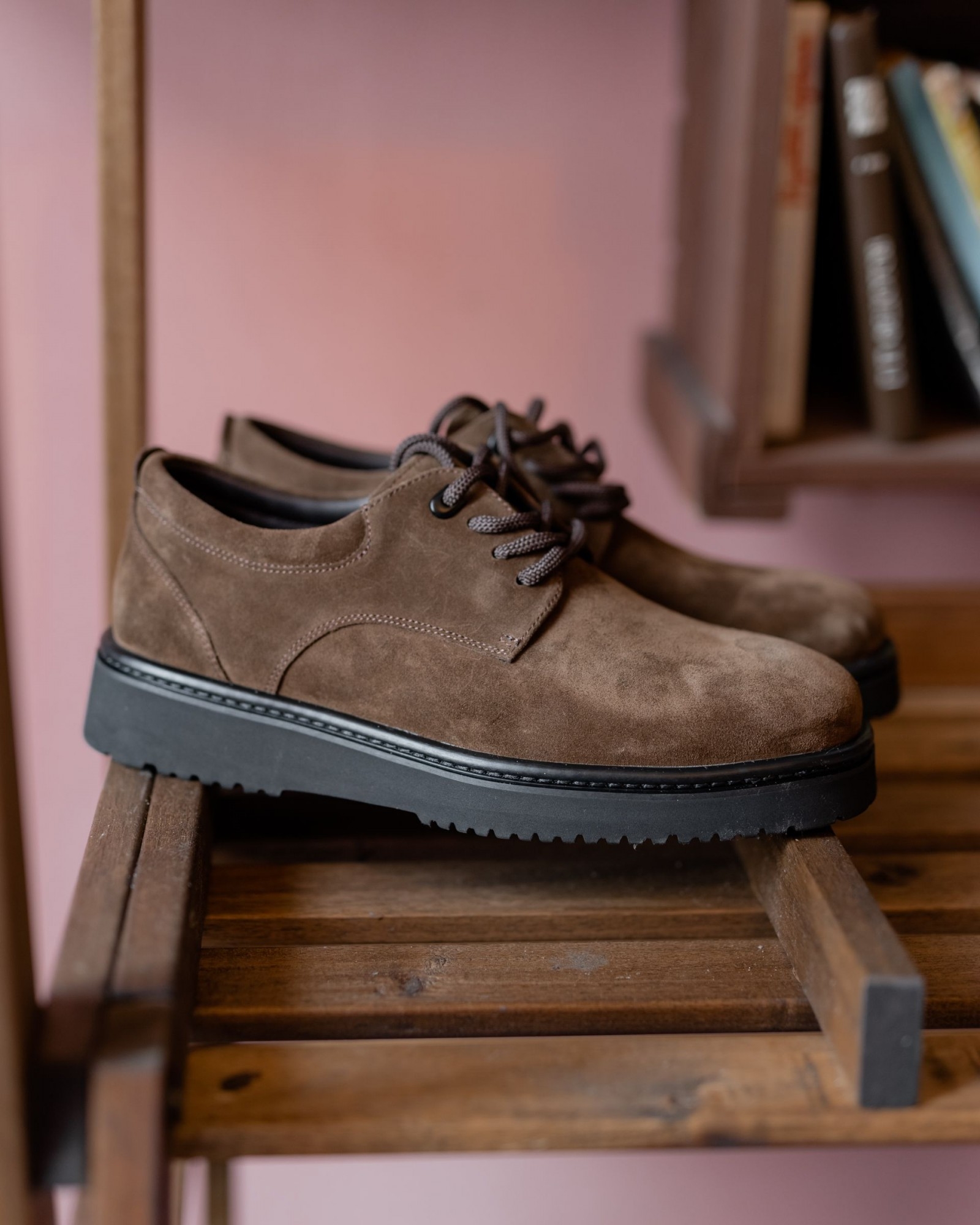 Выберите темнорыжие дерби из замши на танкетке и подчеркните свою индивидуальность с утонченным и современным стилем.