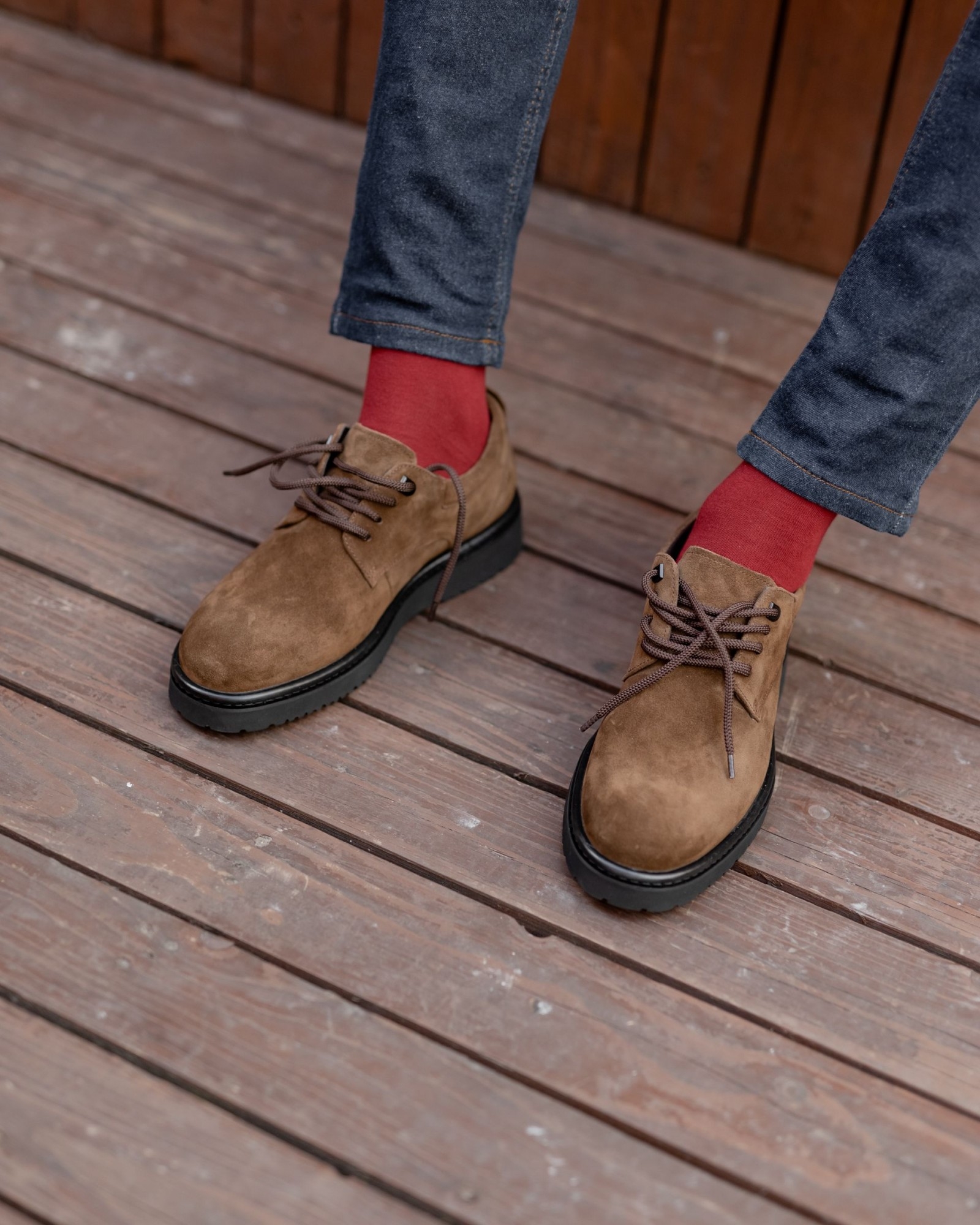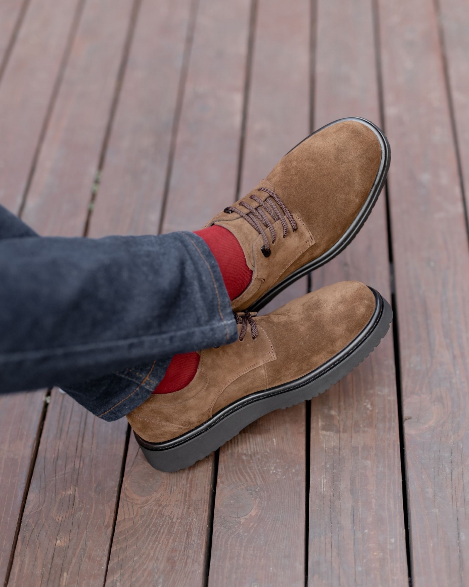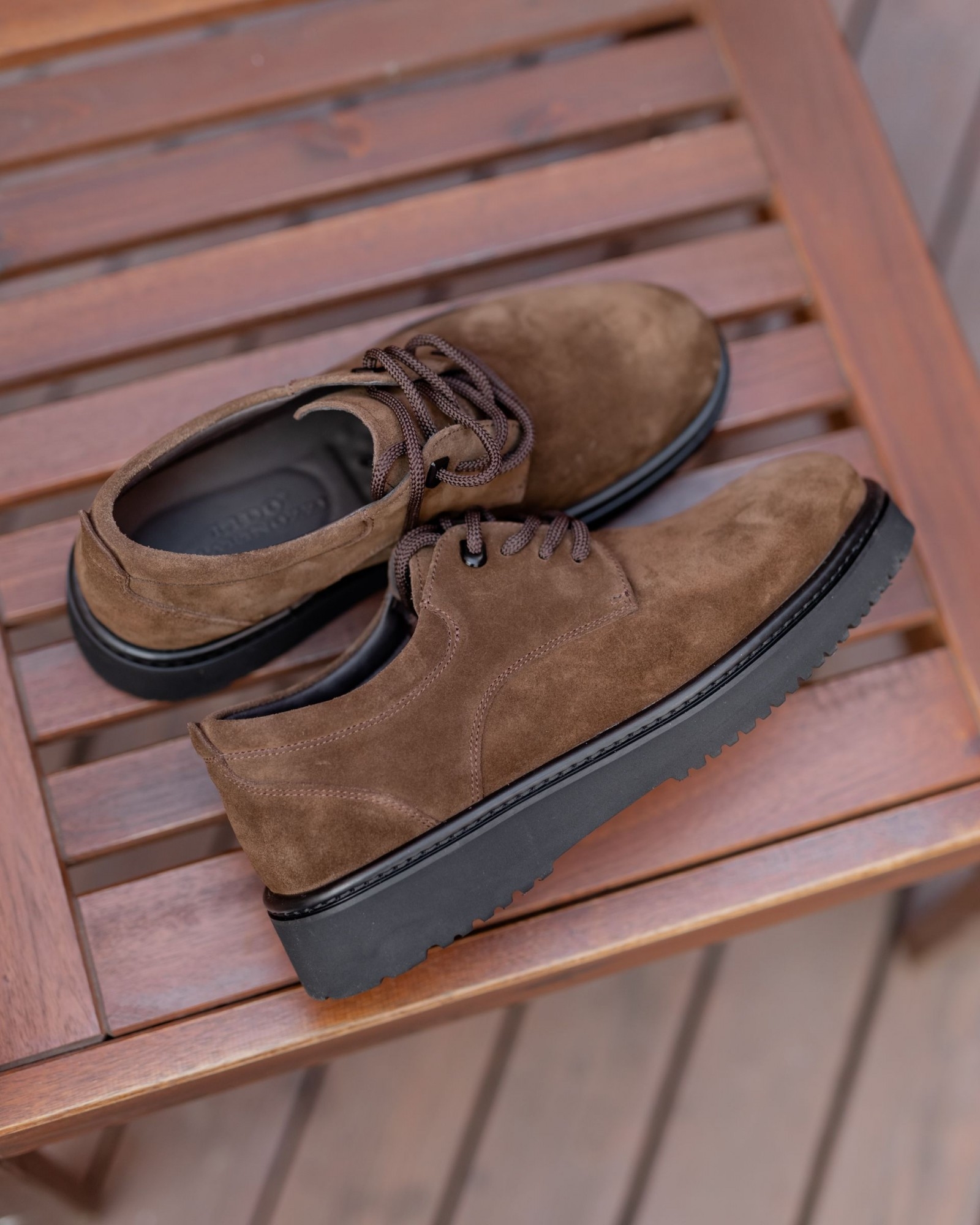 **Темнорыжие дерби из замши на танкетке: изысканная стильность и комфорт**