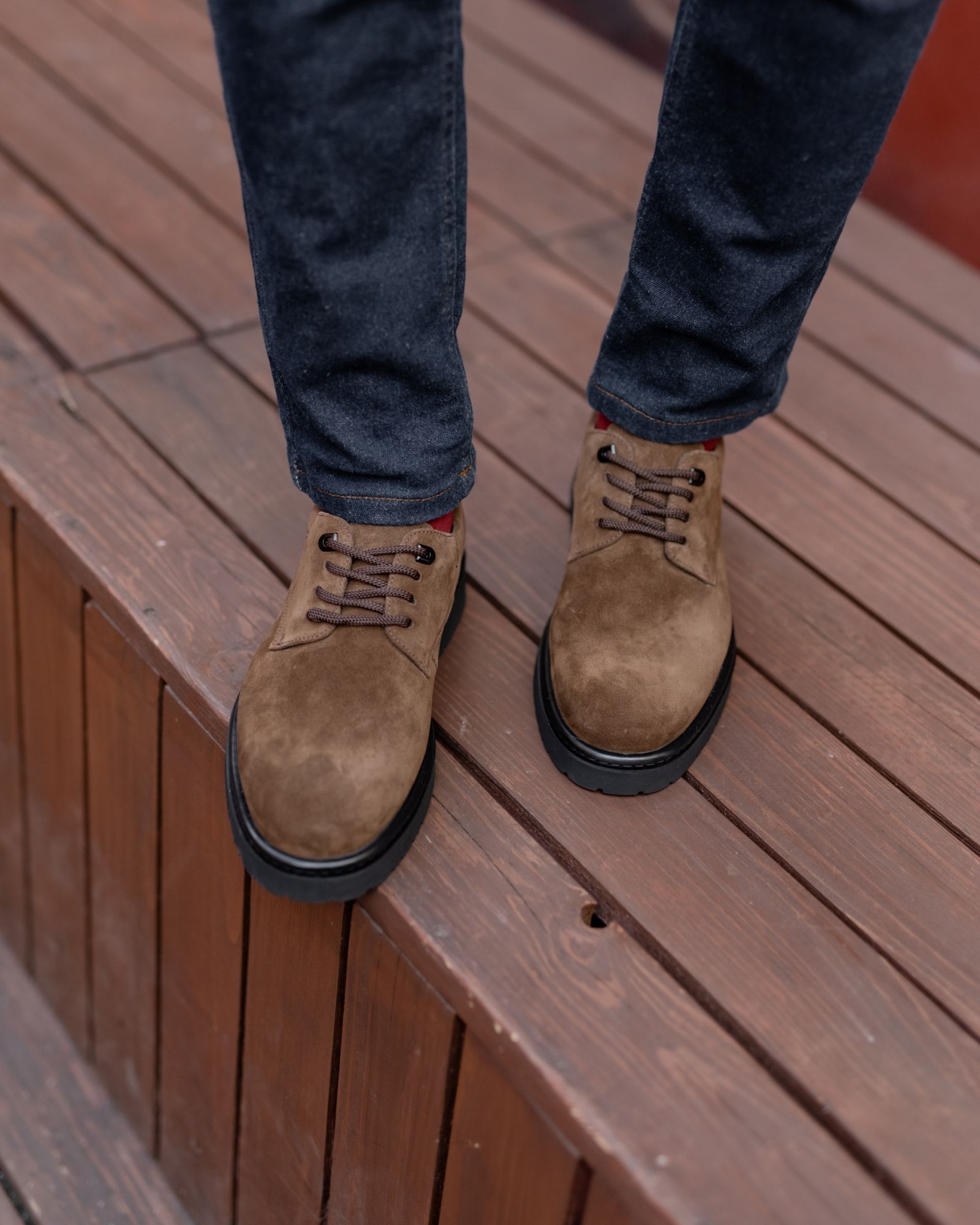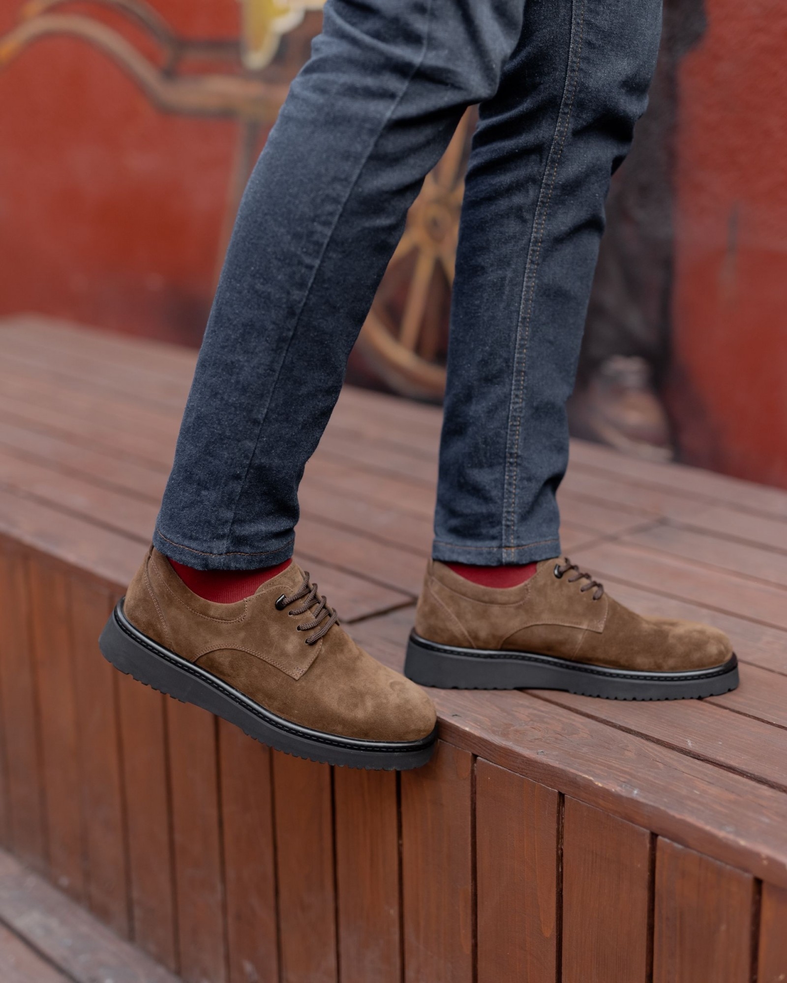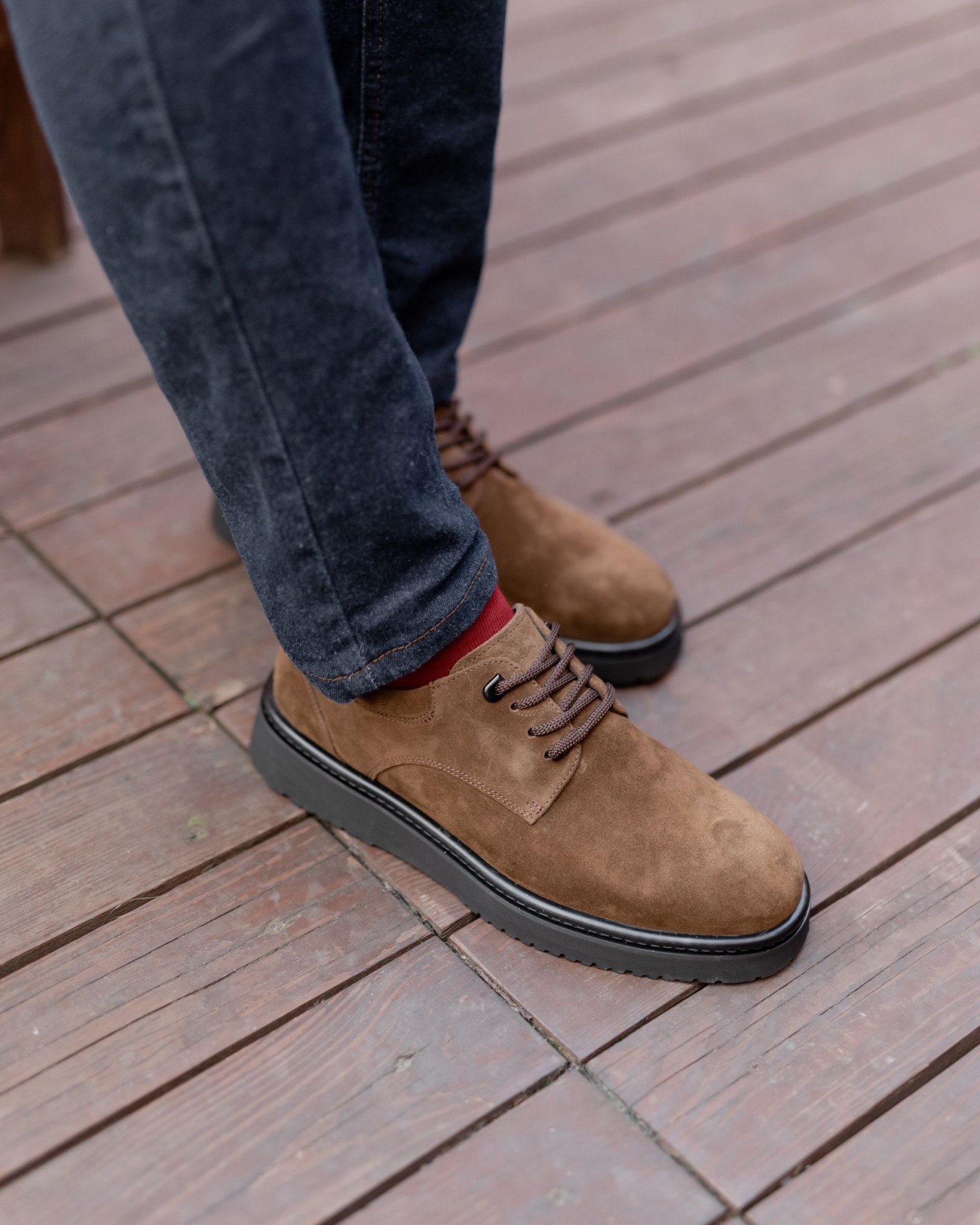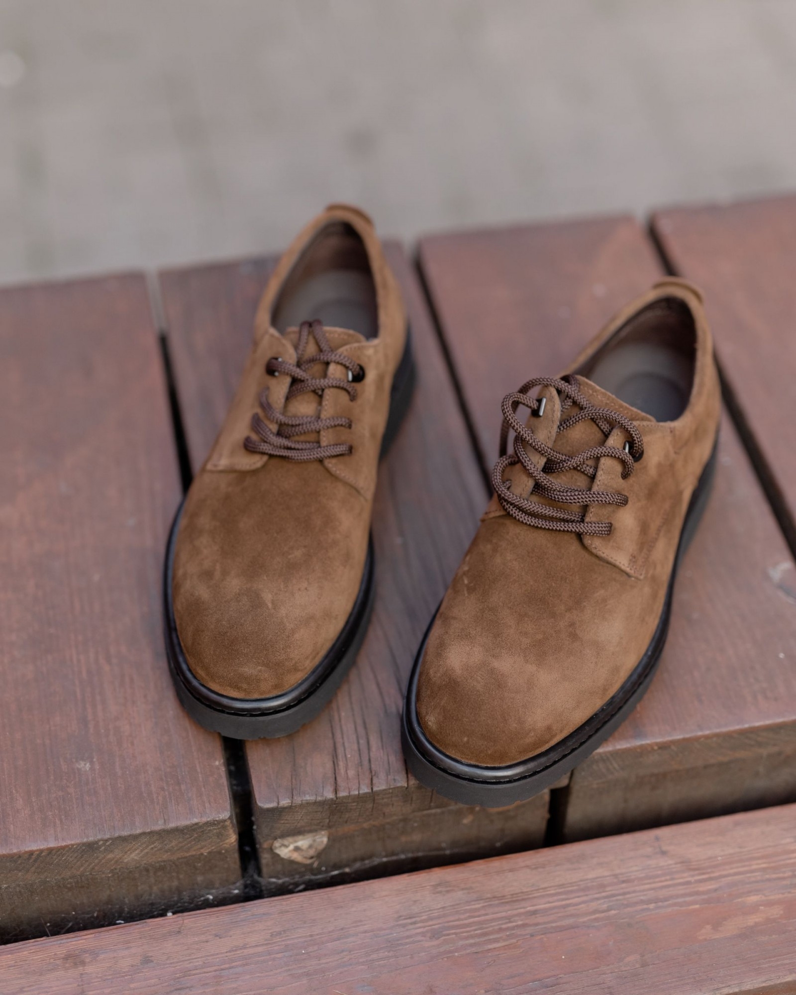 **Темнорыжие дерби из замши на танкетке: изысканная стильность и комфорт**