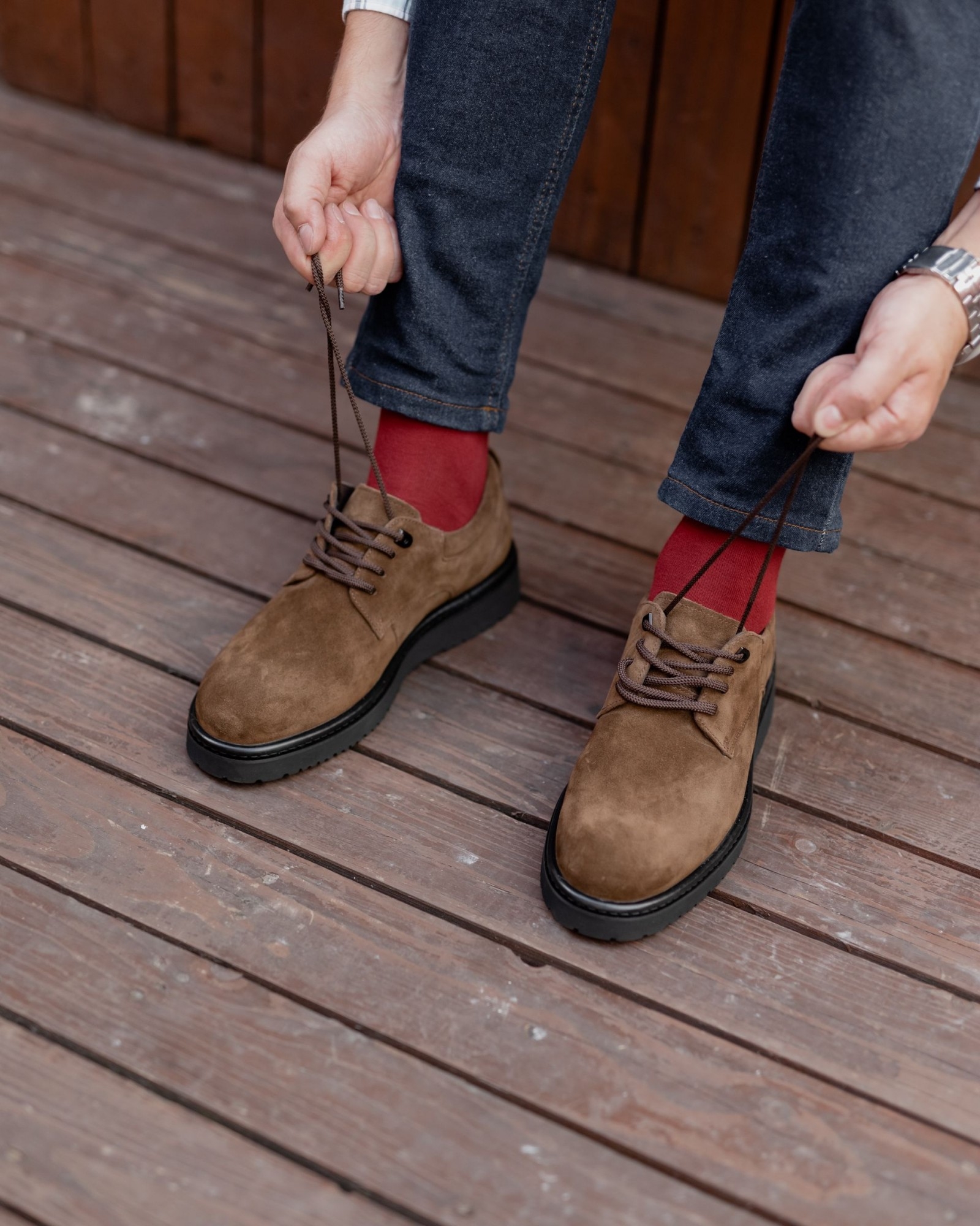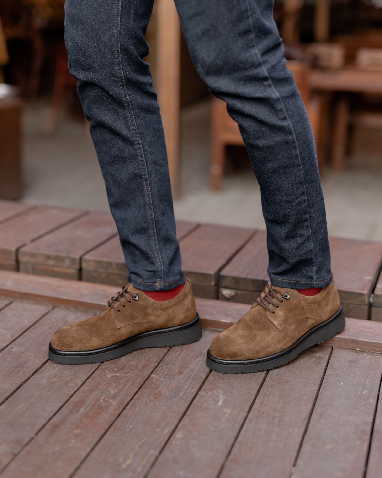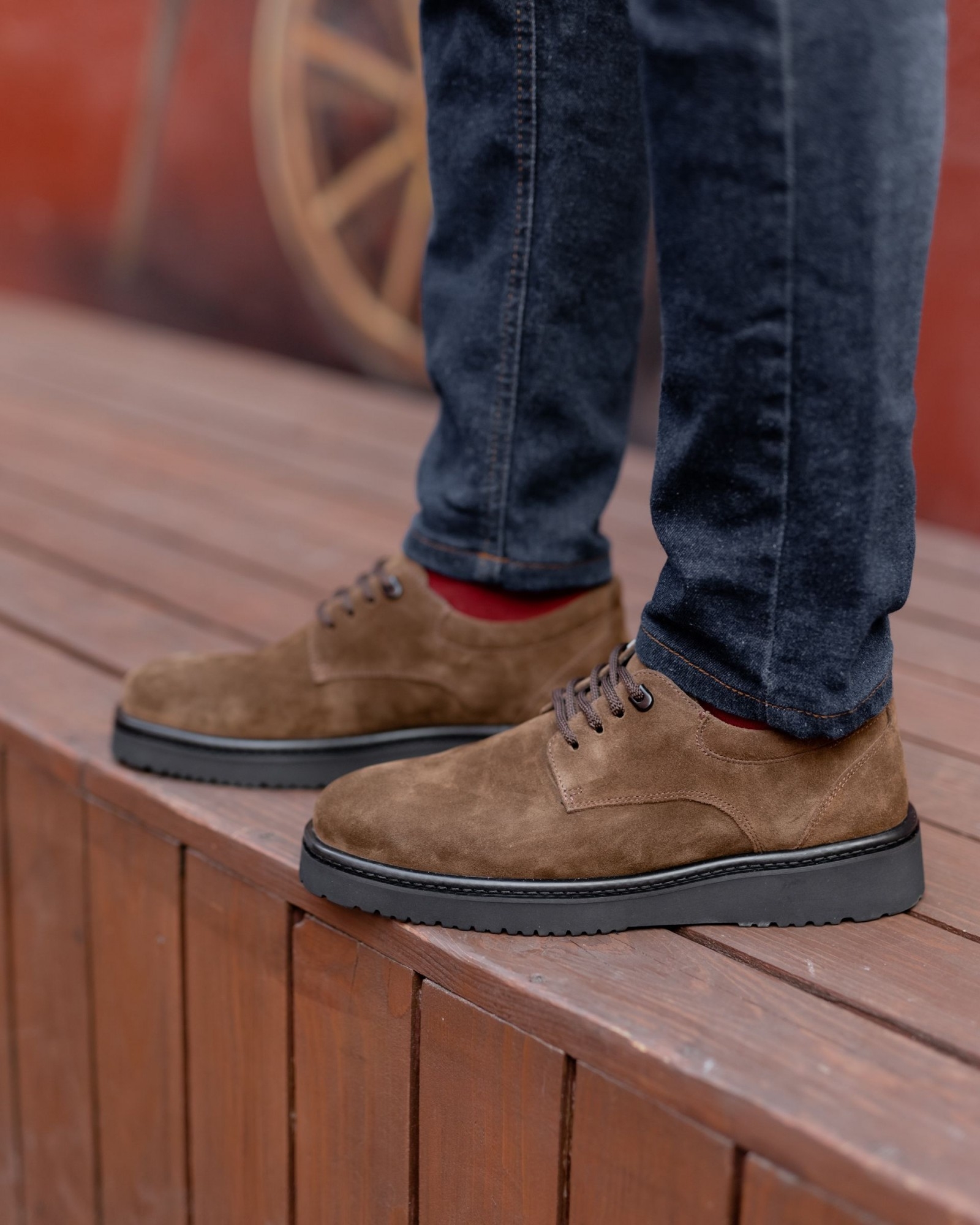 Погрузитесь в мир утонченной элегантности с нашими темнорыжими дерби из замши на танкетке. Эти туфли выполнены из роскошной замши с мягкой текстурой, которая придает обуви не только уникальный внешний вид, но и исключительный комфорт. Гладкий верх и глубокий темнорыжий оттенок подчеркивают их благородство и делают их идеальными для создания выразительных образов.