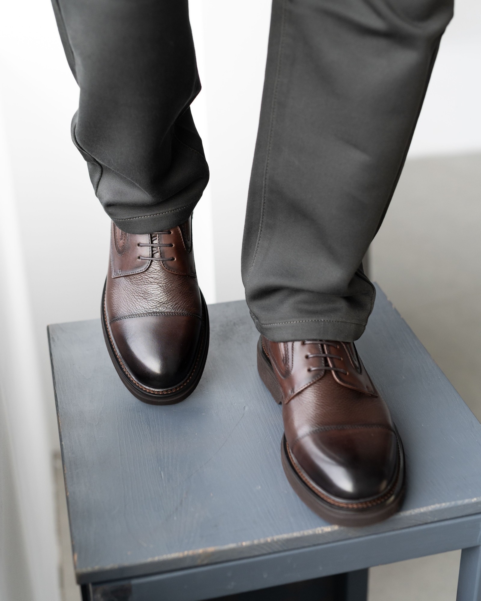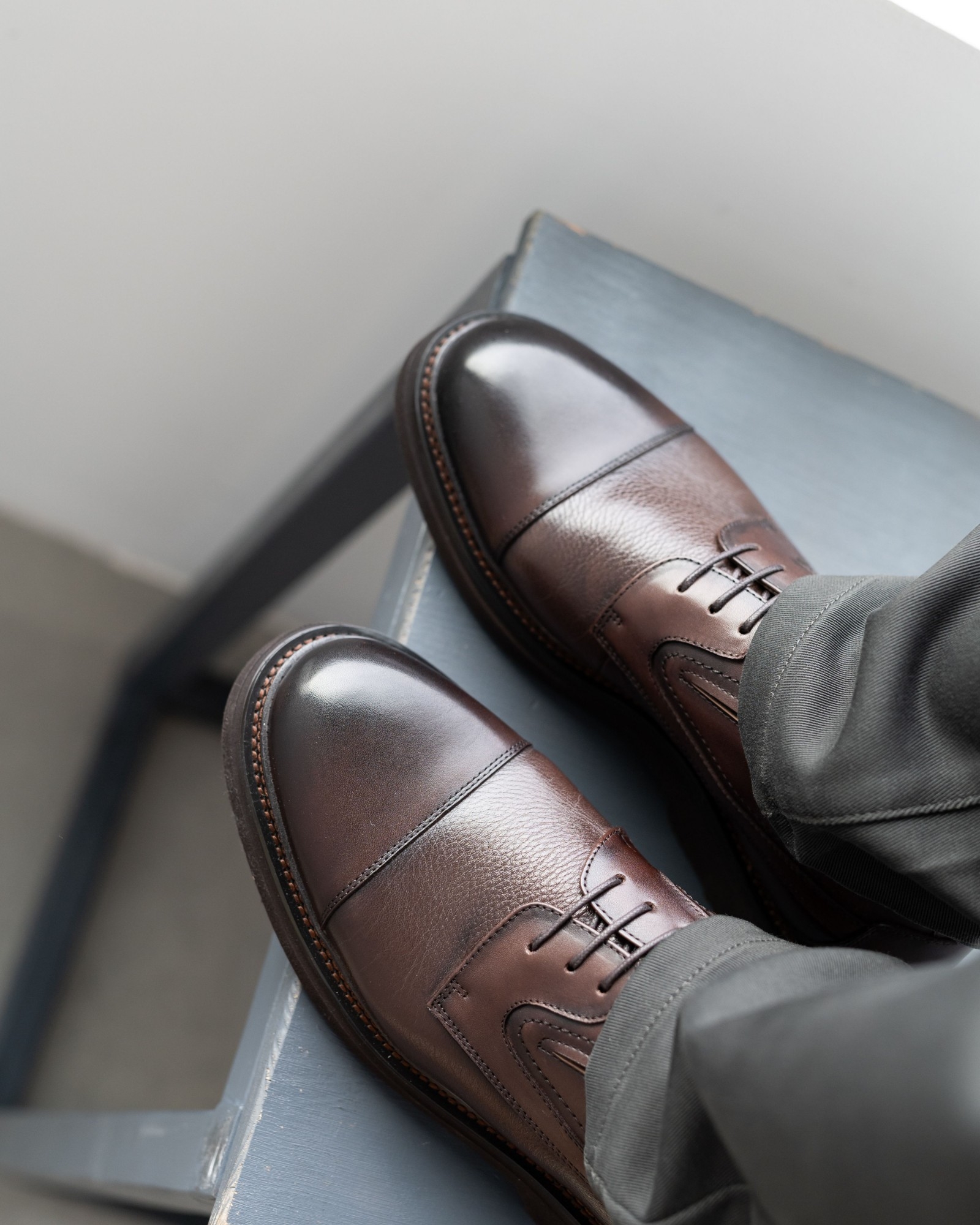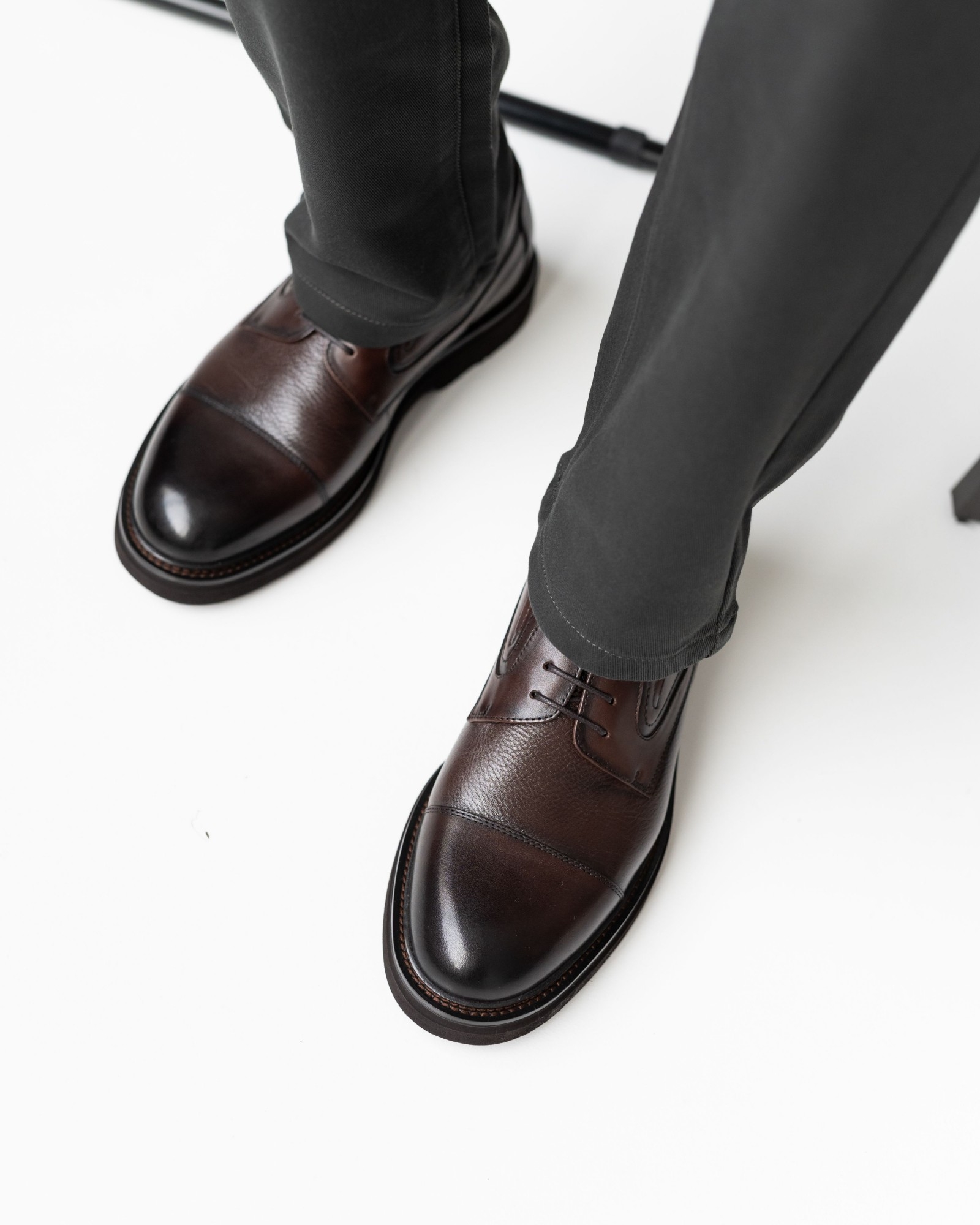 **Классические дерби коричневого цвета с отрезным носком – благородная строгость и интеллектуальный стиль**