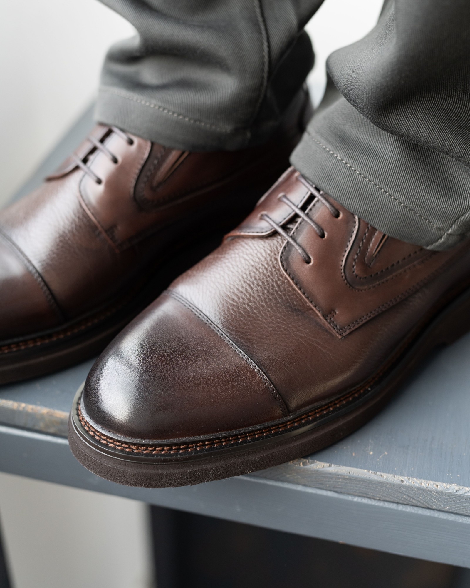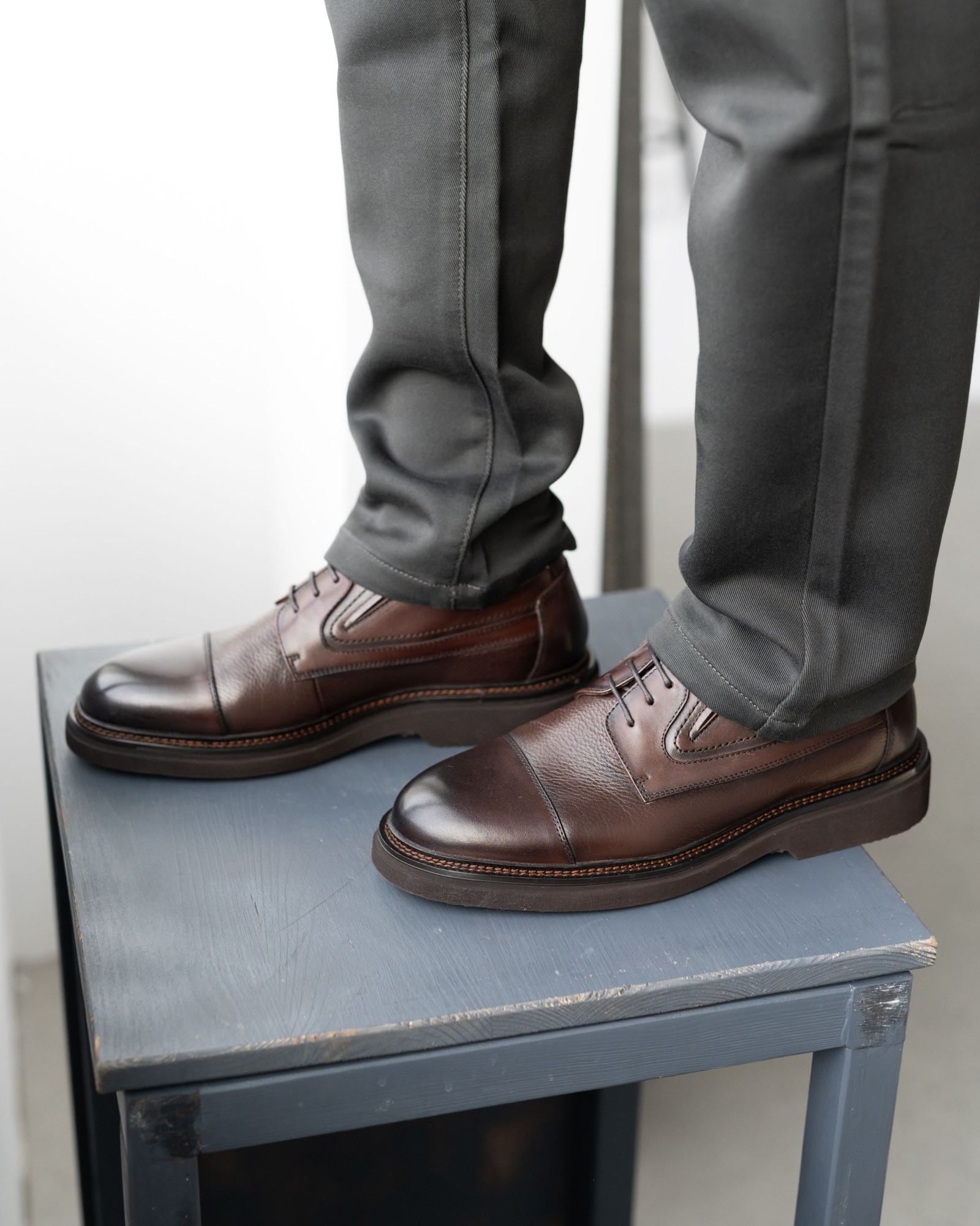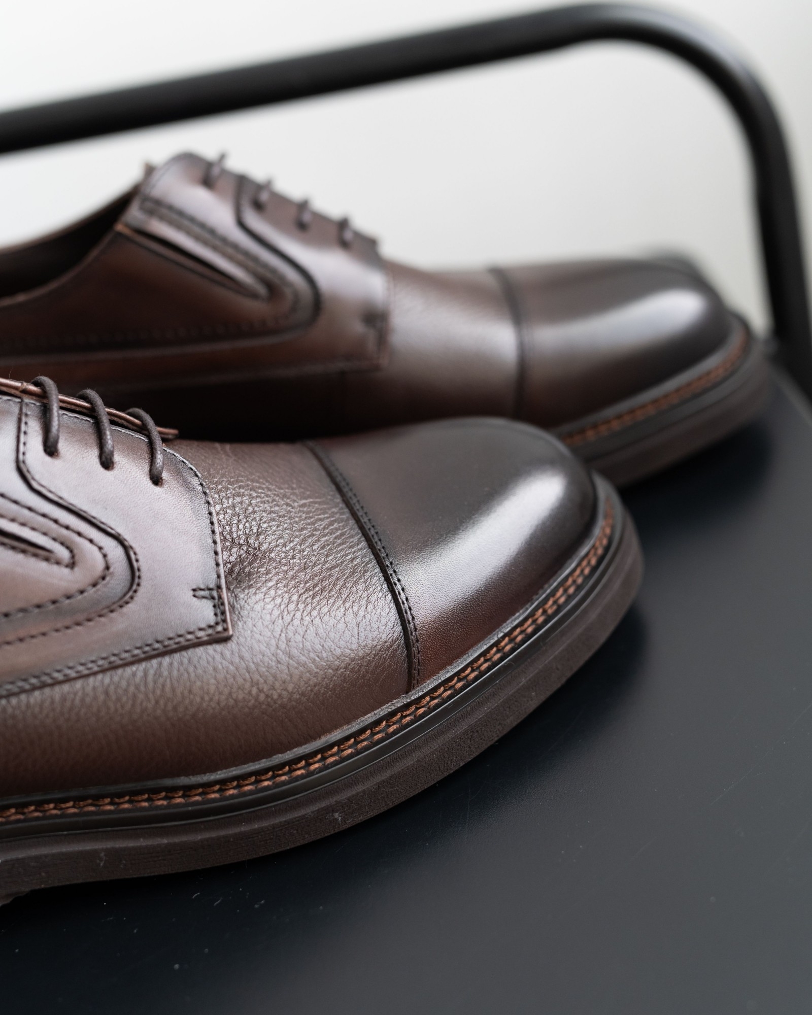 **Классические дерби коричневого цвета с отрезным носком – благородная строгость и интеллектуальный стиль**