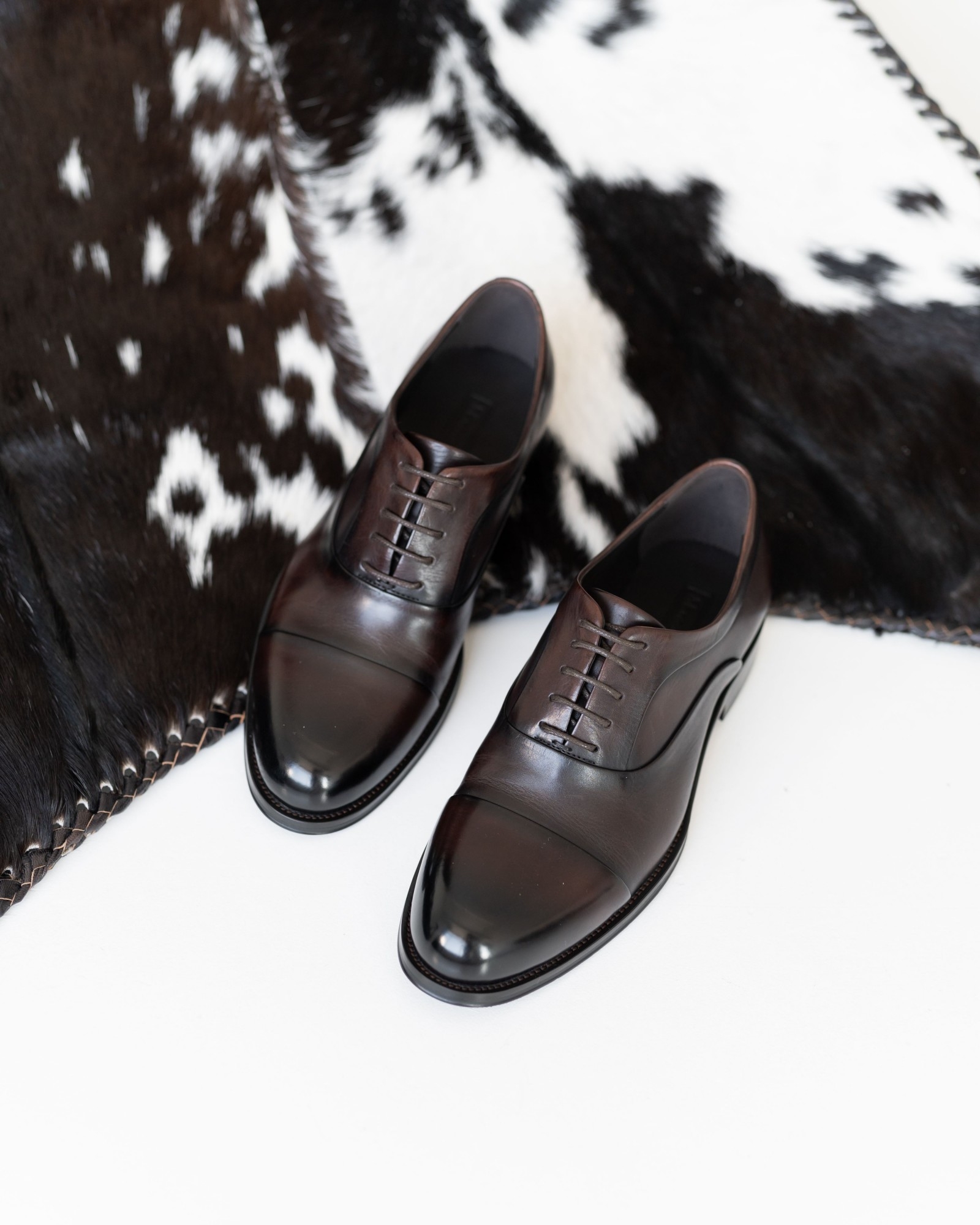 Классика, проверенная временем, получила современное воплощение. Эти оксфорды выполнены из премиальной коричневой кожи с лёгким естественным блеском. Отрезной носок подчёркивает строгость и элегантность, а закрытая шнуровка обеспечивает точную посадку и комфорт на весь день. Элегантный рант добавляет выразительности, делая обувь универсальной — она гармонично впишется и в деловой костюм, и в более свободный образ с современной жилеткой.