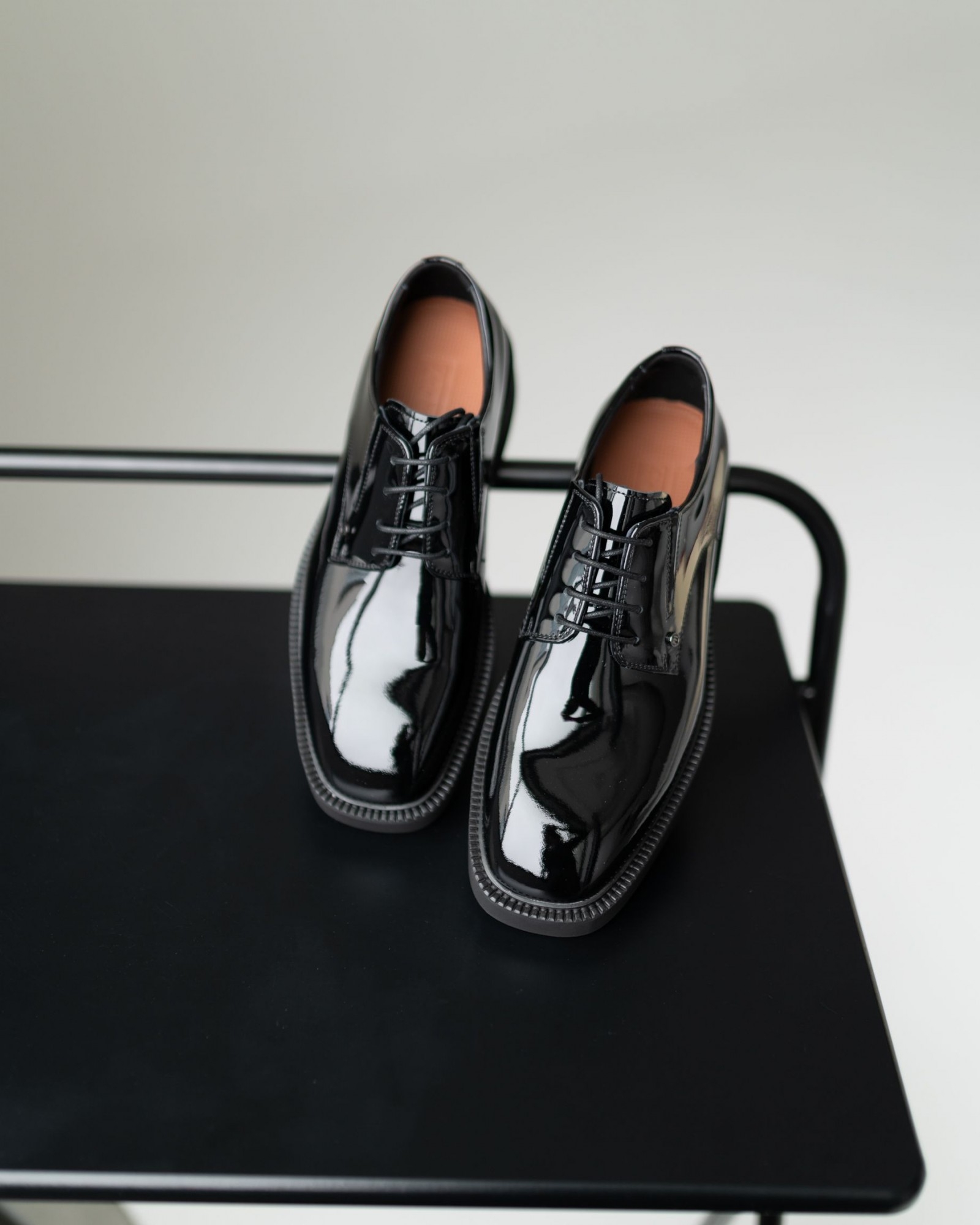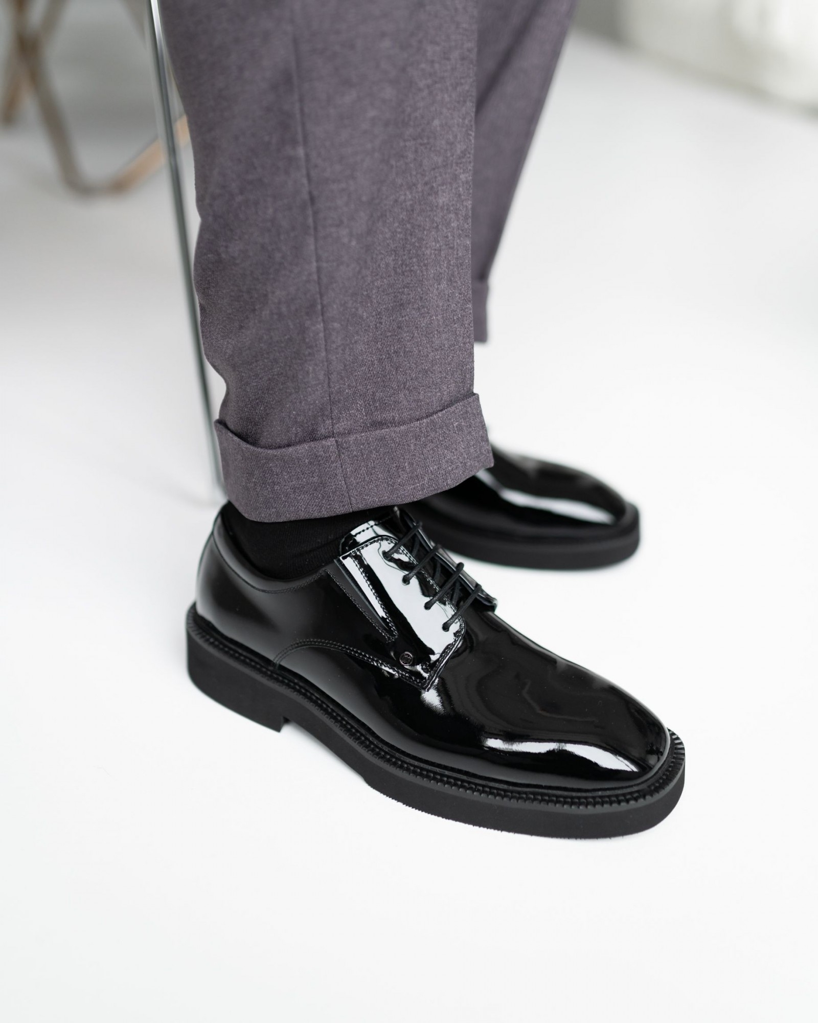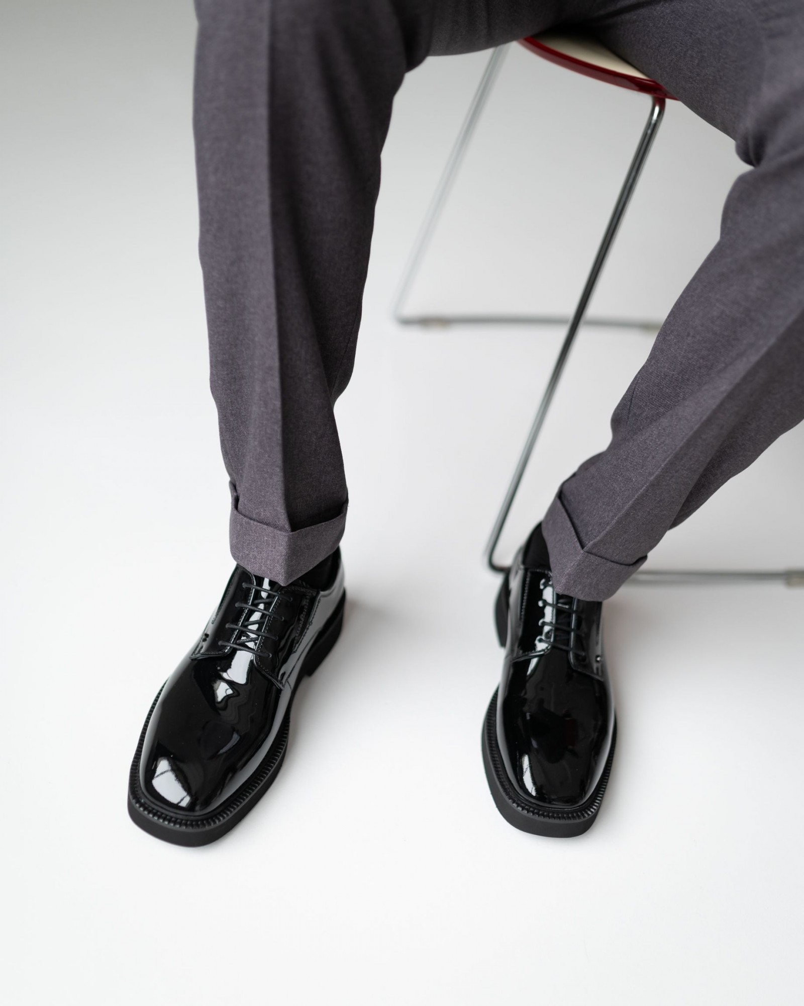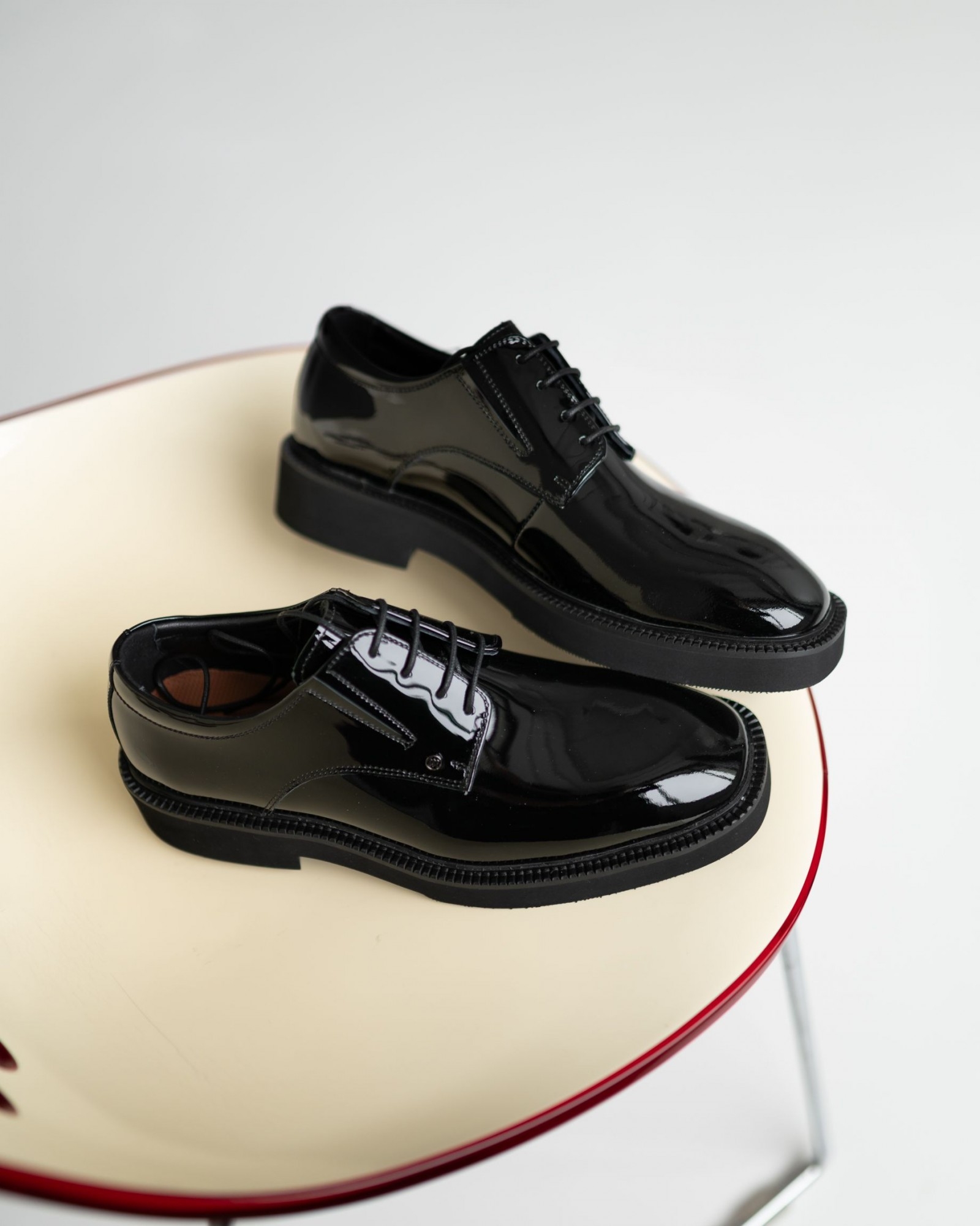 Лаковые дерби с квадратным носом в насыщенном чёрном цвете — смелый акцент в вашем образе. Модель выделяется выразительной грубой подошвой, которая придаёт современный характер и отличный комфорт при ходьбе. Шнуровка подчёркивает классическую форму, а глянцевый блеск кожи добавляет элегантности. Идеальный выбор для тех, кто ценит модные детали и уверенный стиль.