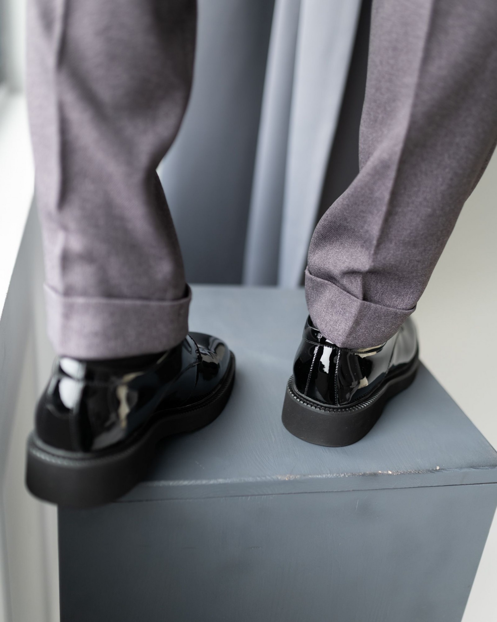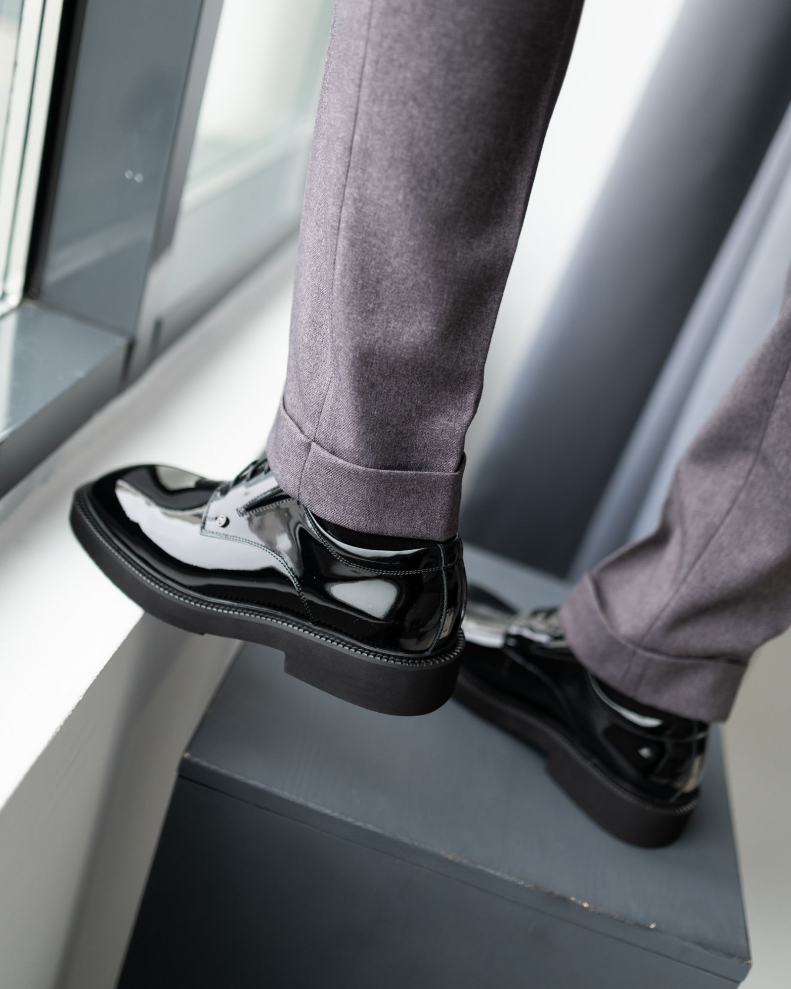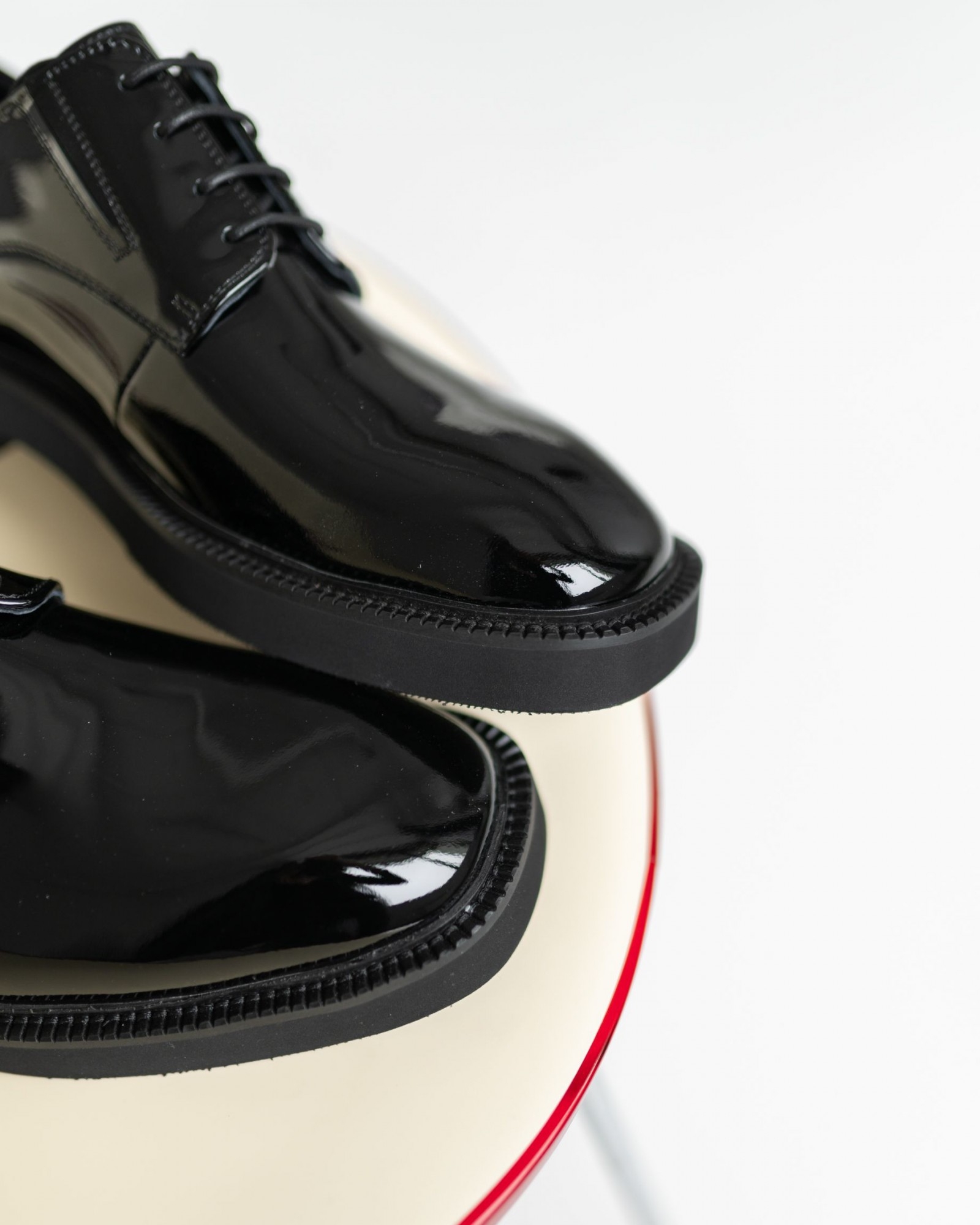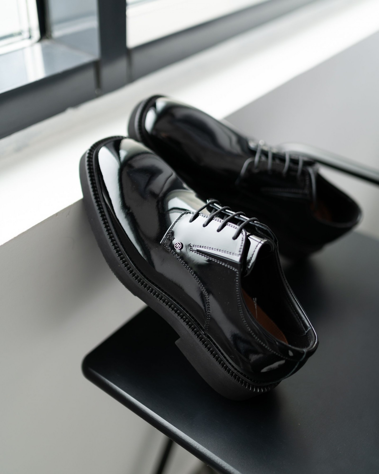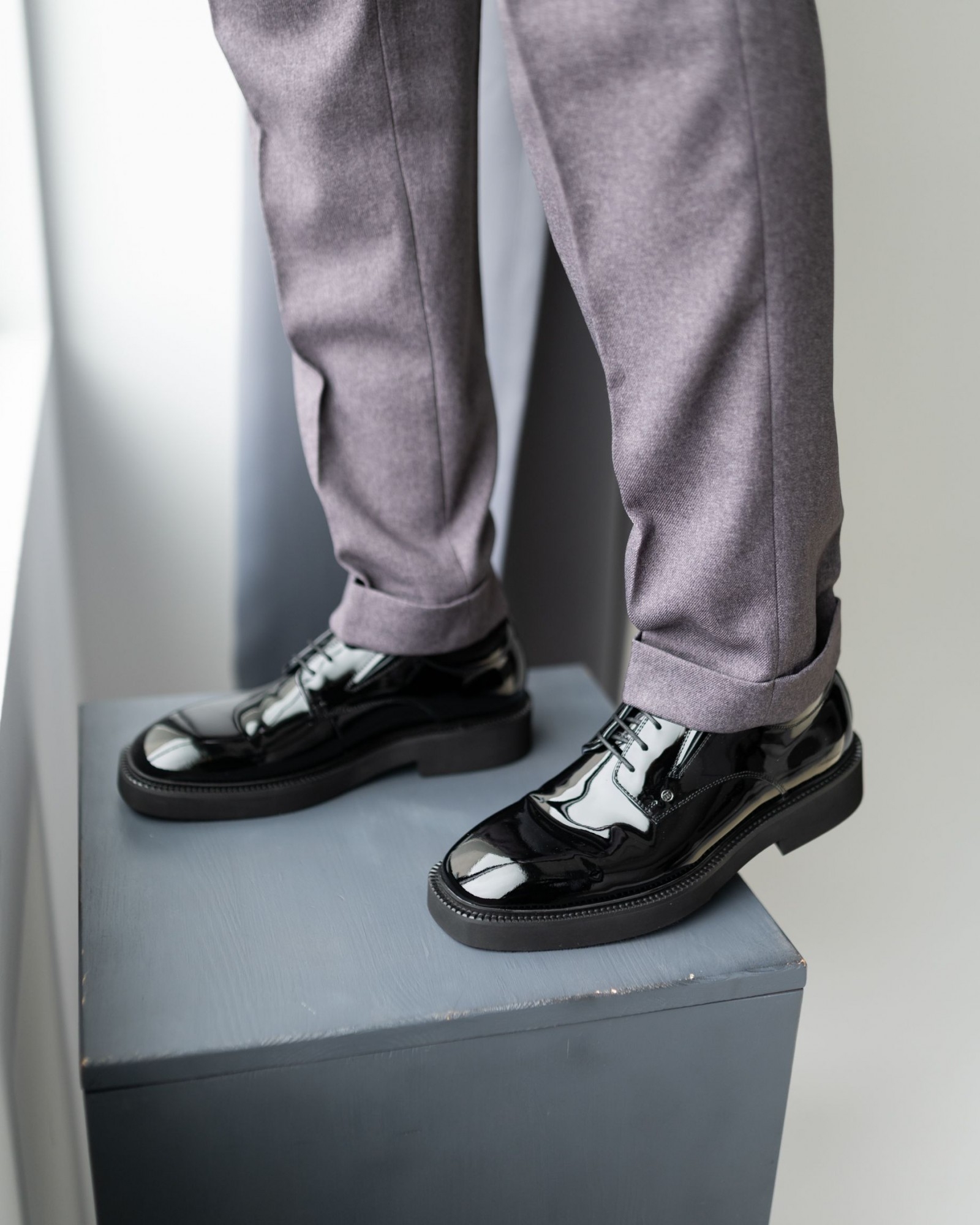 Лаковые дерби с квадратным носом в насыщенном чёрном цвете — смелый акцент в вашем образе. Модель выделяется выразительной грубой подошвой, которая придаёт современный характер и отличный комфорт при ходьбе. Шнуровка подчёркивает классическую форму, а глянцевый блеск кожи добавляет элегантности. Идеальный выбор для тех, кто ценит модные детали и уверенный стиль.