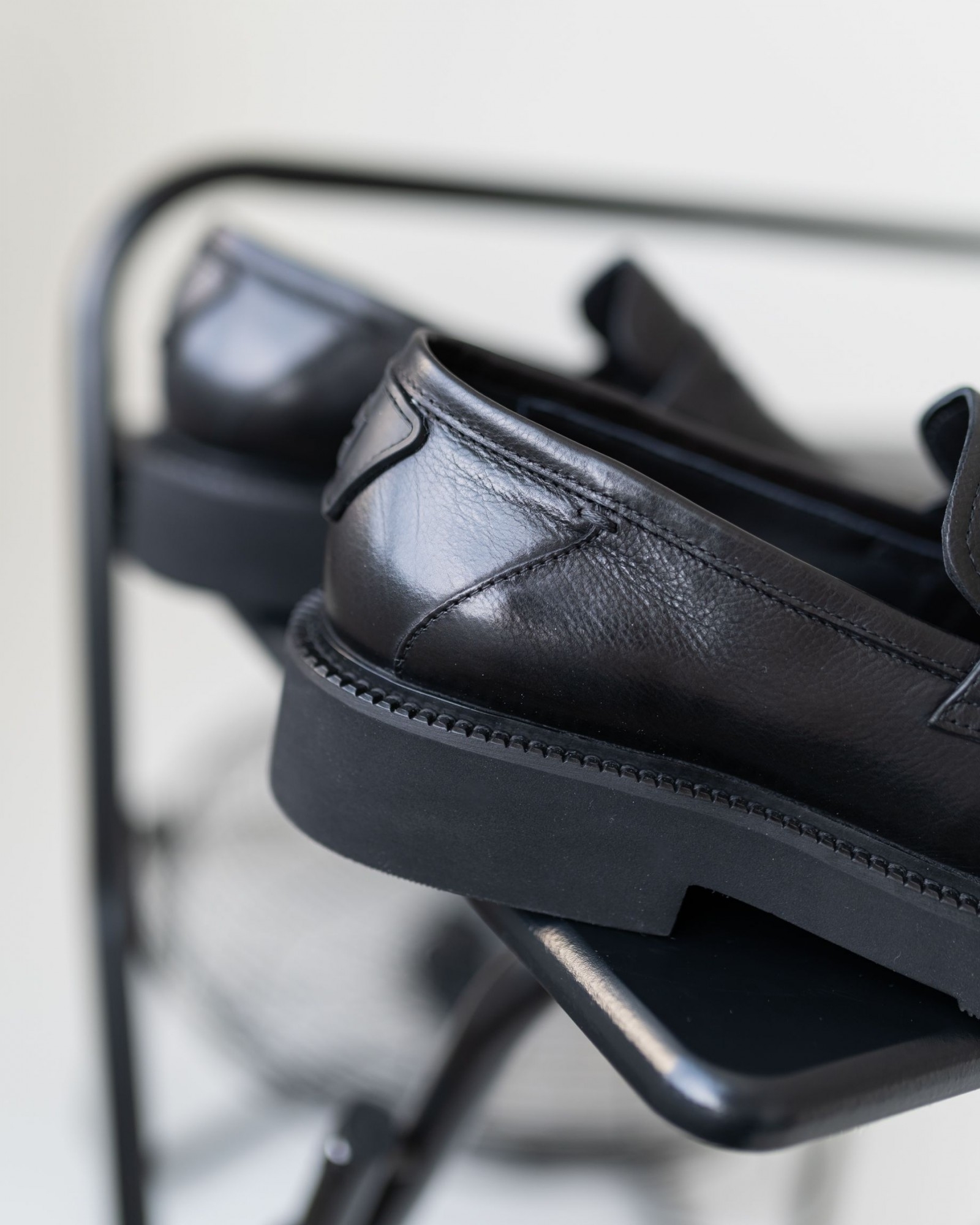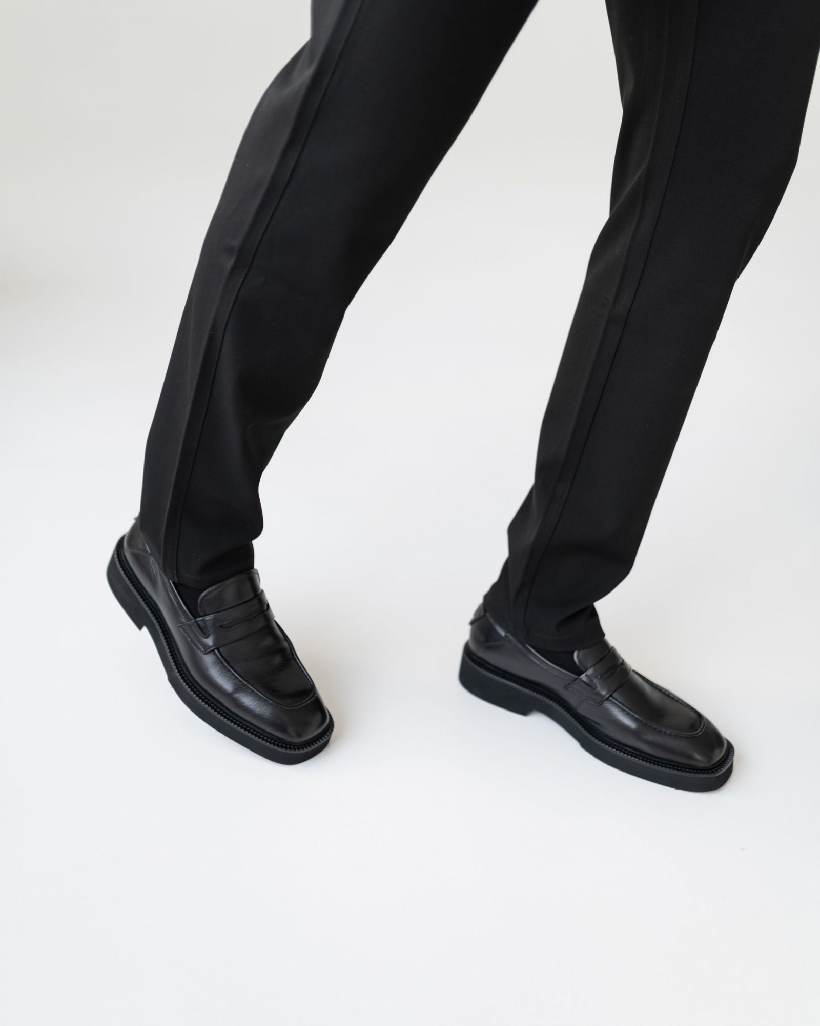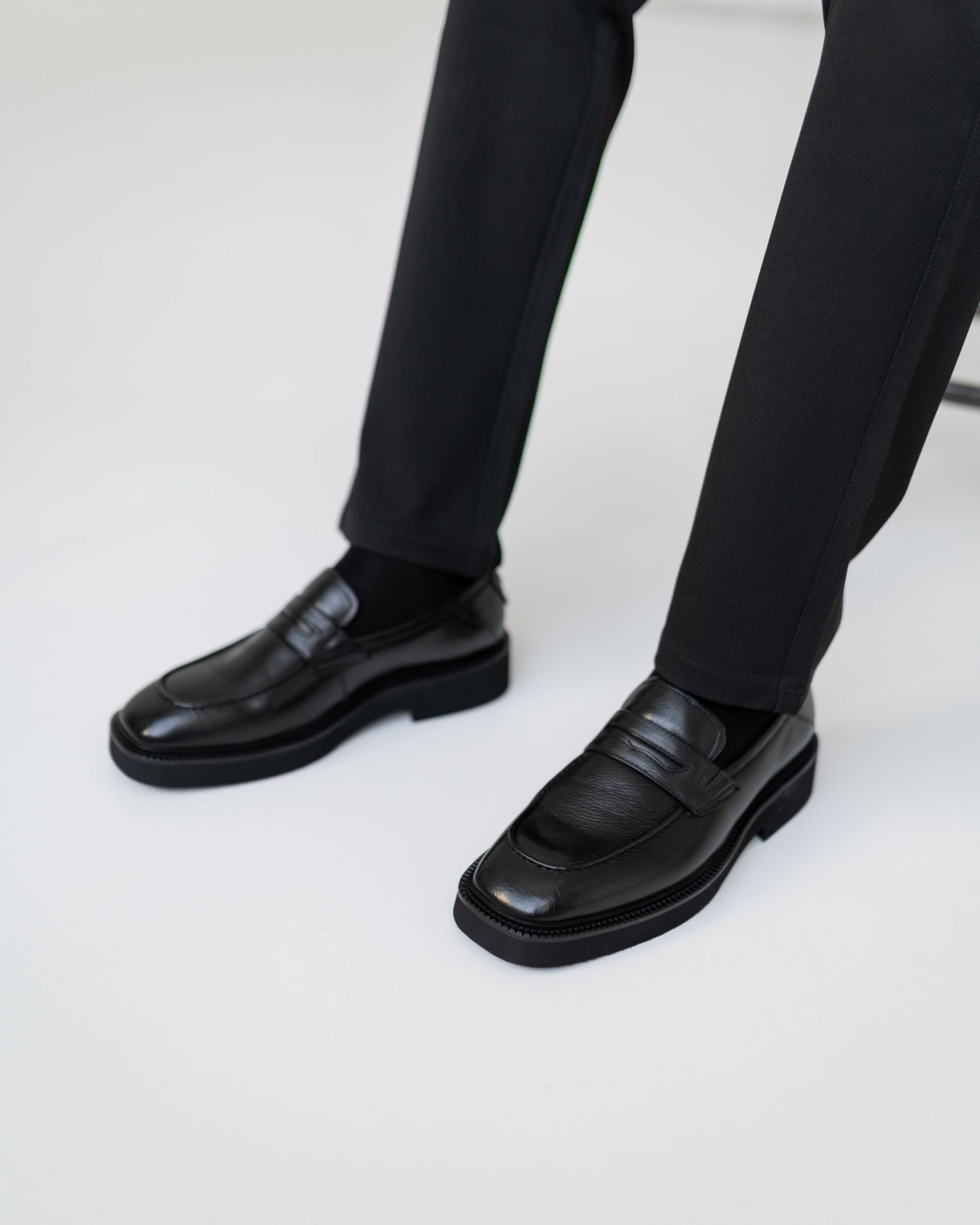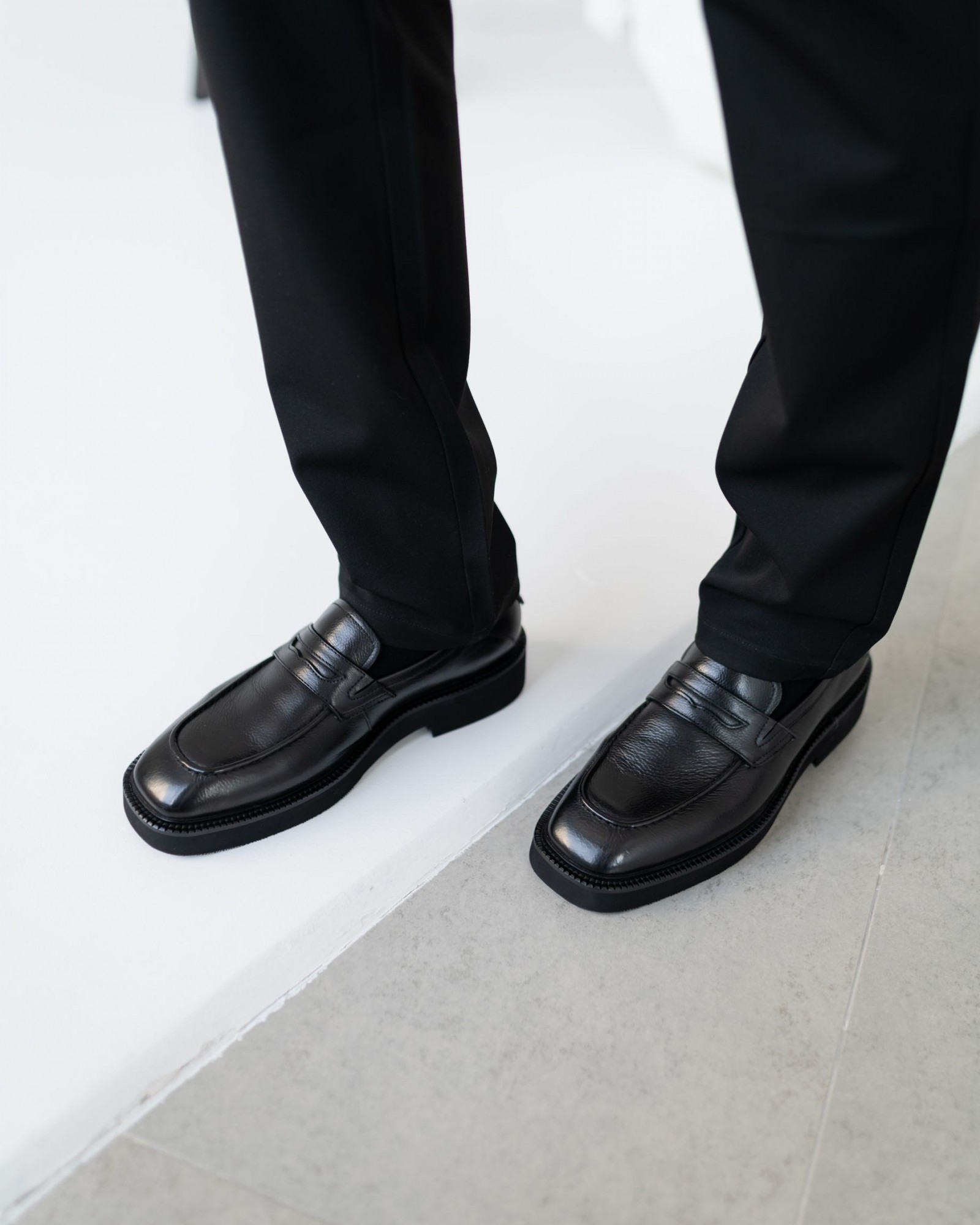 Лоферы на утолщённой подошве с выразительным квадратным носком в винтажном стиле. Эта модель сочетает в себе классические мотивы и современный тренд на массивную обувь. Благодаря объемной подошве и строгим линиям отлично смотрится как с широкими современными брюками, так и с зауженными чиносами или джинсами. Комфортная посадка, удобная колодка и мягкая кожа делают их идеальными для повседневного использования без ущерба для стиля.