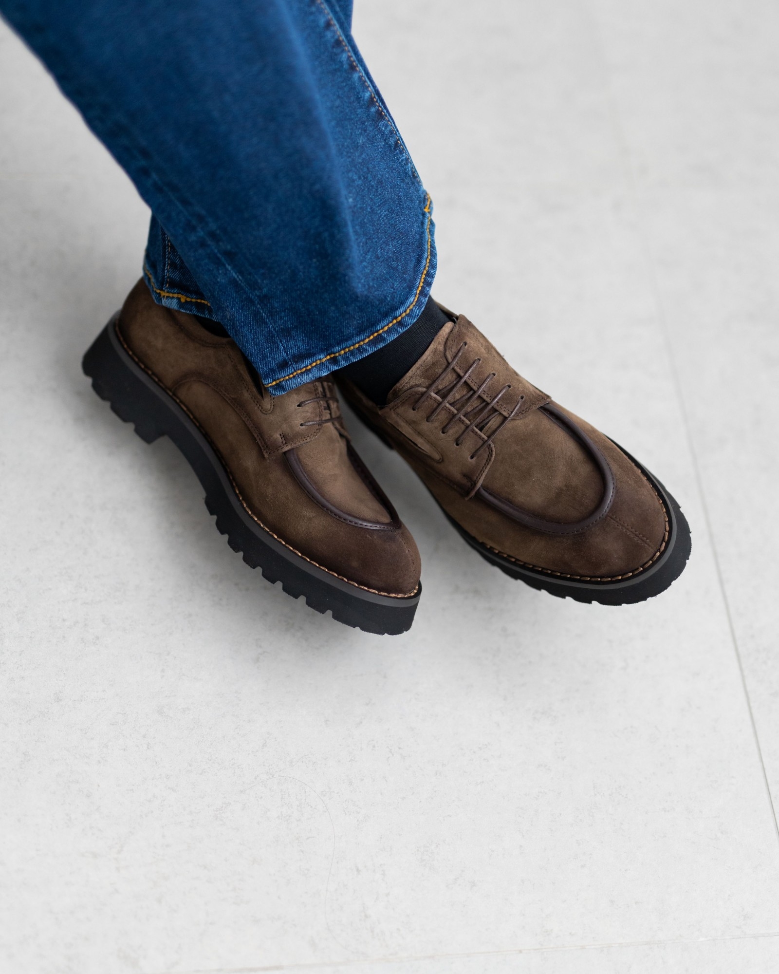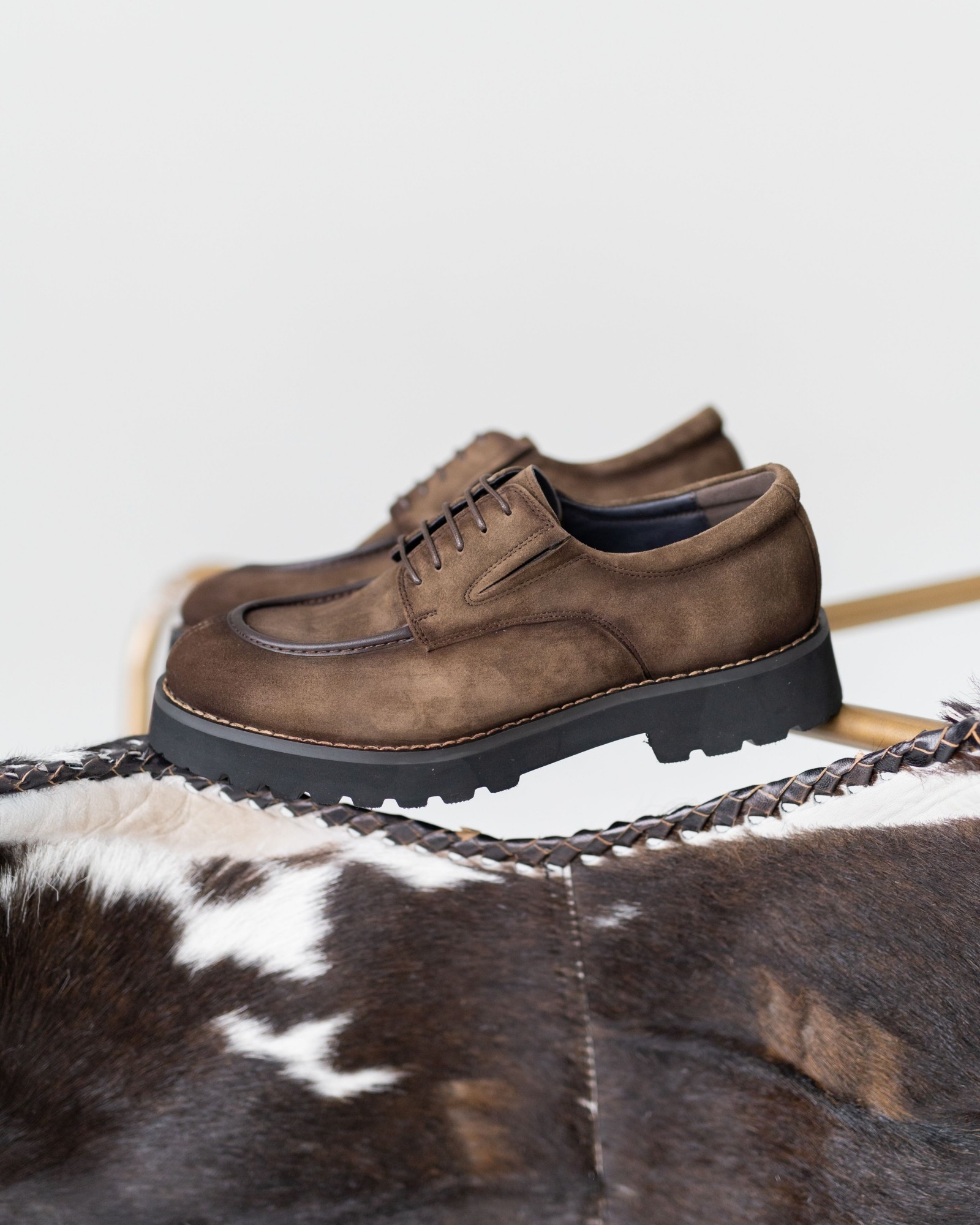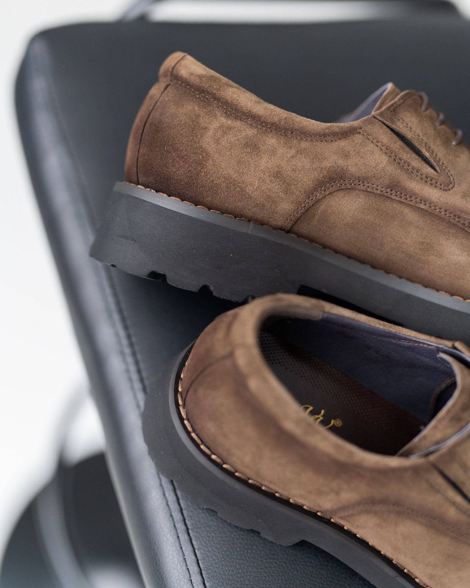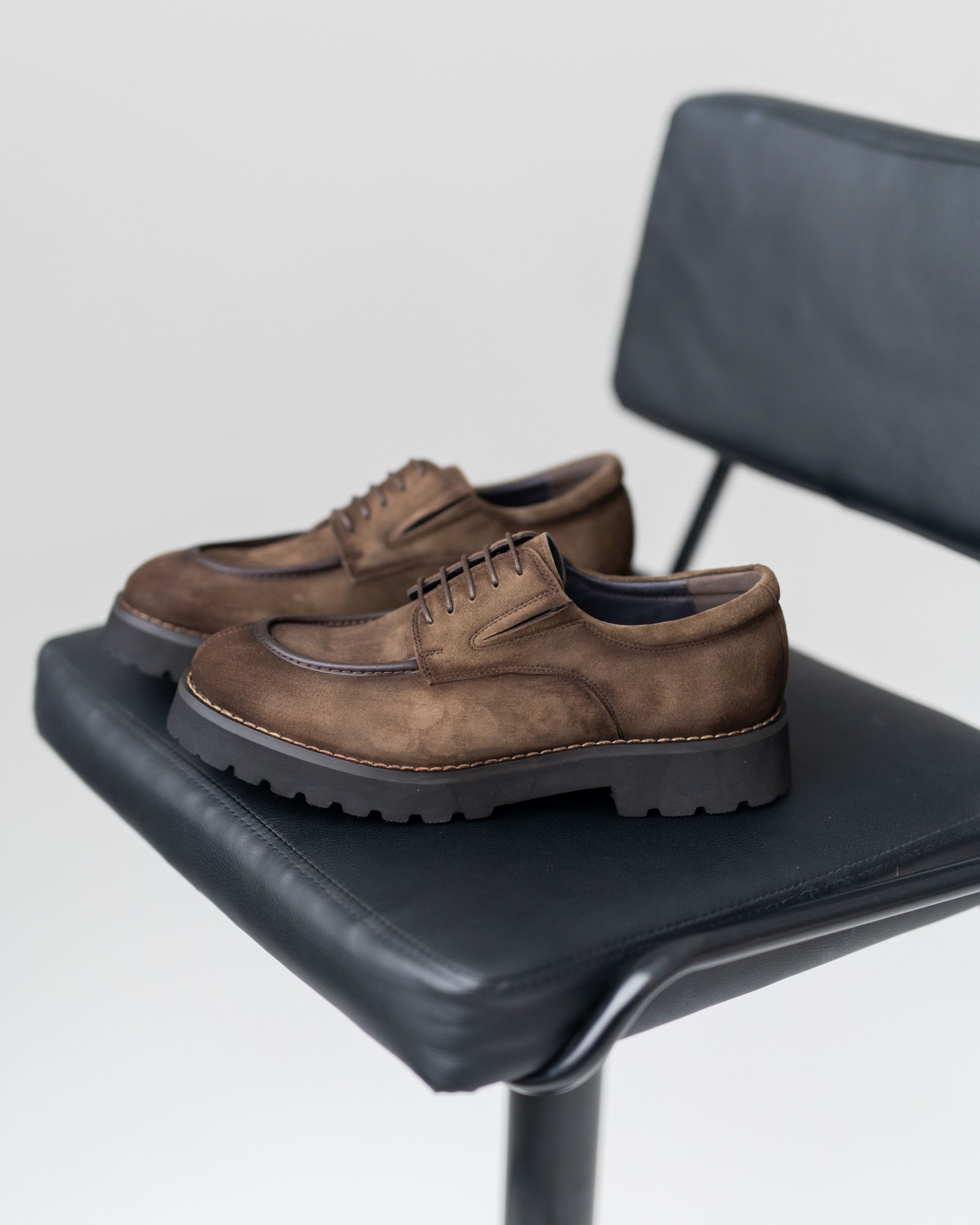 Дерби, где стиль выкручен на 10 из 10. Красивый коричневый нубук интересно комбинирован с тёмно-коричневыми вставками, создавая динамичный, современный силуэт. Продуманная посадка и мягкая конструкция обеспечивают комфорт даже при долгой носке. Утолщённая, но лёгкая подошва делает каждый шаг уверенным, а аккуратная шнуровка подчёркивает элегантность формы. Эта пара идеально подходит тем, кто ищет дерби с характером, способные выделить любой образ.