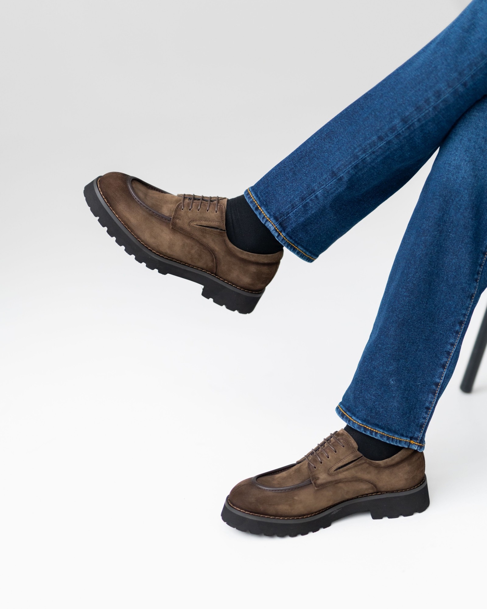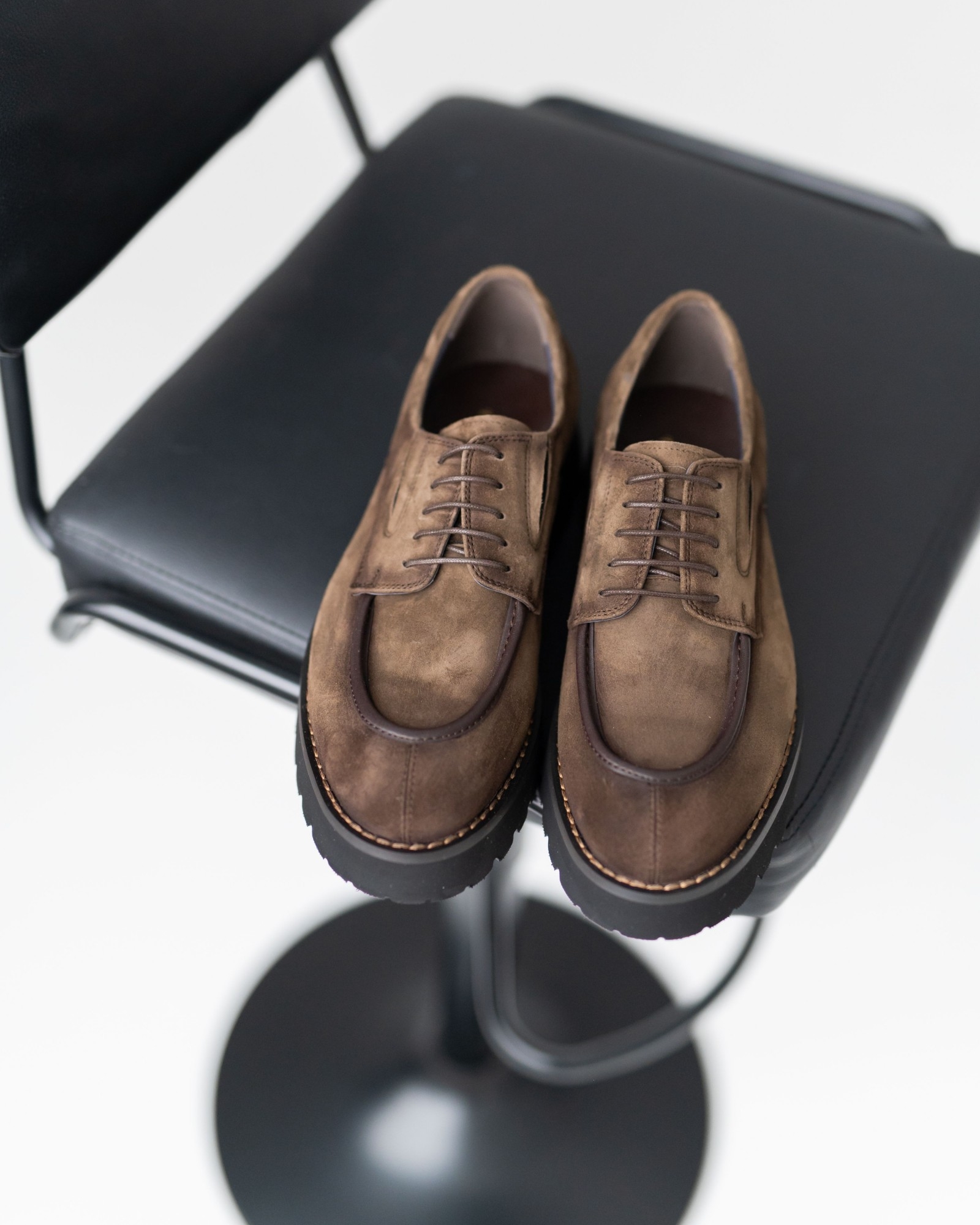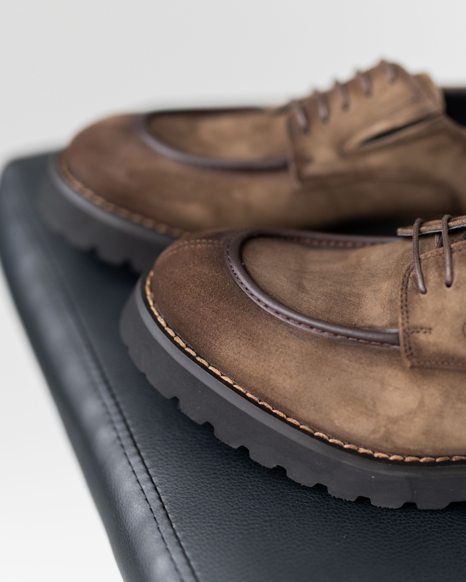 Дерби, где стиль выкручен на 10 из 10. Красивый коричневый нубук интересно комбинирован с тёмно-коричневыми вставками, создавая динамичный, современный силуэт. Продуманная посадка и мягкая конструкция обеспечивают комфорт даже при долгой носке. Утолщённая, но лёгкая подошва делает каждый шаг уверенным, а аккуратная шнуровка подчёркивает элегантность формы. Эта пара идеально подходит тем, кто ищет дерби с характером, способные выделить любой образ.