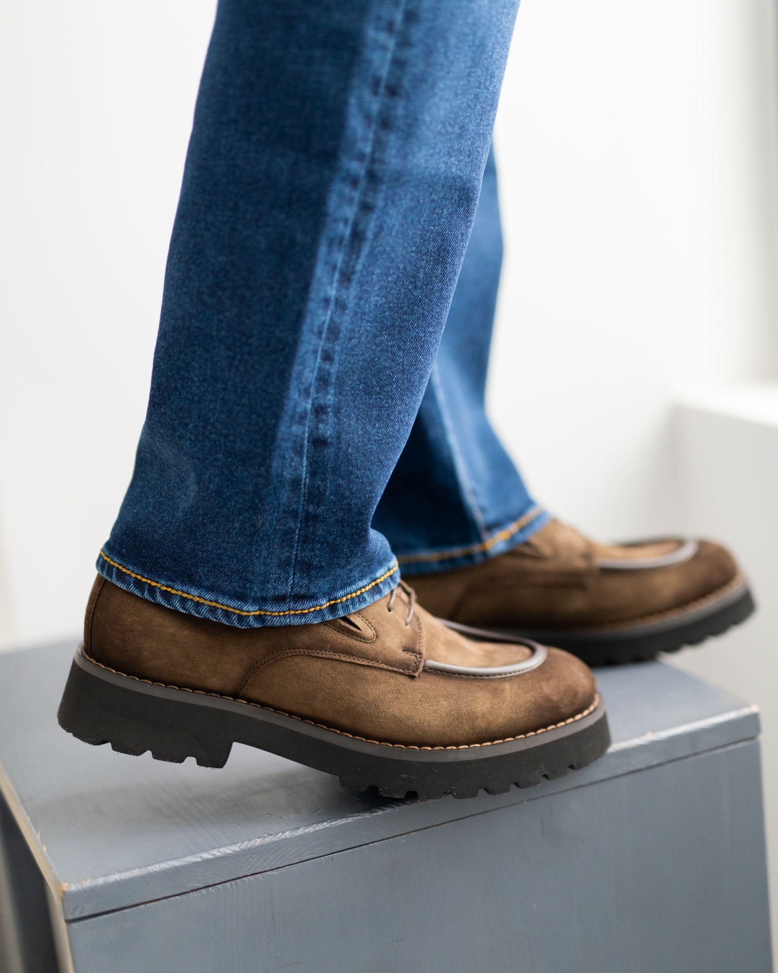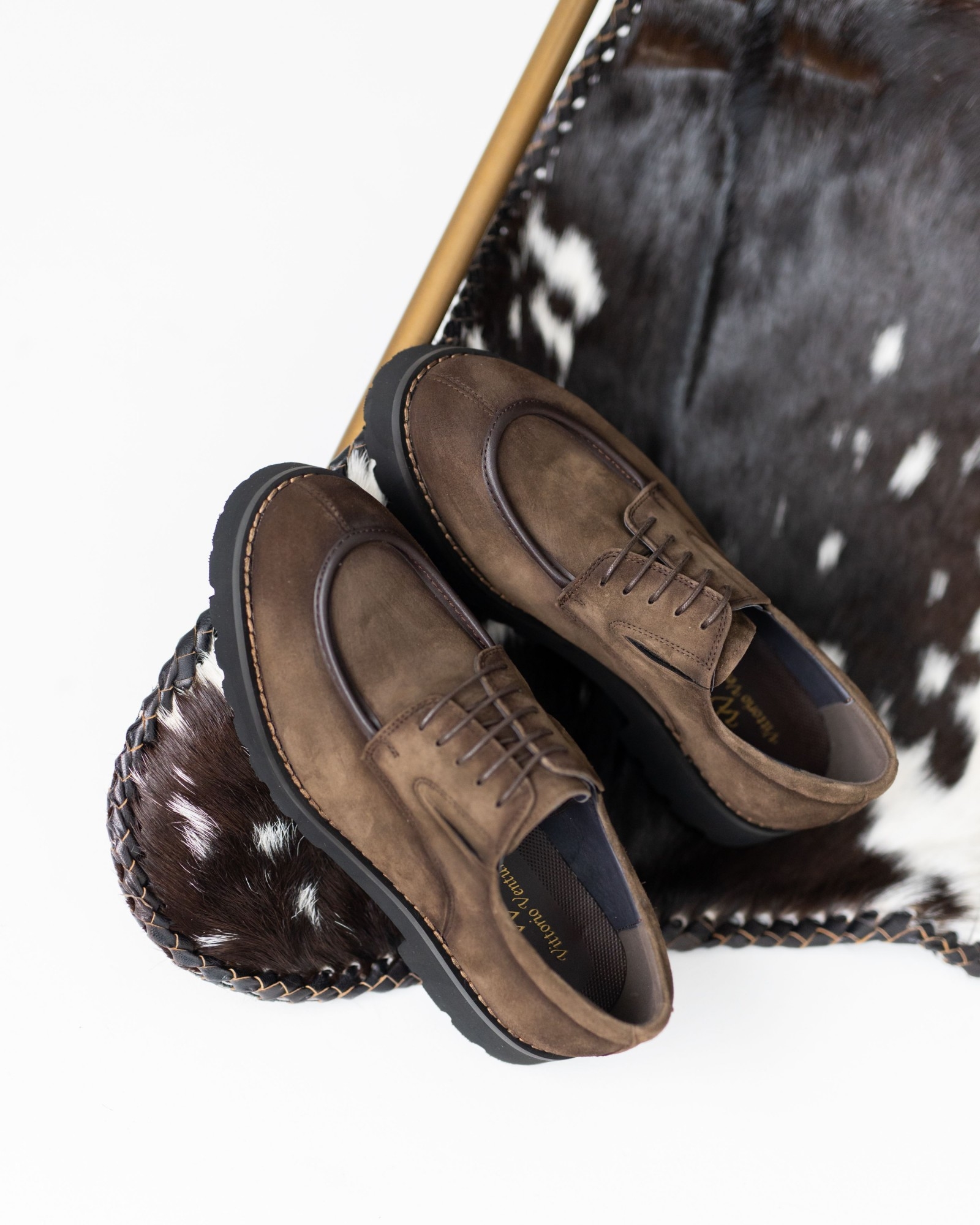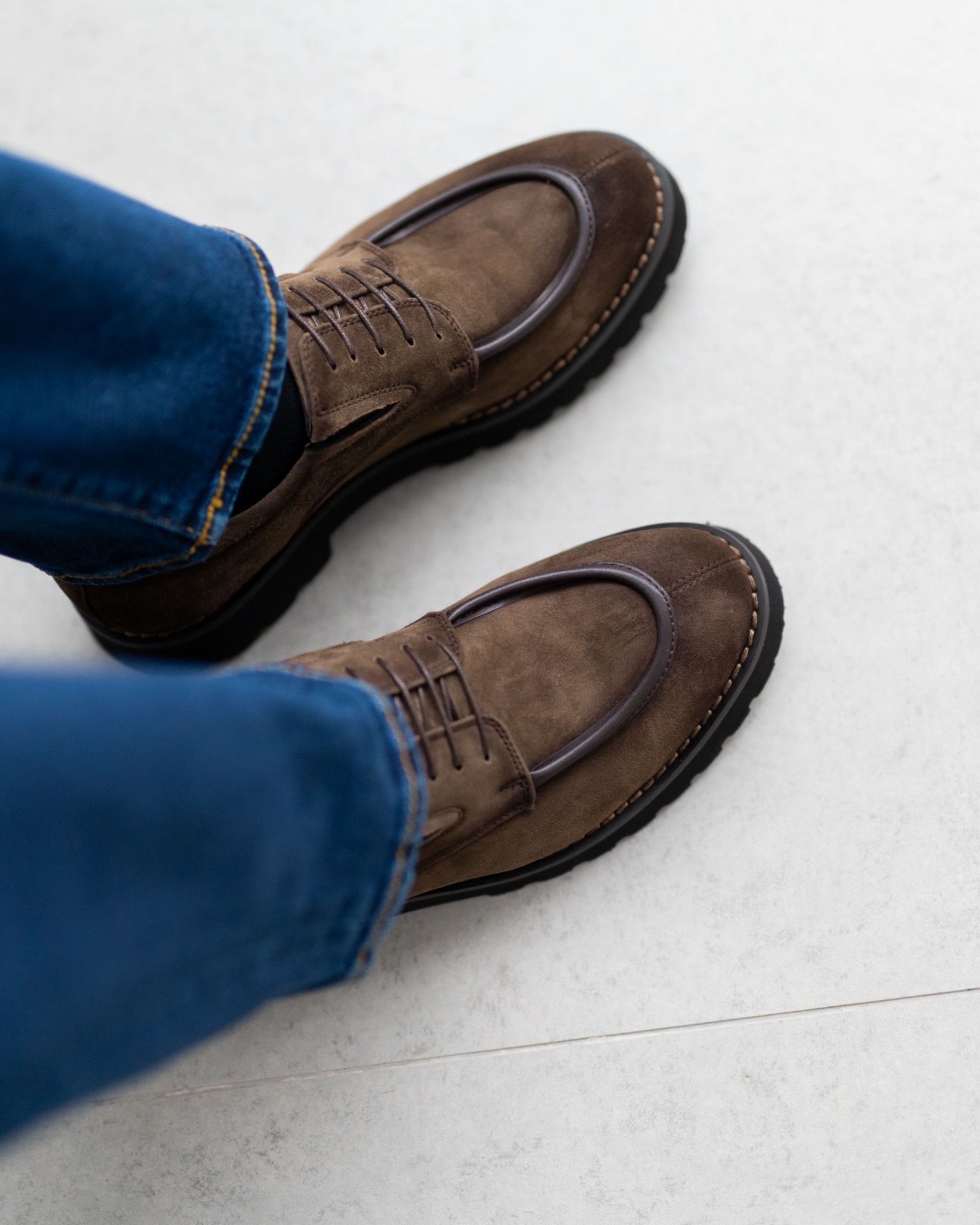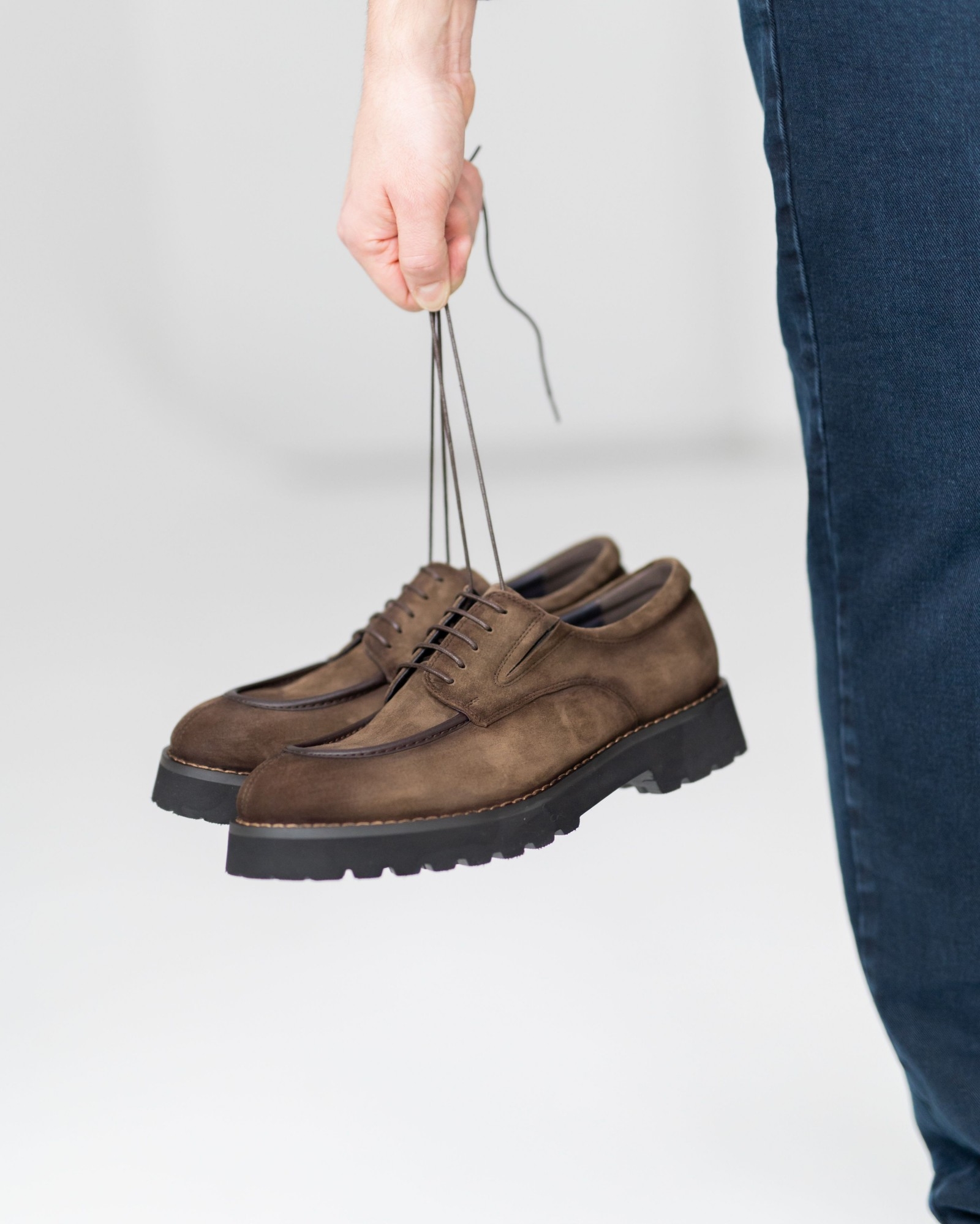 Дерби, где стиль выкручен на 10 из 10. Красивый коричневый нубук интересно комбинирован с тёмно-коричневыми вставками, создавая динамичный, современный силуэт. Продуманная посадка и мягкая конструкция обеспечивают комфорт даже при долгой носке. Утолщённая, но лёгкая подошва делает каждый шаг уверенным, а аккуратная шнуровка подчёркивает элегантность формы. Эта пара идеально подходит тем, кто ищет дерби с характером, способные выделить любой образ.