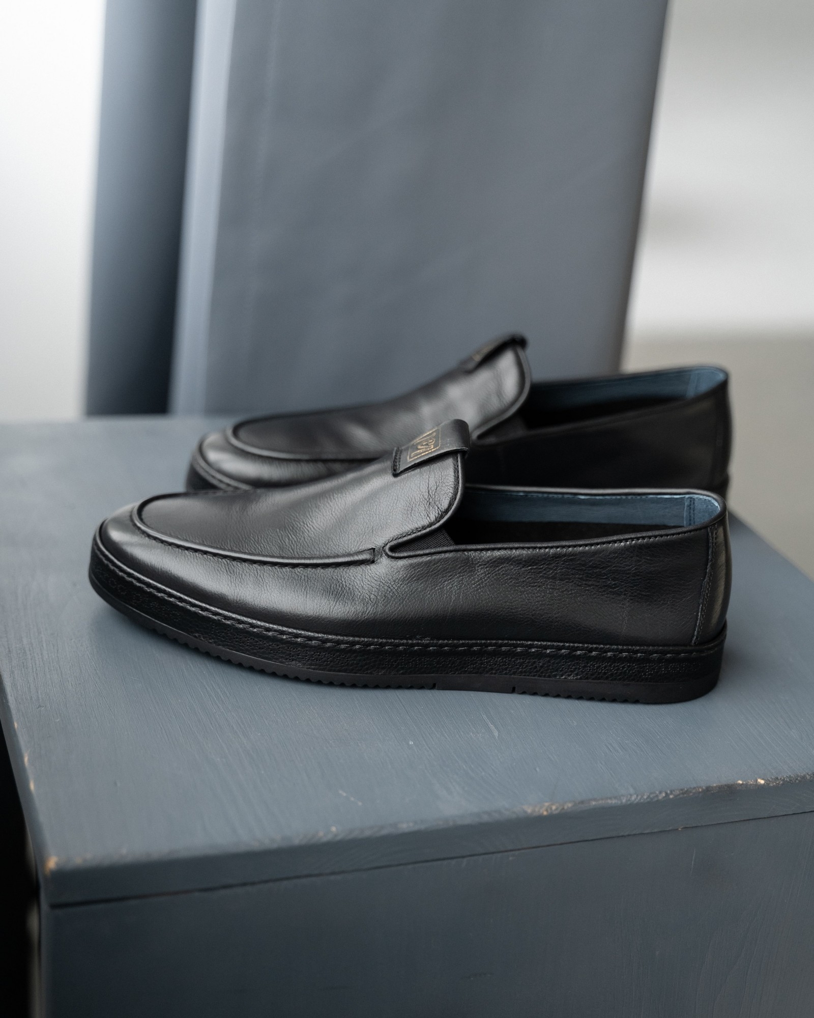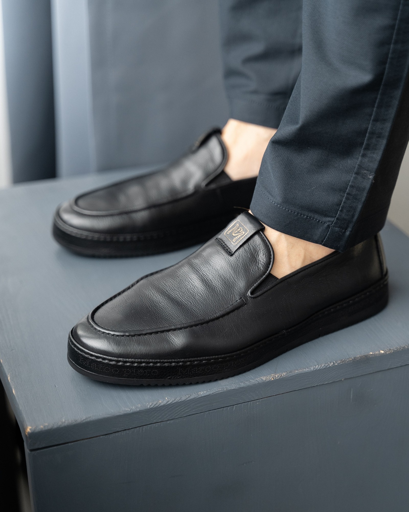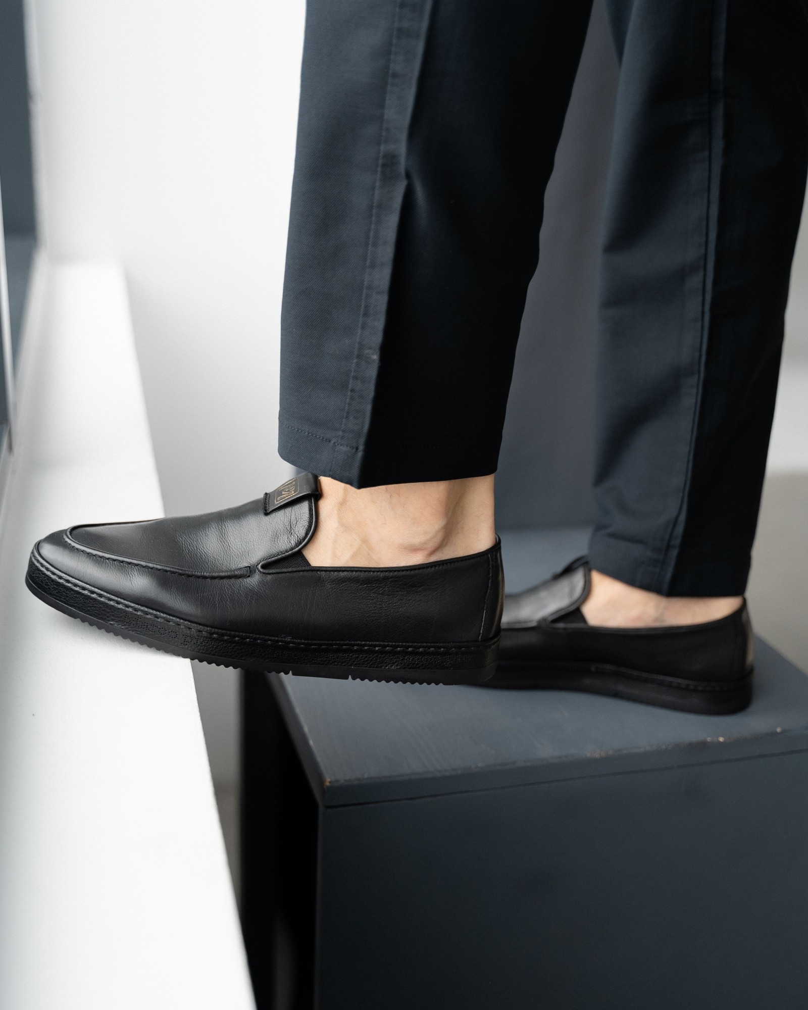 **Мужские чёрные слипоны из мягкой кожи**