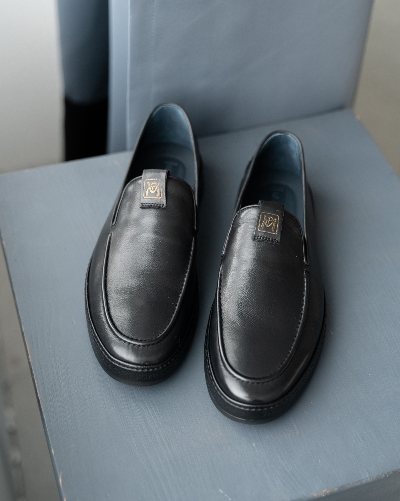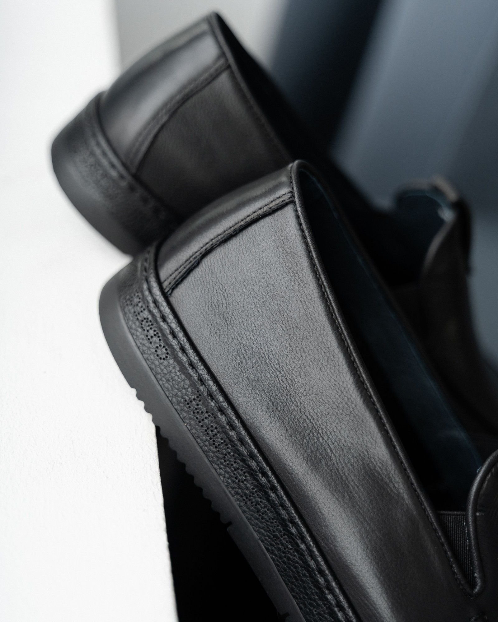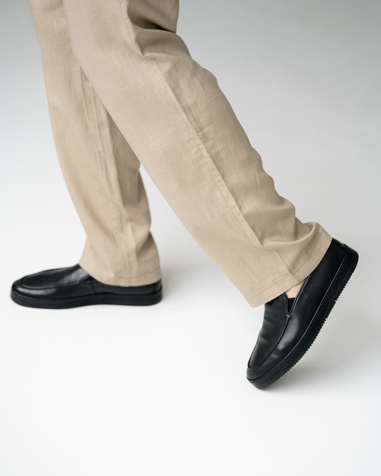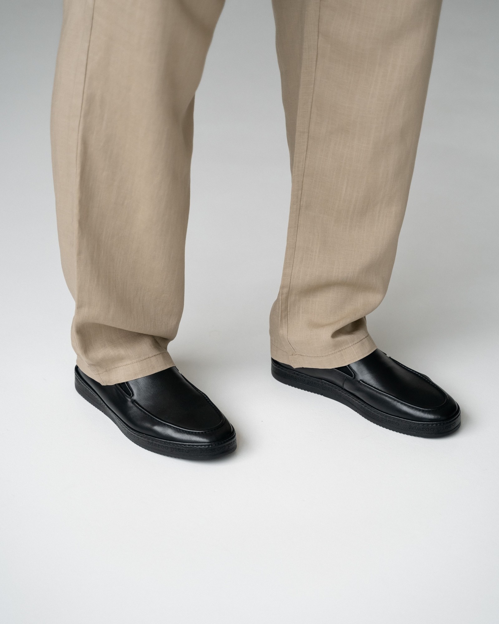 **Мужские чёрные слипоны из мягкой кожи**