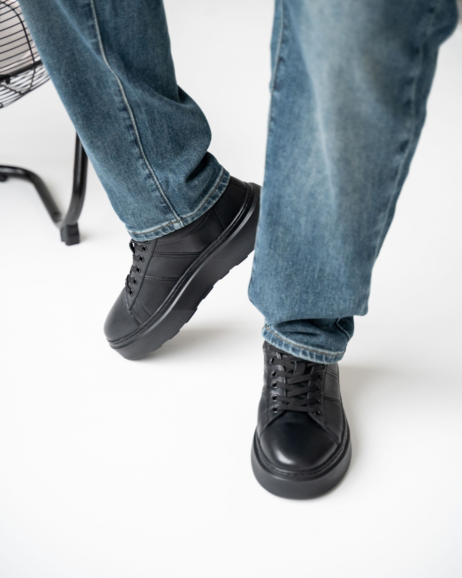 3. **Универсальный стиль:** чёрный цвет и лаконичный дизайн делают кеды уместными как в повседневных образах, так и в городском smart casual.