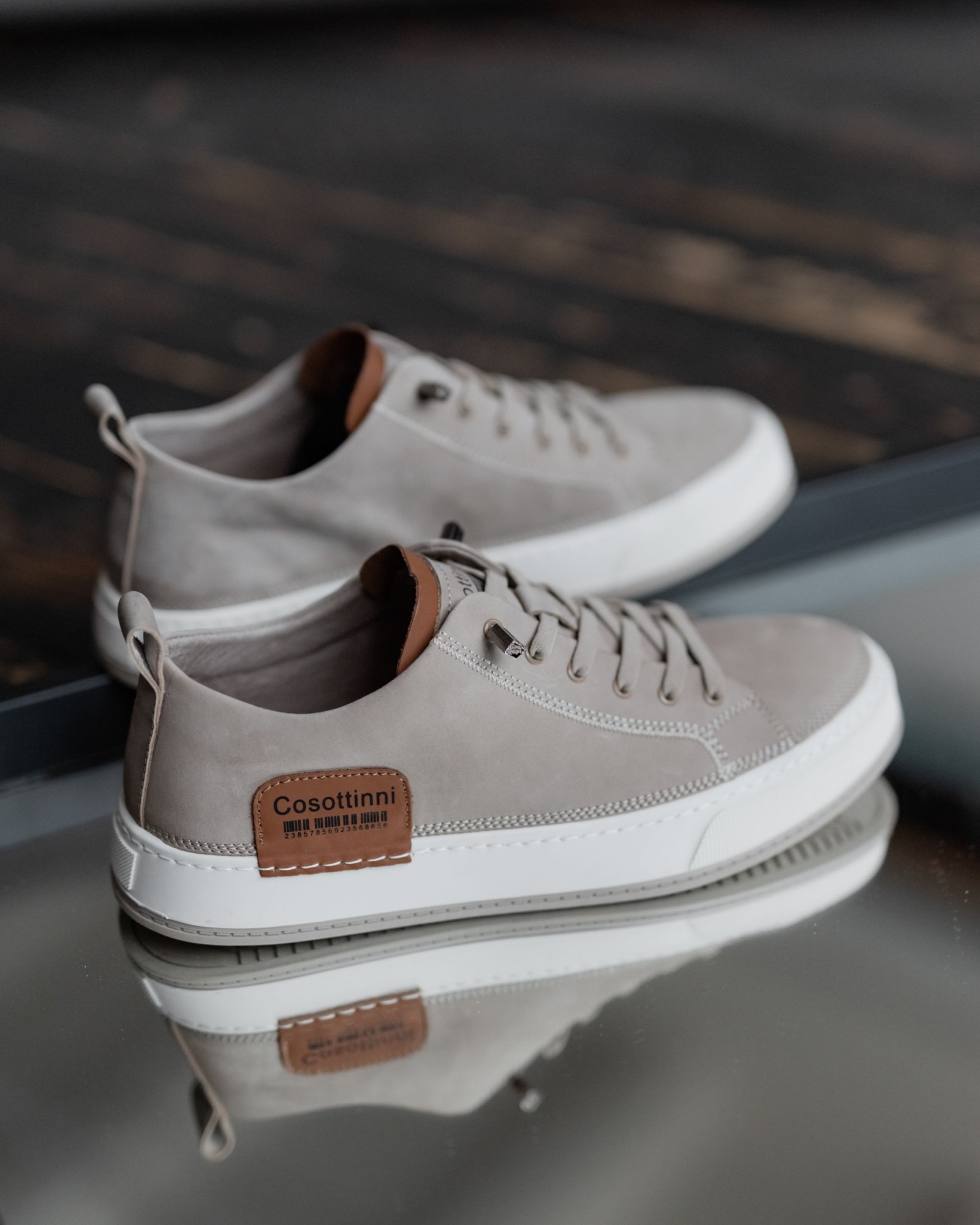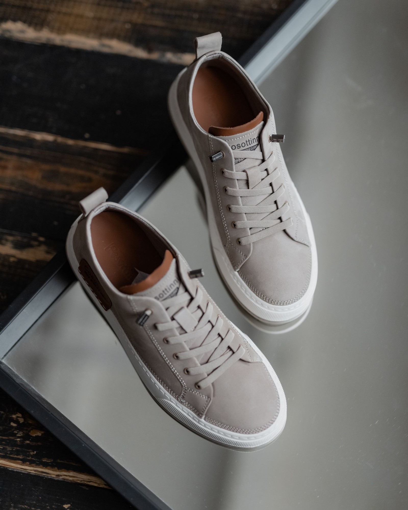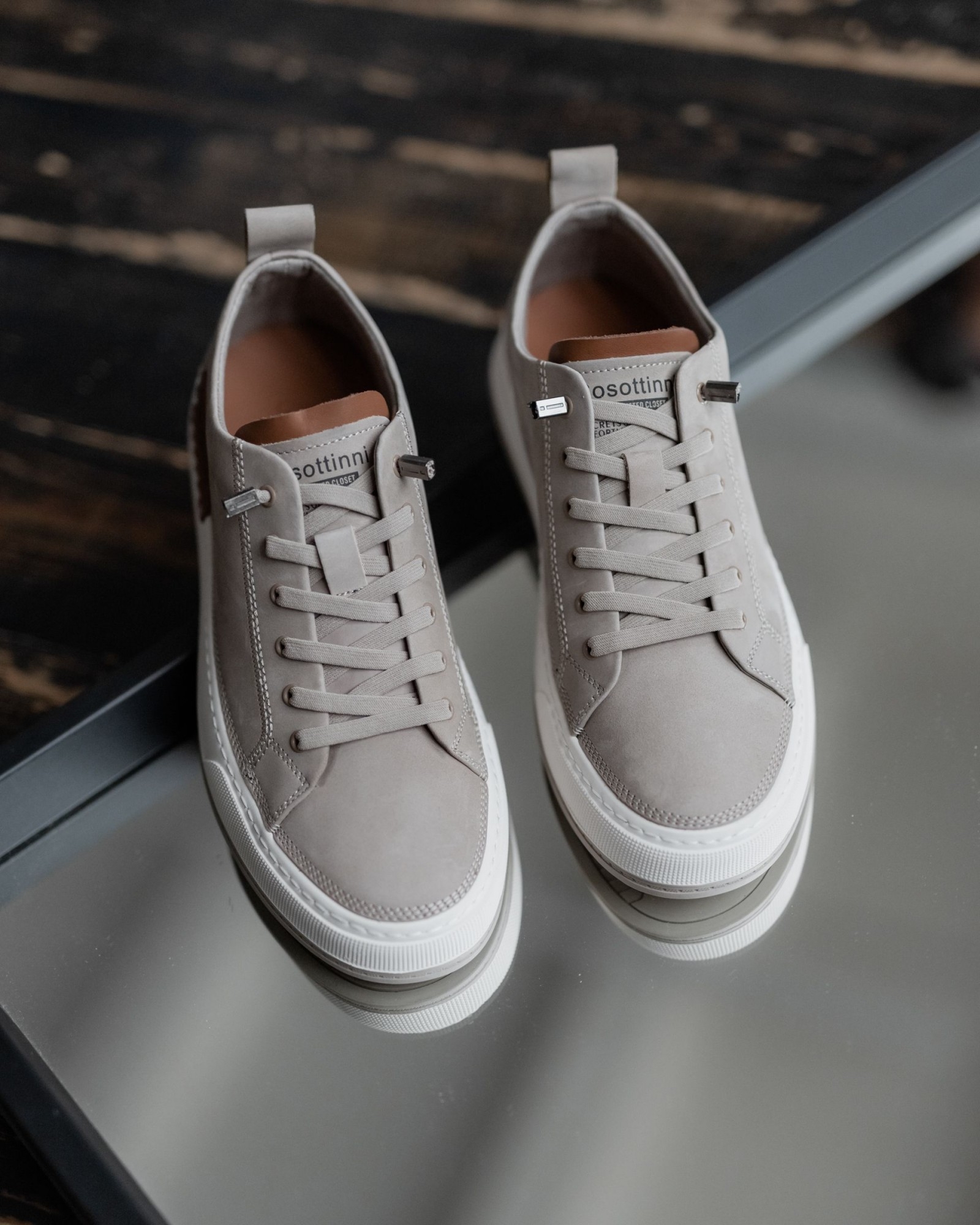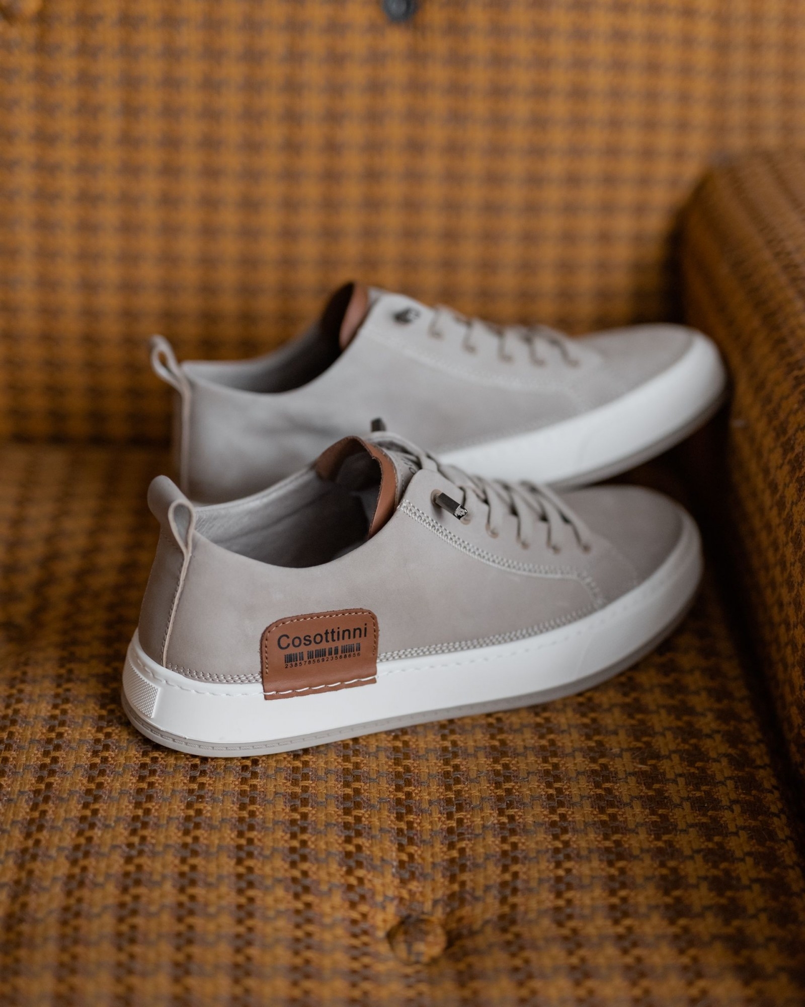 Акценты из коричнево-рыжей кожи на пятке и язычке добавляют глубину и создают ощущение дорогого, собранного изделия. За счёт этого кеды выглядят не просто базово, а действительно стильно и продуманно.