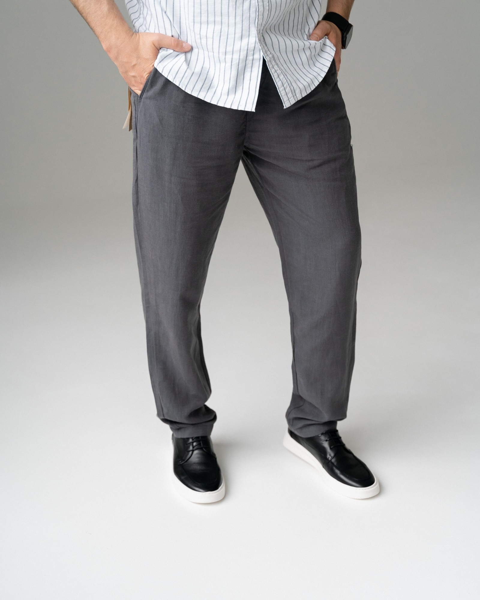 1. Светло-серые чиносы и белая рубашка поло — для делового летнего образа без лишней строгости.
