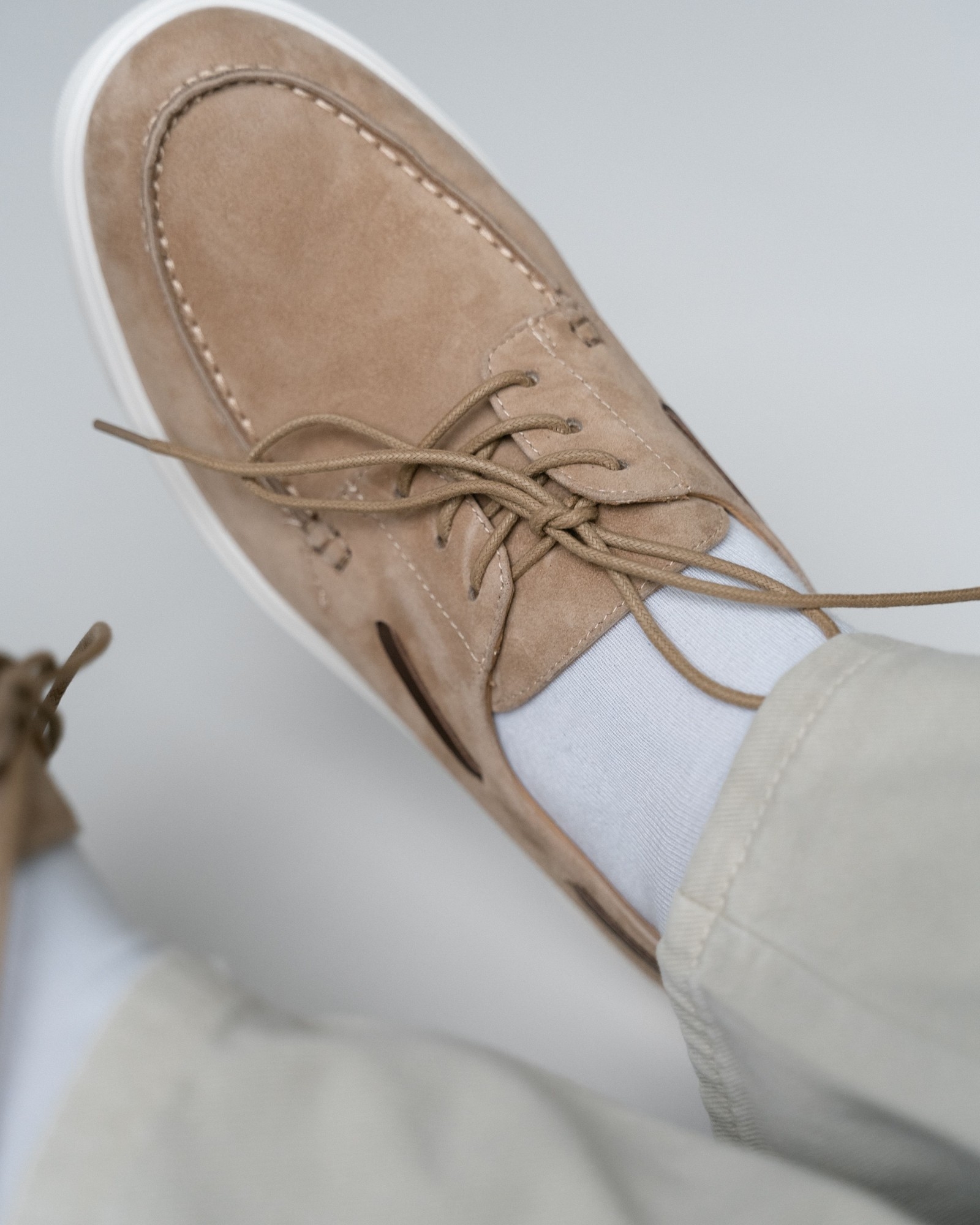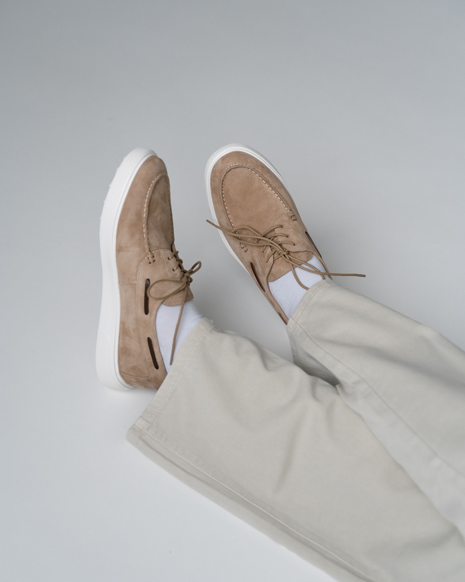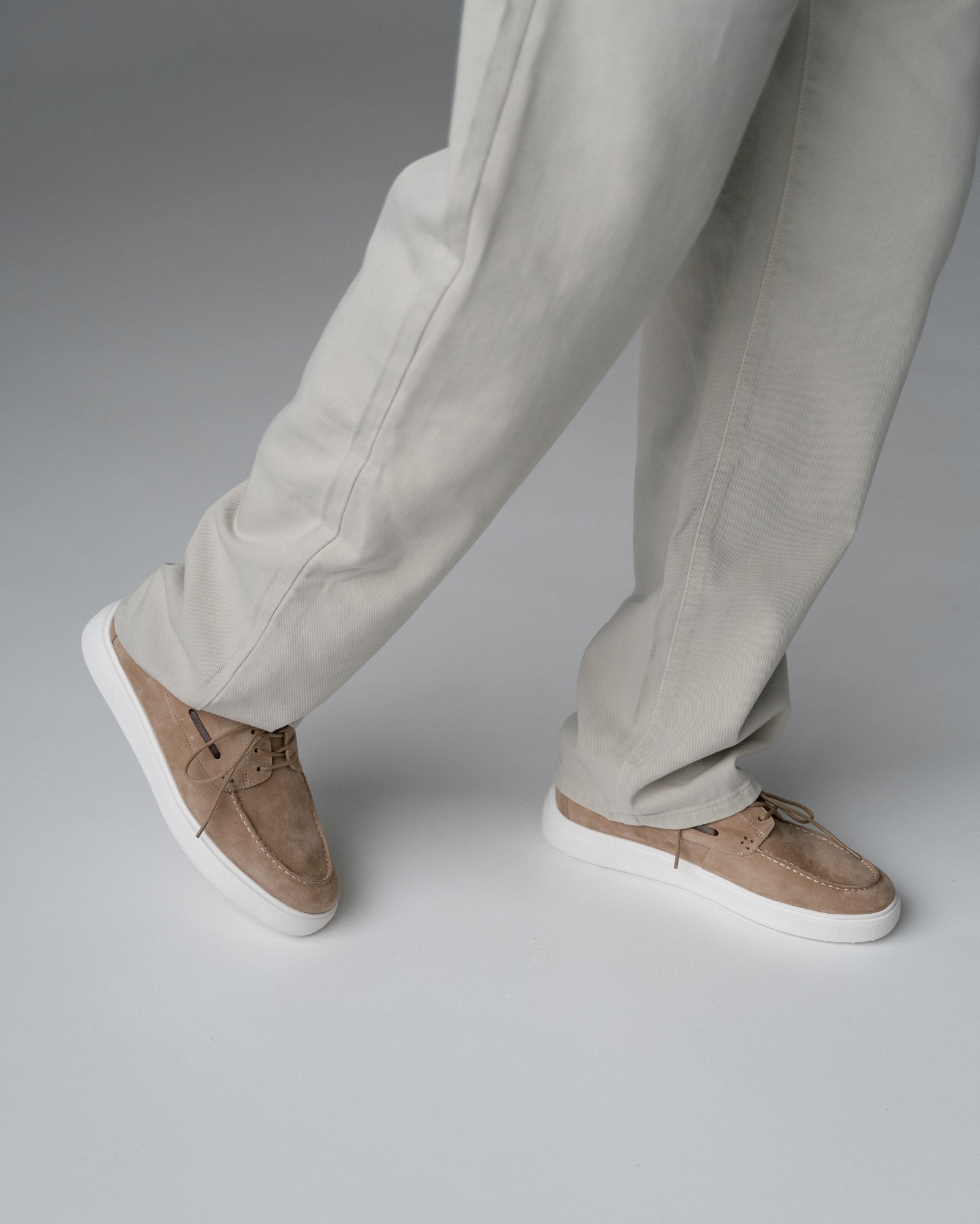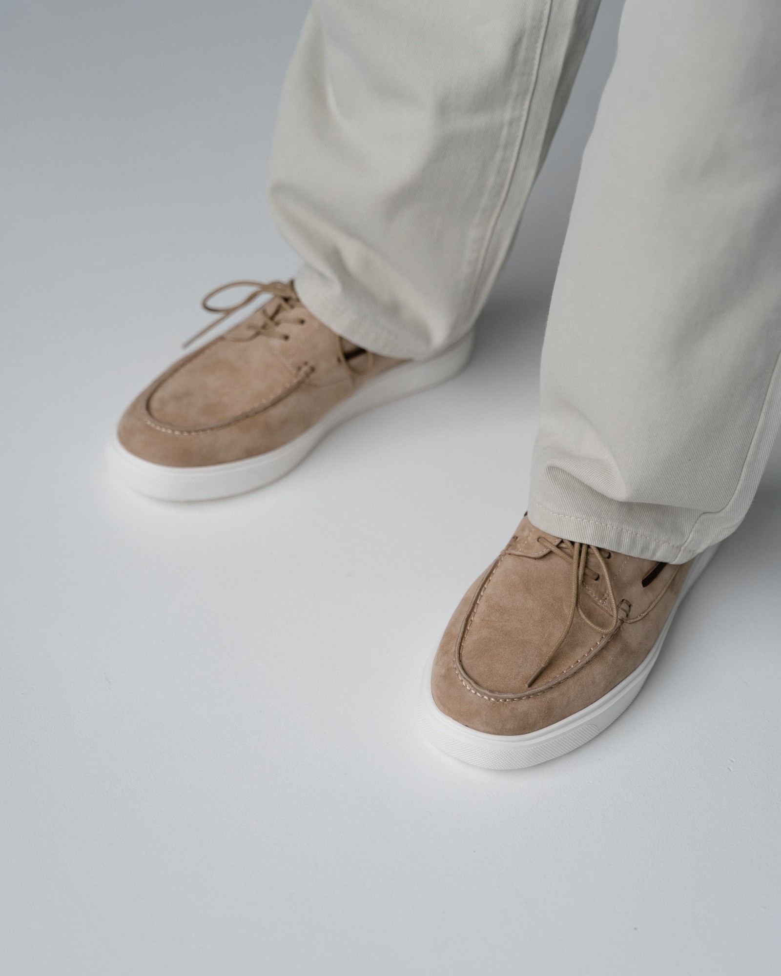 **Кэжуал с элементами топсайдеров в универсальном бежевом цвете**